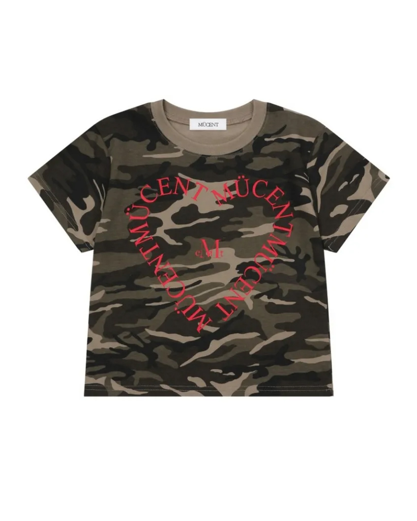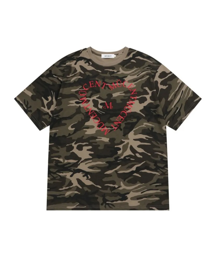 Milotti Heart Lettering Logo Camo Short Sleeve T-Shirt for Men and Women