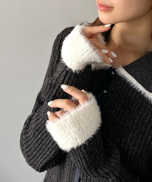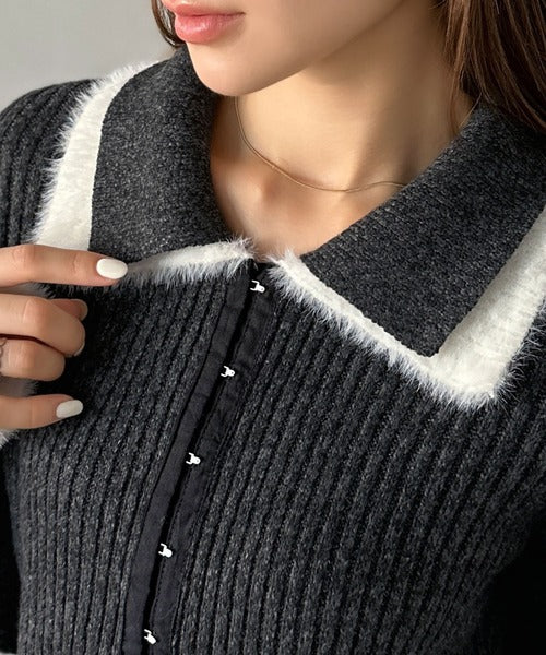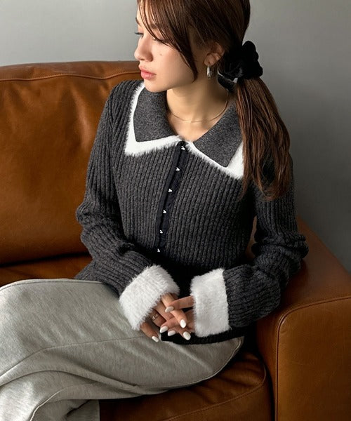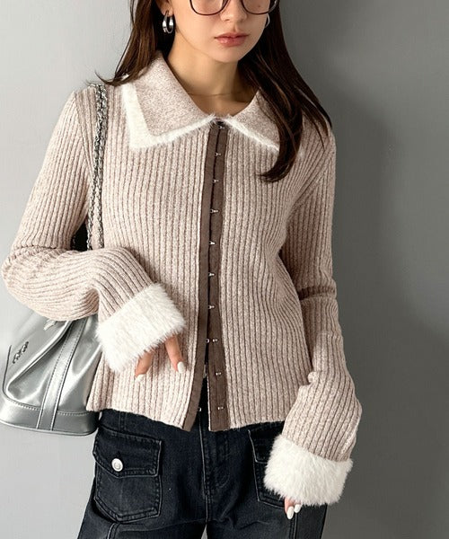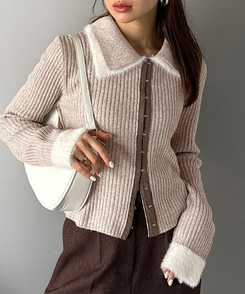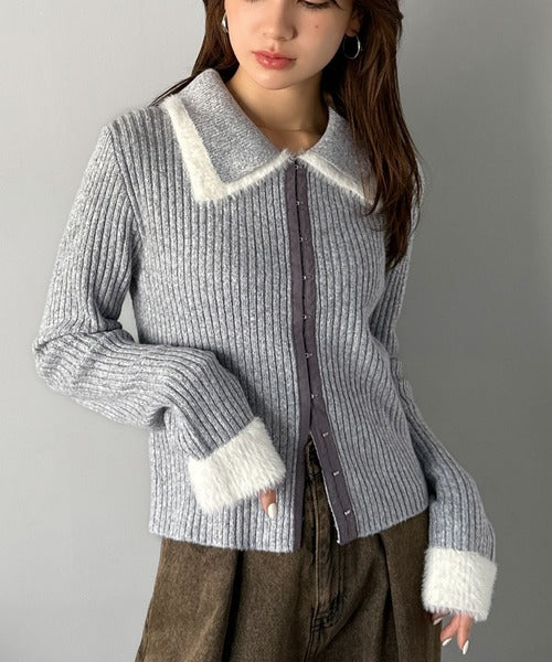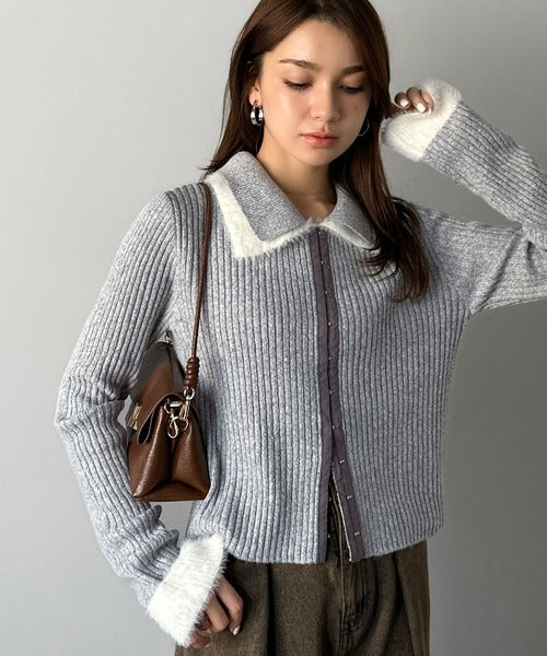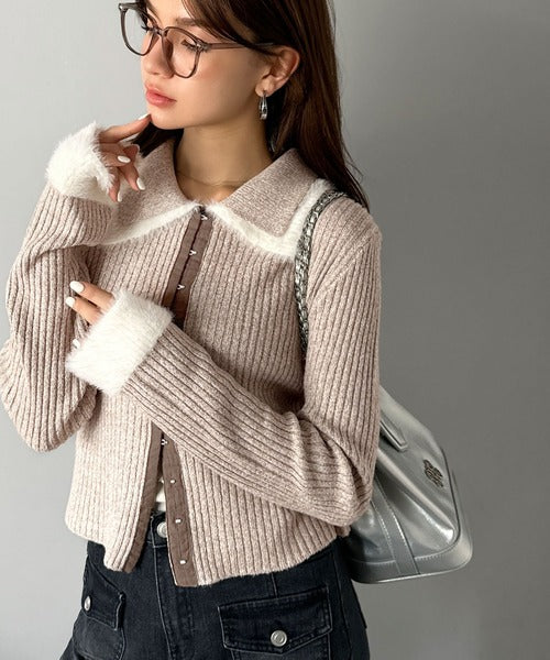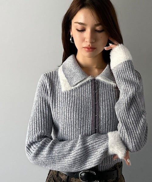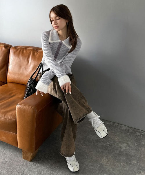 ・異素材ダブルカラー(リブニットとシャギー素材の異素材コンビ)