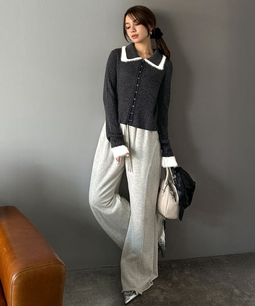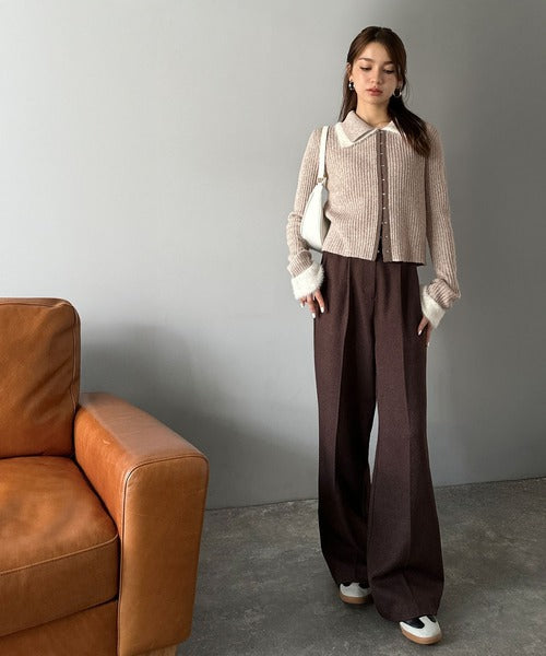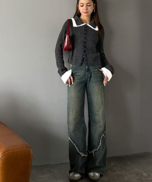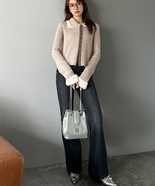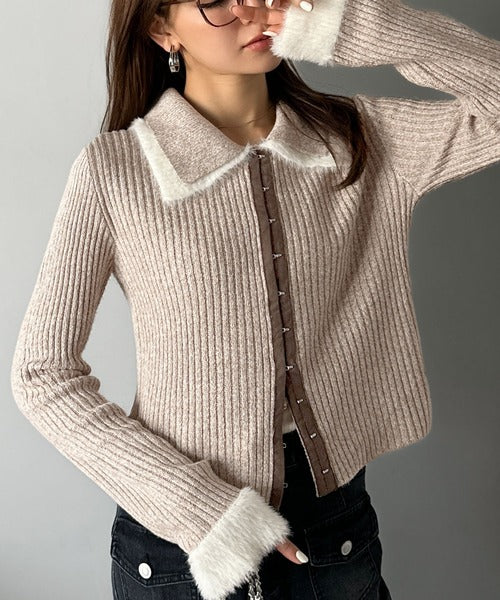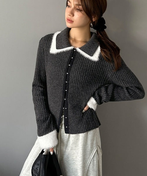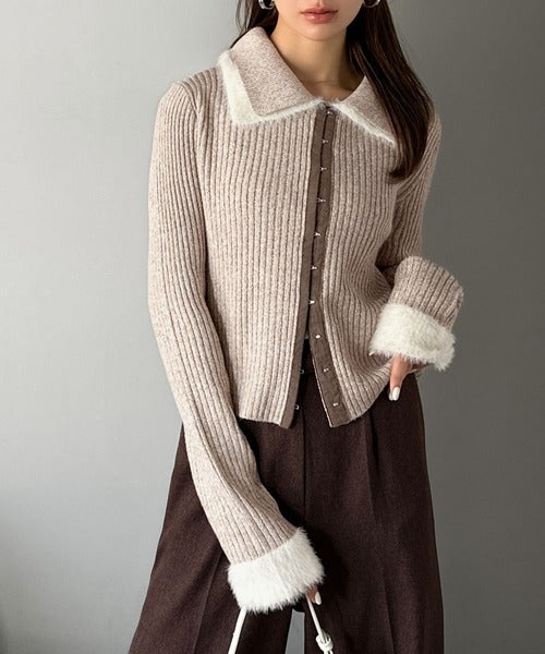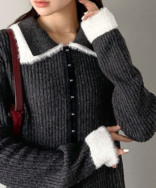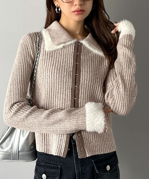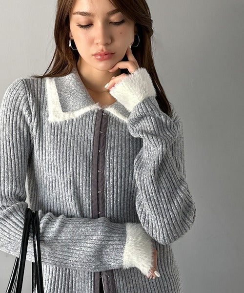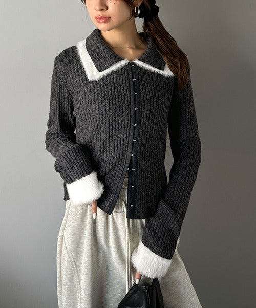 ・異素材ダブルカラー(リブニットとシャギー素材の異素材コンビ)