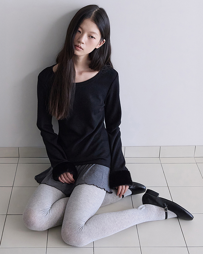 MINK FUR SLIM FIT T-SHIRT_BLACK