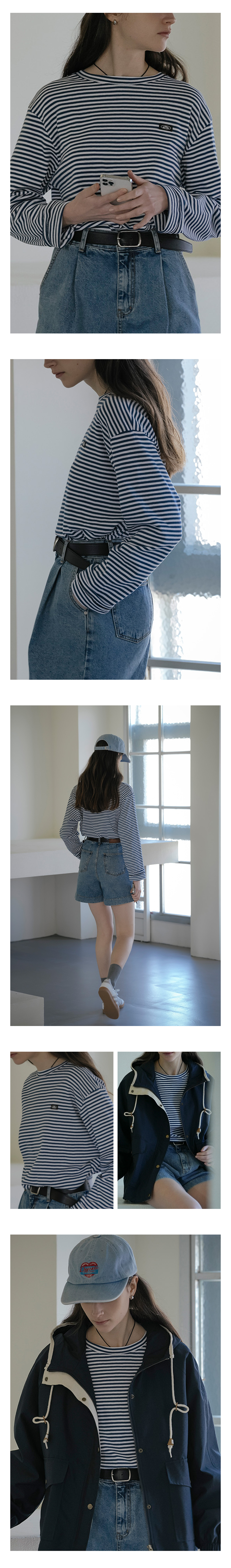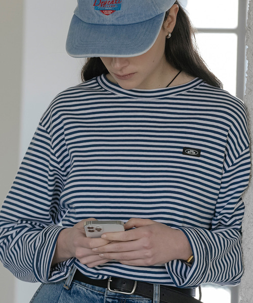 Soft touch loose fit Stripe T-shirt_Blue