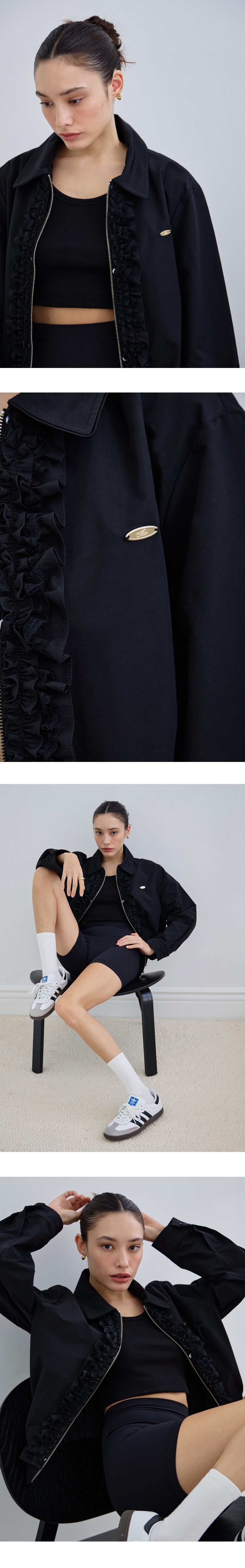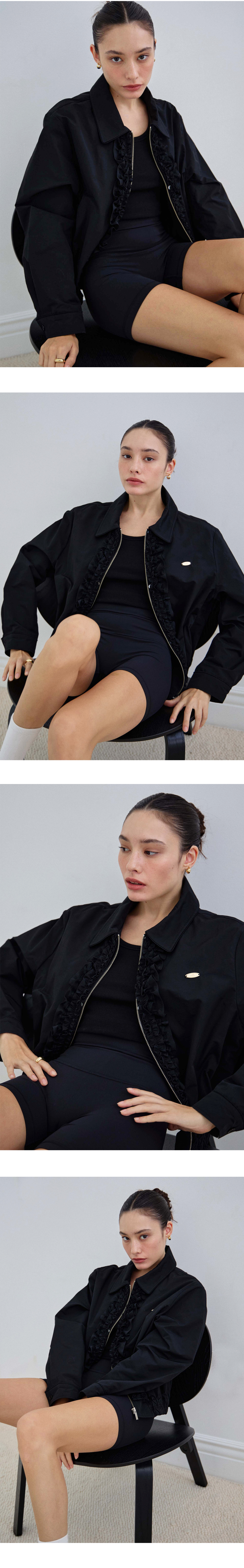 Leandra Frill Detachable Windbreaker - Black