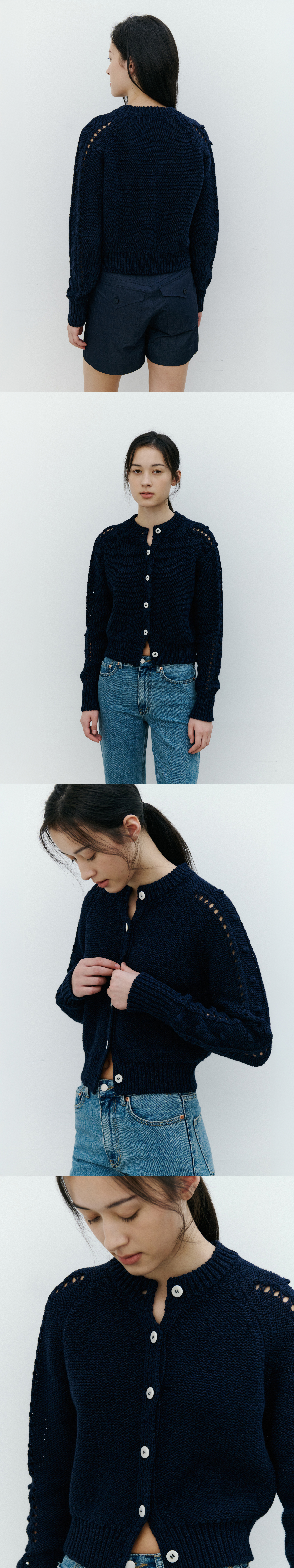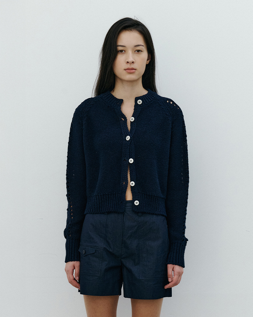 韓紙コットン糸を使用した、涼しくさらりとした肌触りのカーディガンです。
