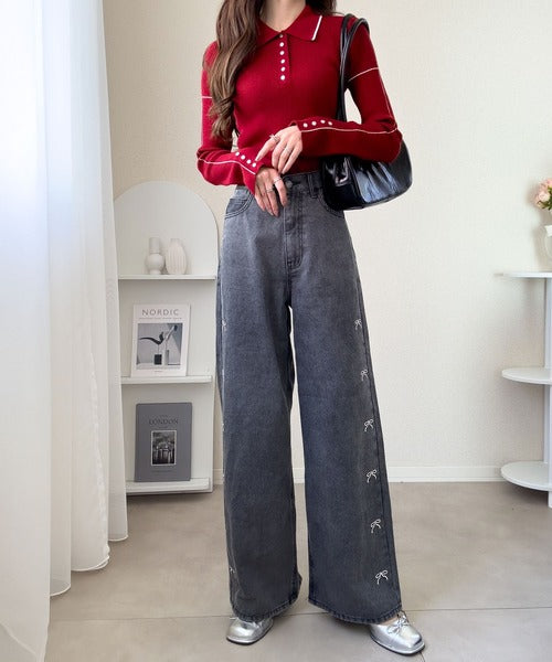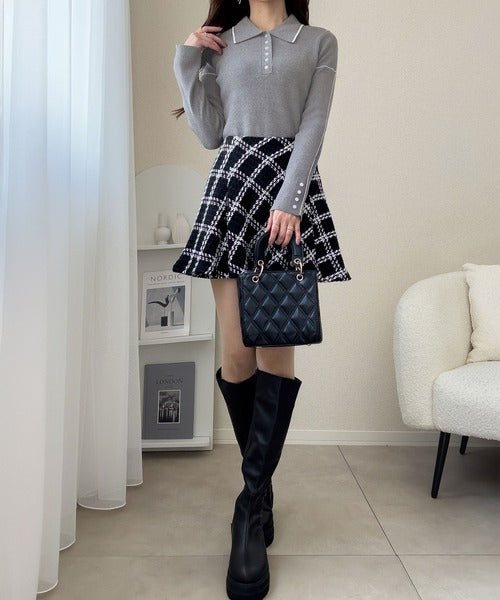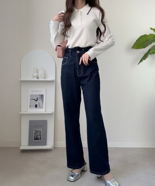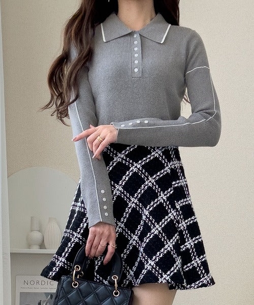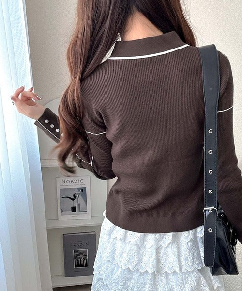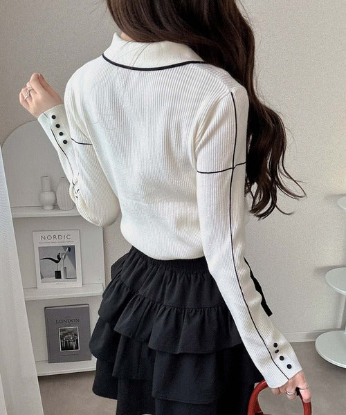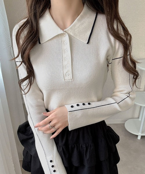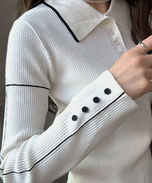 【mily bilet】配色ラインがポイント♪上品なポロ襟リブニット mi1029160