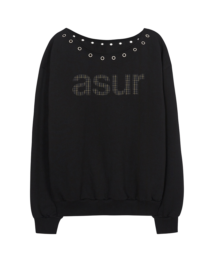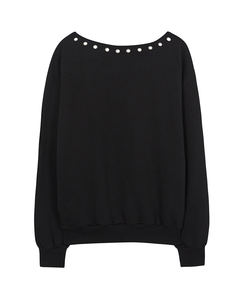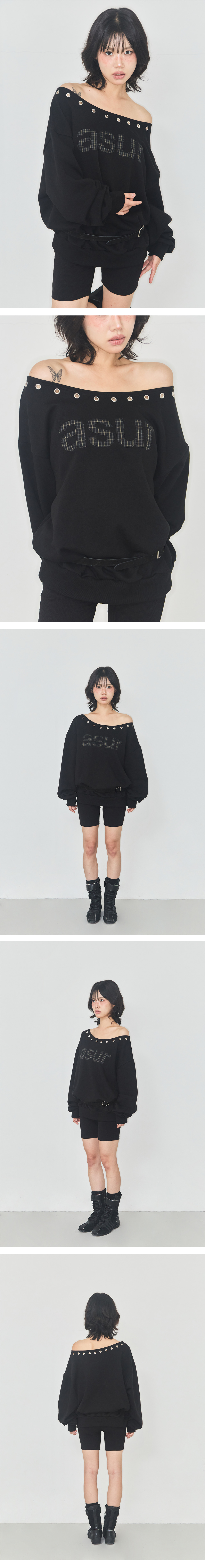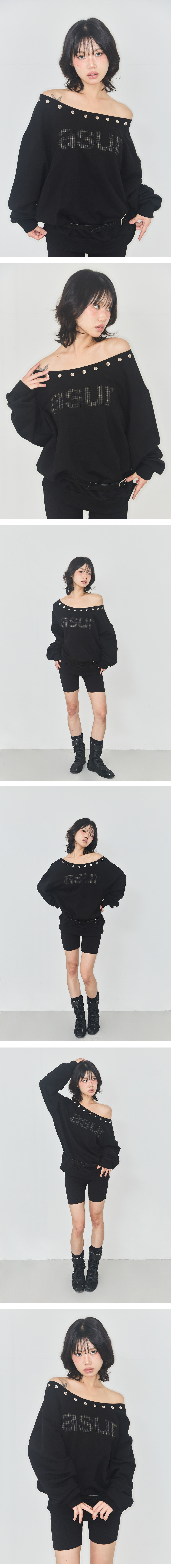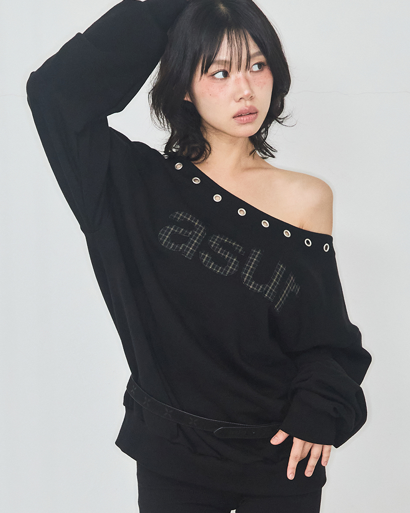 AU One Shoulder Boatneck Sweatshirt Black