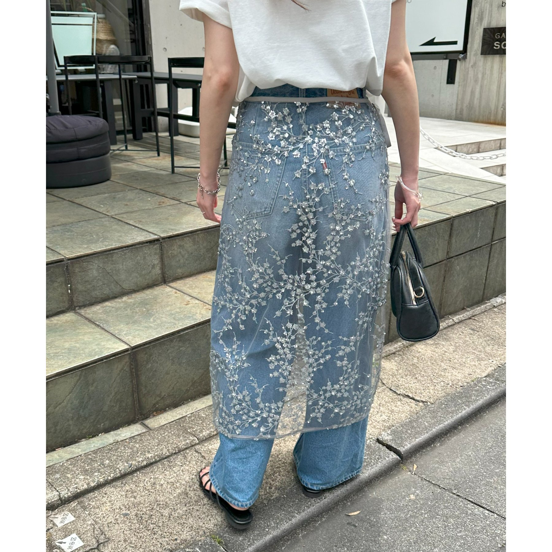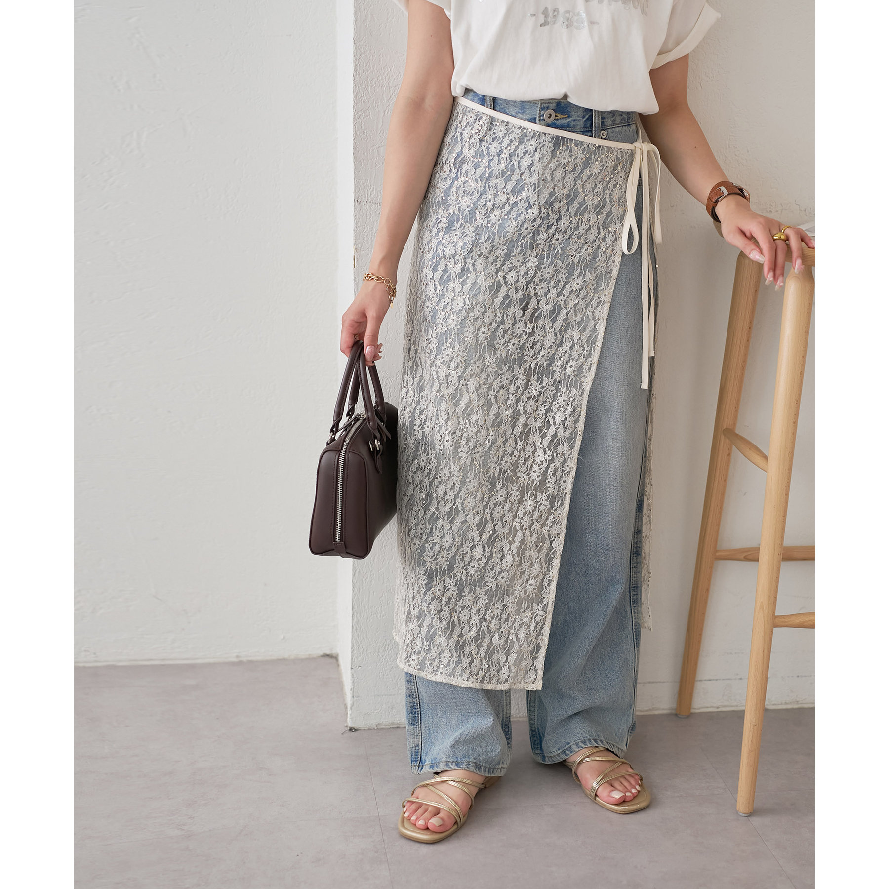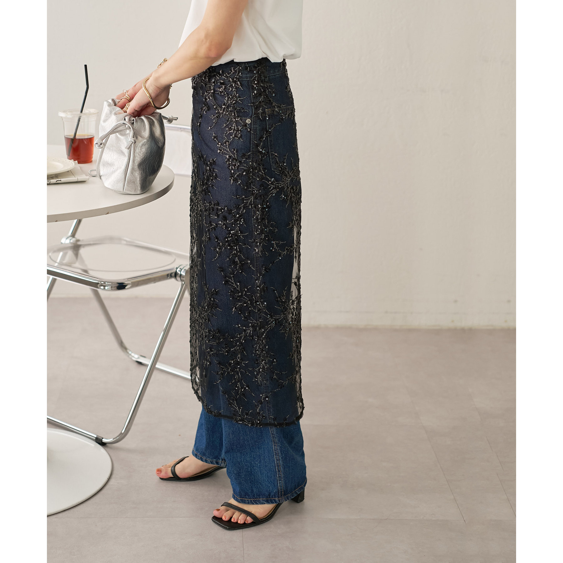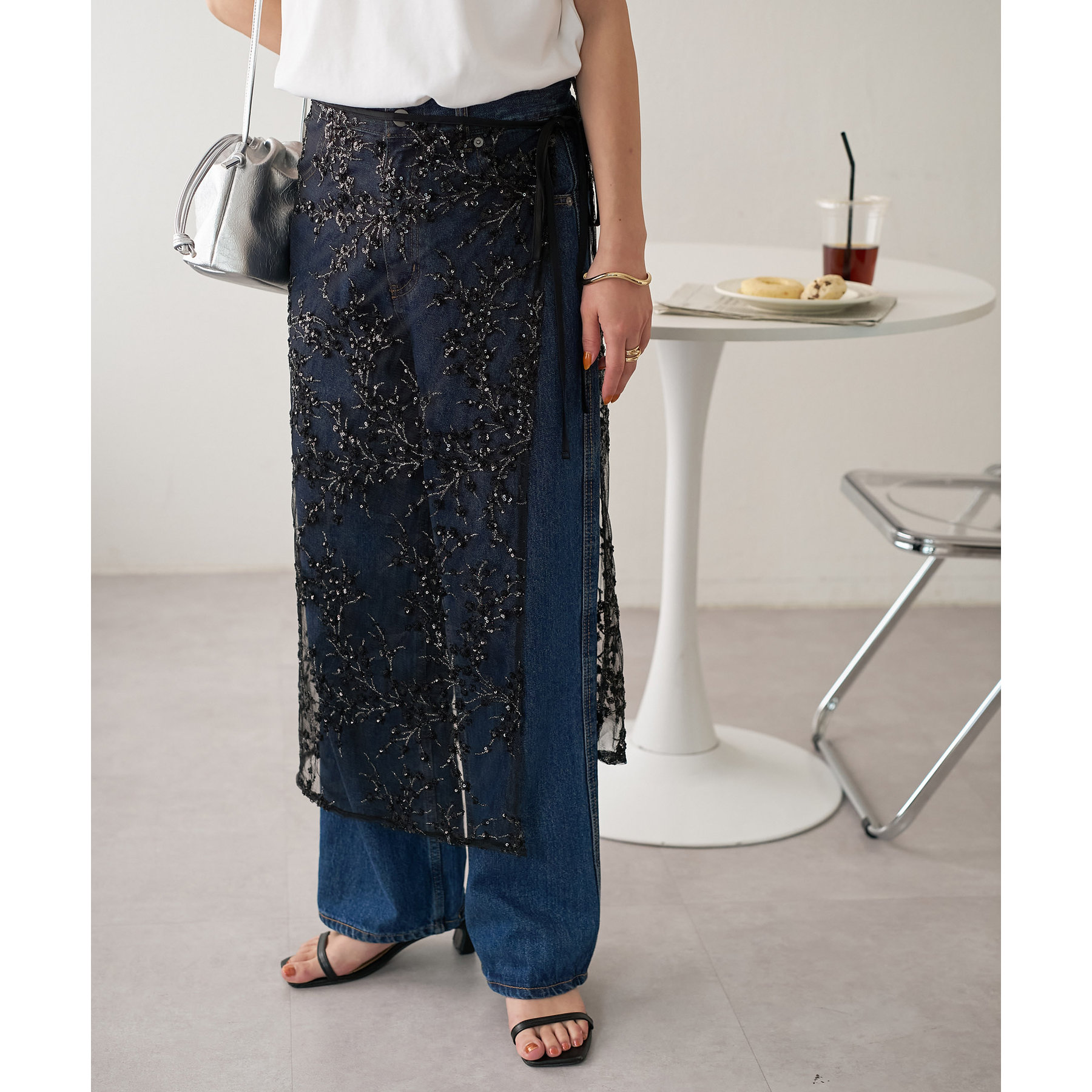 デニムやTシャツなどシンプルなスタイルに合わせるだけで簡単に今年らしさのあるコーデが完成します。ボトムスに合わせるのはもちろん、トップスにレイヤードするのもおすすめ。季節を問わないアイテムなので、オールシーズンレイヤードが楽しめます。
