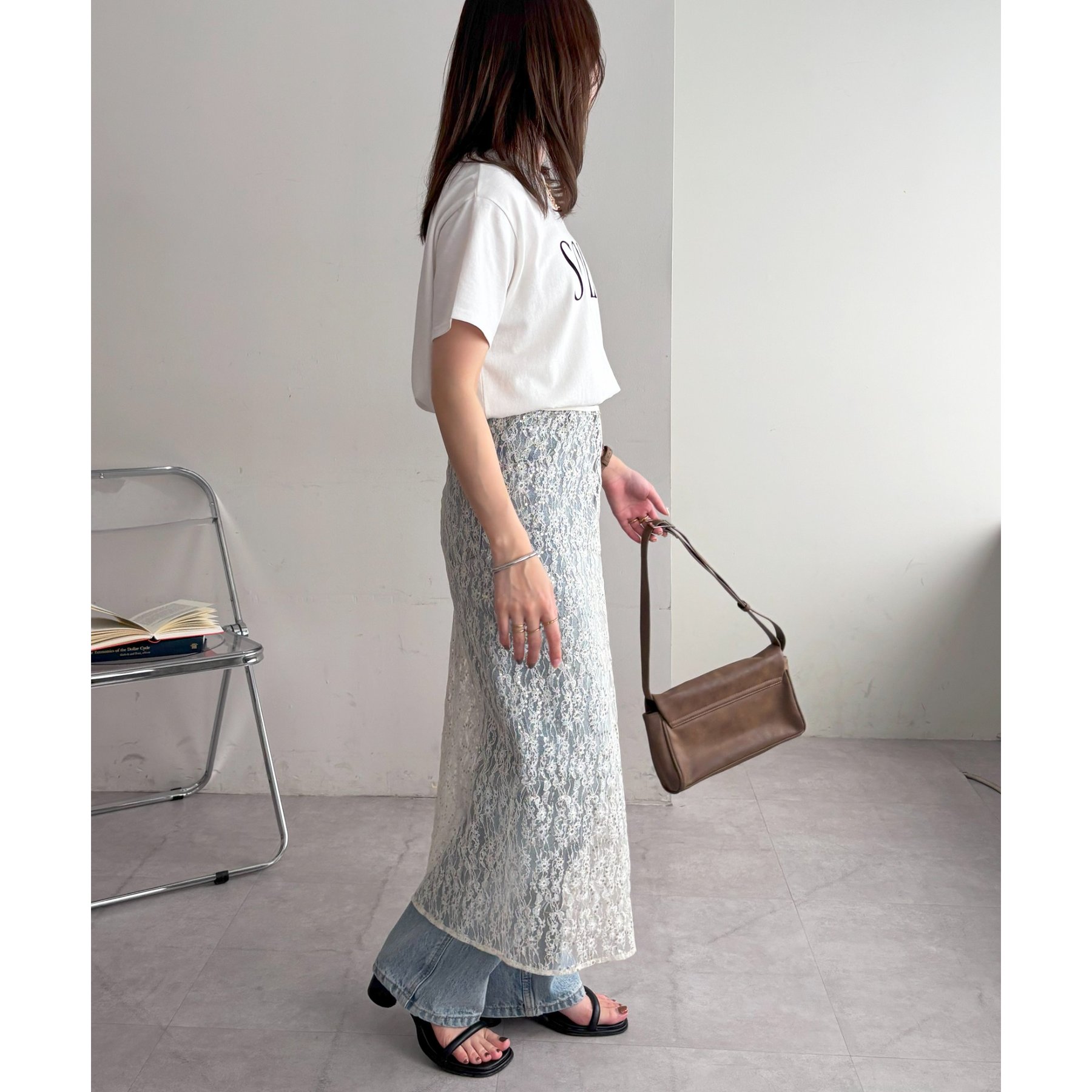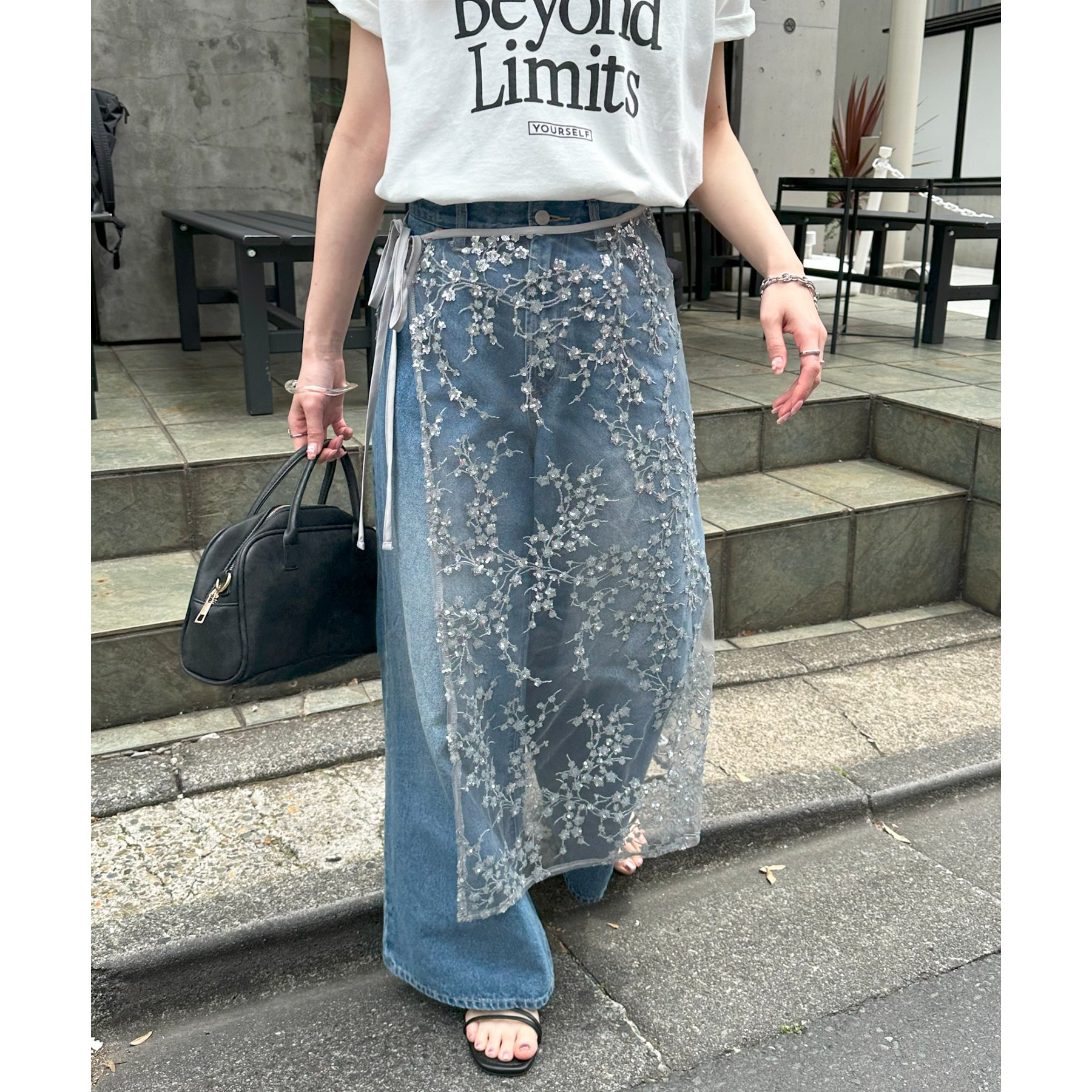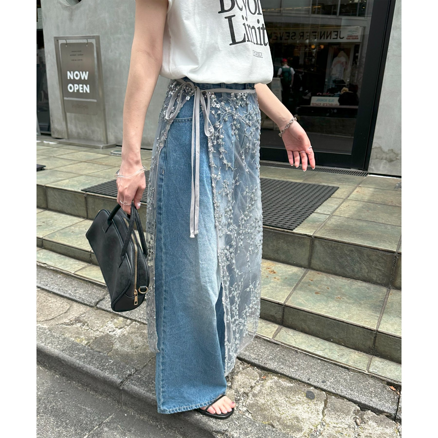 デニムやTシャツなどシンプルなスタイルに合わせるだけで簡単に今年らしさのあるコーデが完成します。ボトムスに合わせるのはもちろん、トップスにレイヤードするのもおすすめ。季節を問わないアイテムなので、オールシーズンレイヤードが楽しめます。