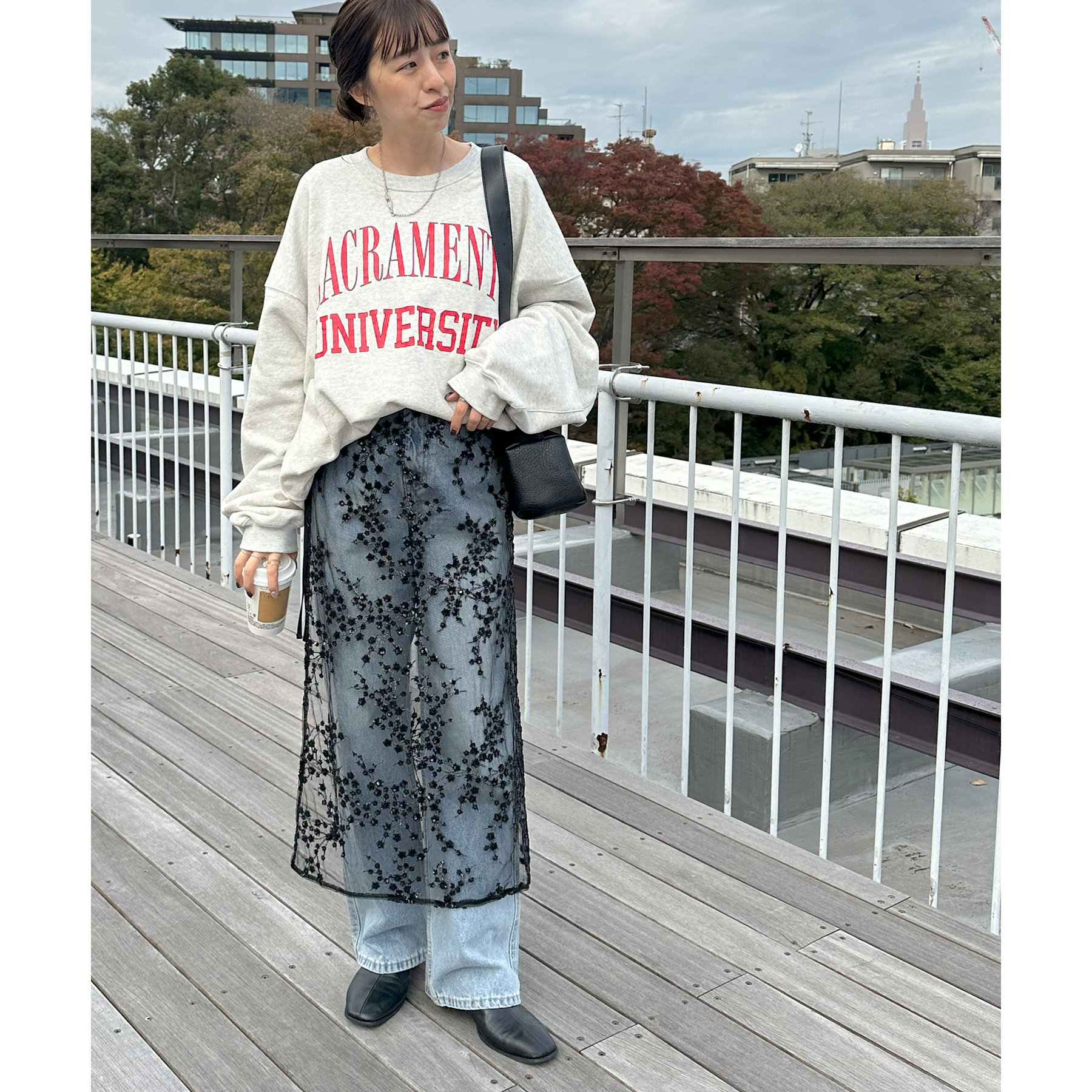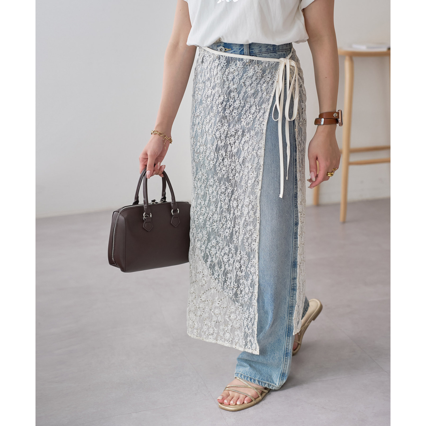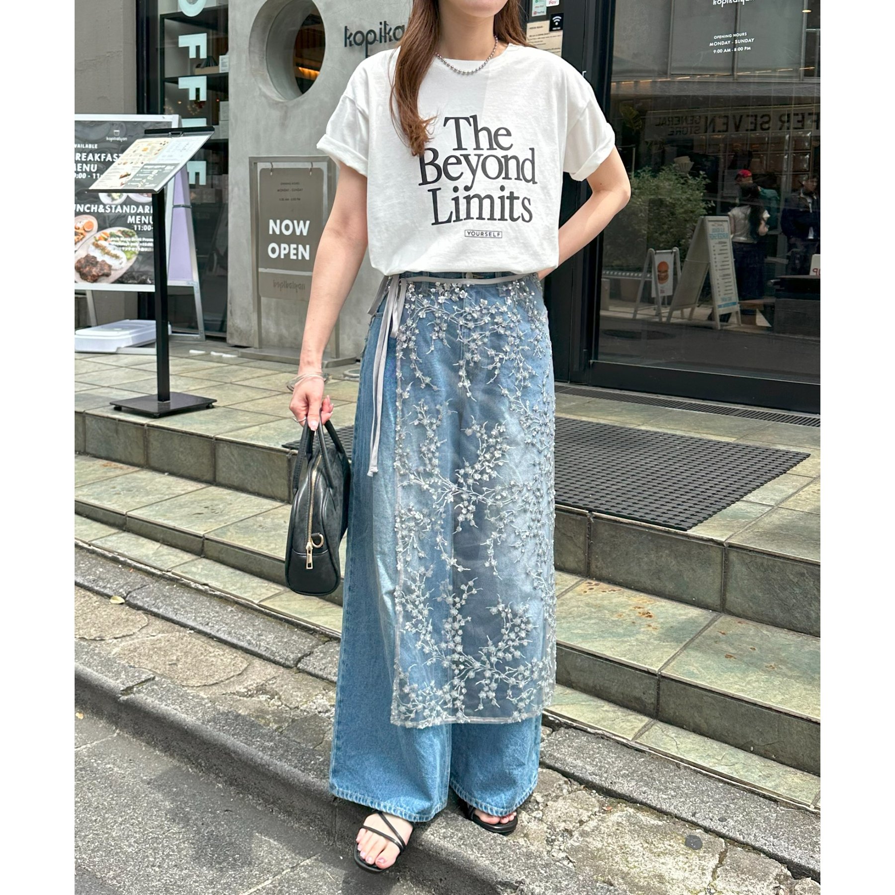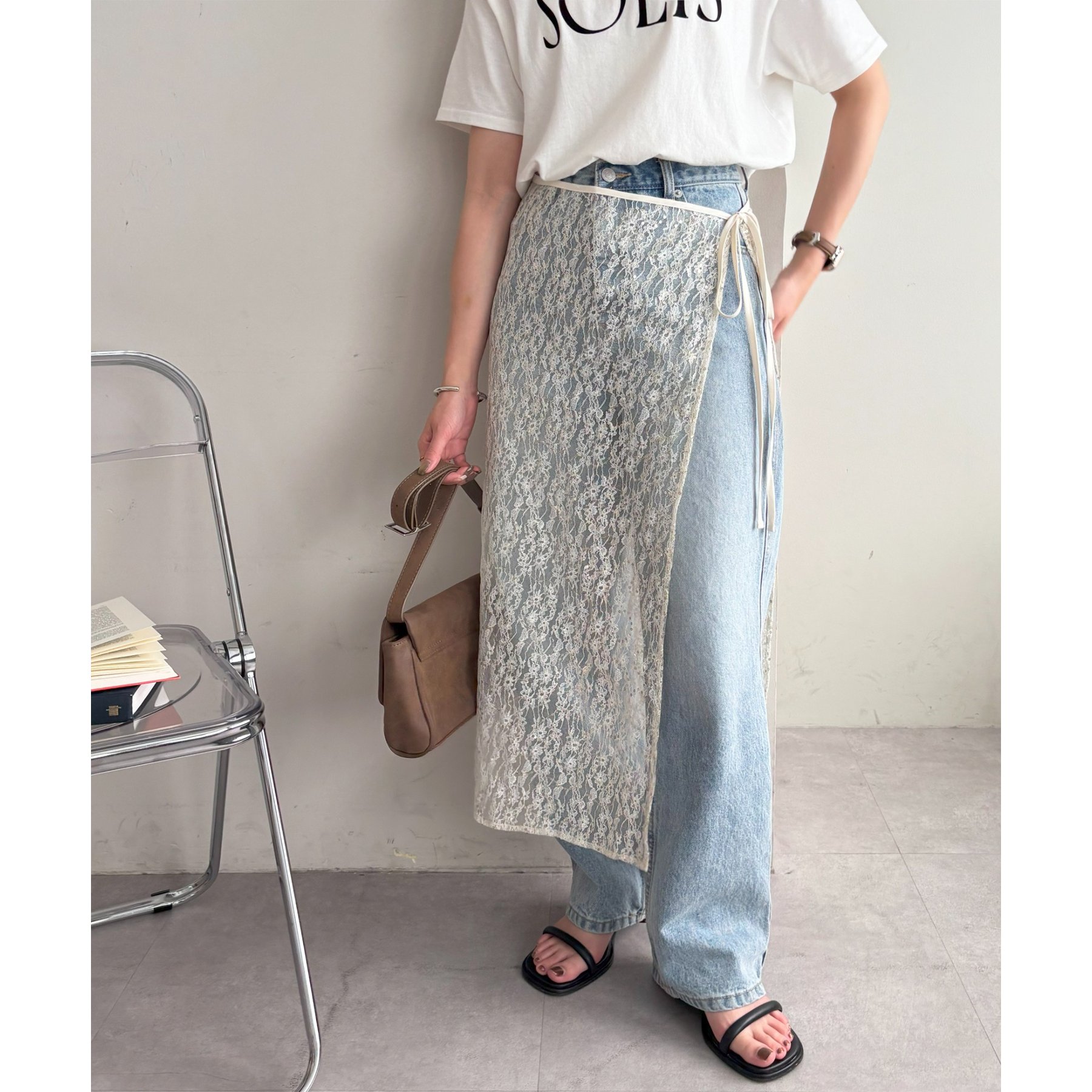 デニムやTシャツなどシンプルなスタイルに合わせるだけで簡単に今年らしさのあるコーデが完成します。ボトムスに合わせるのはもちろん、トップスにレイヤードするのもおすすめ。季節を問わないアイテムなので、オールシーズンレイヤードが楽しめます。