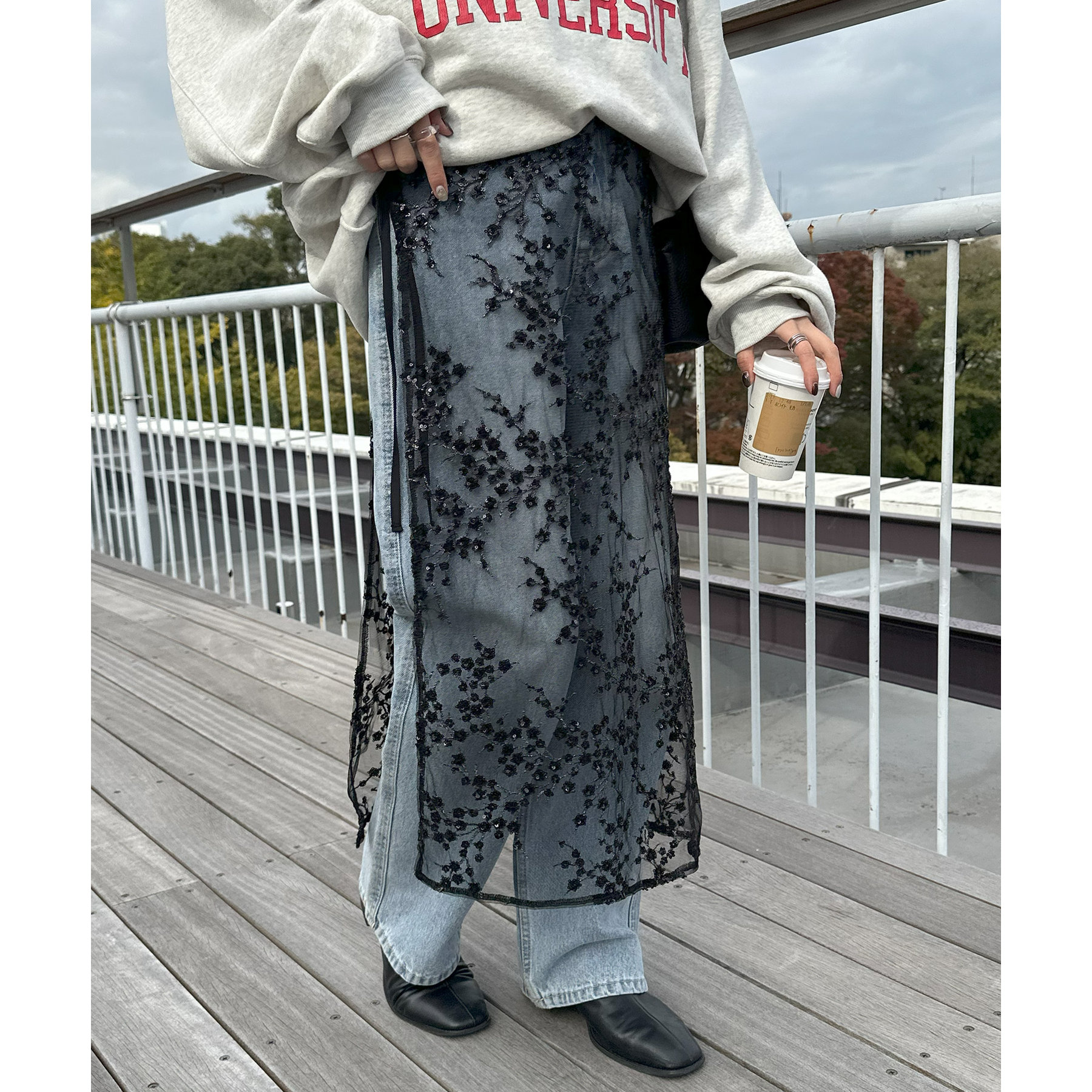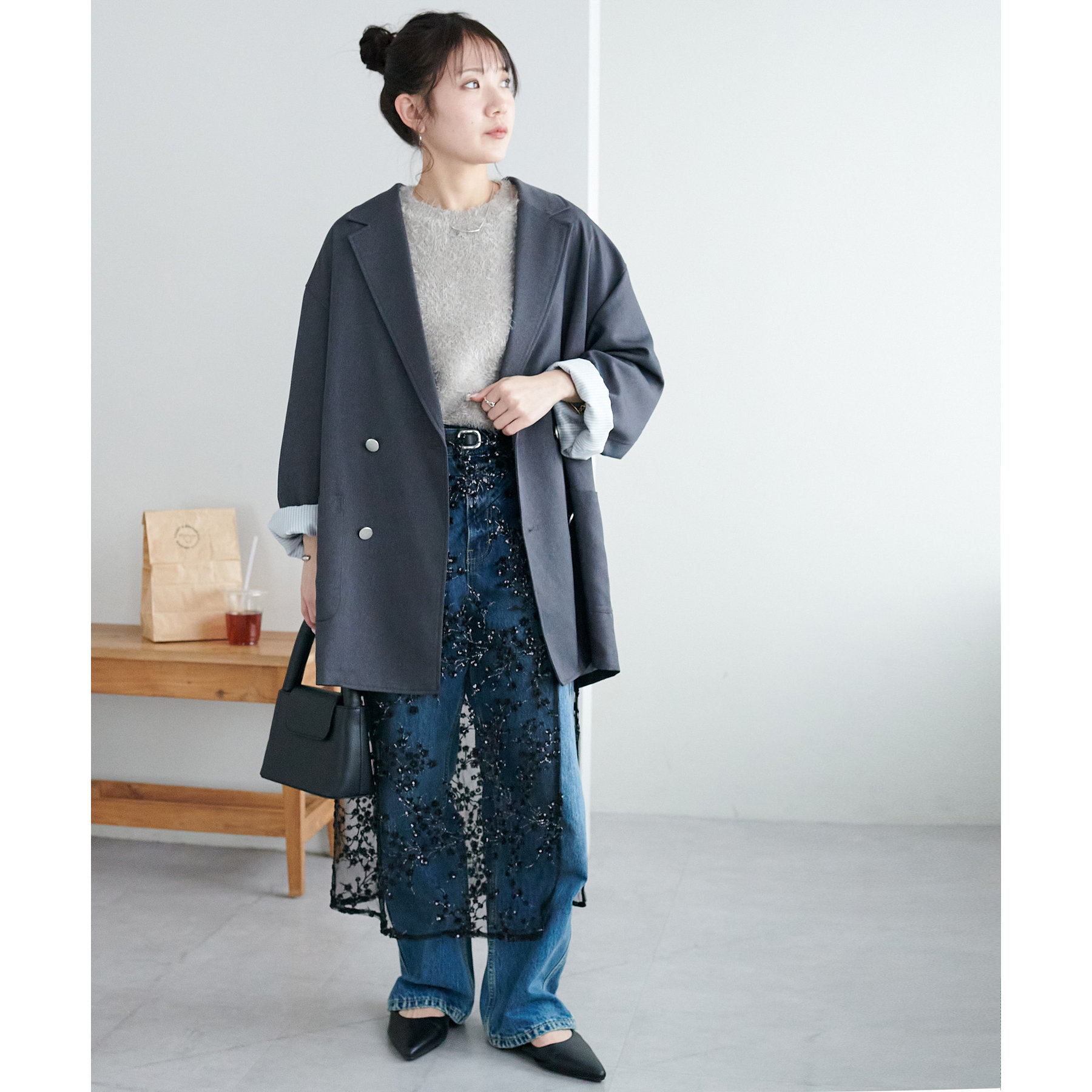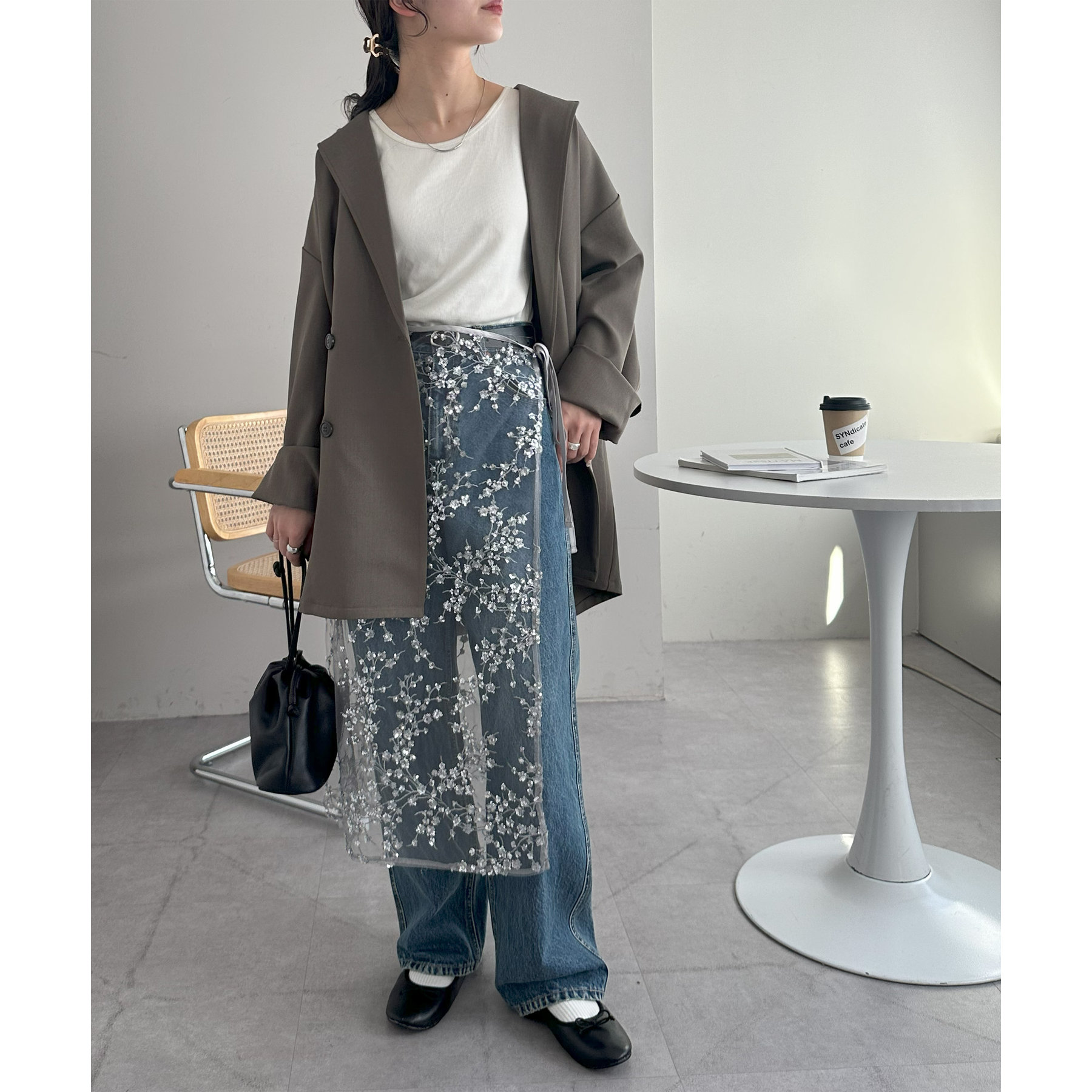 ヒップ回をカバーできるので安心感もあります!やや長めの丈感ですが、透け感があるので、重たく見えにくくコーデに抜け感を取り入れることができます。