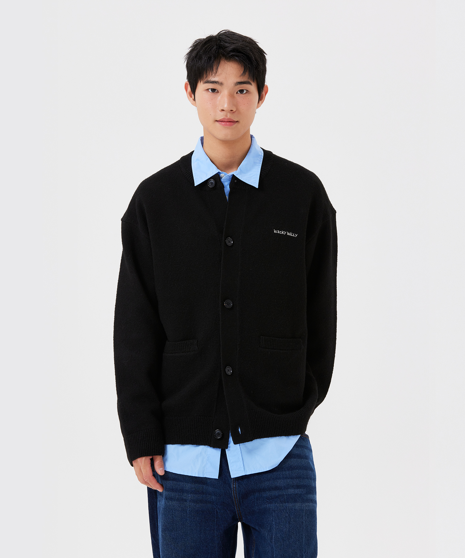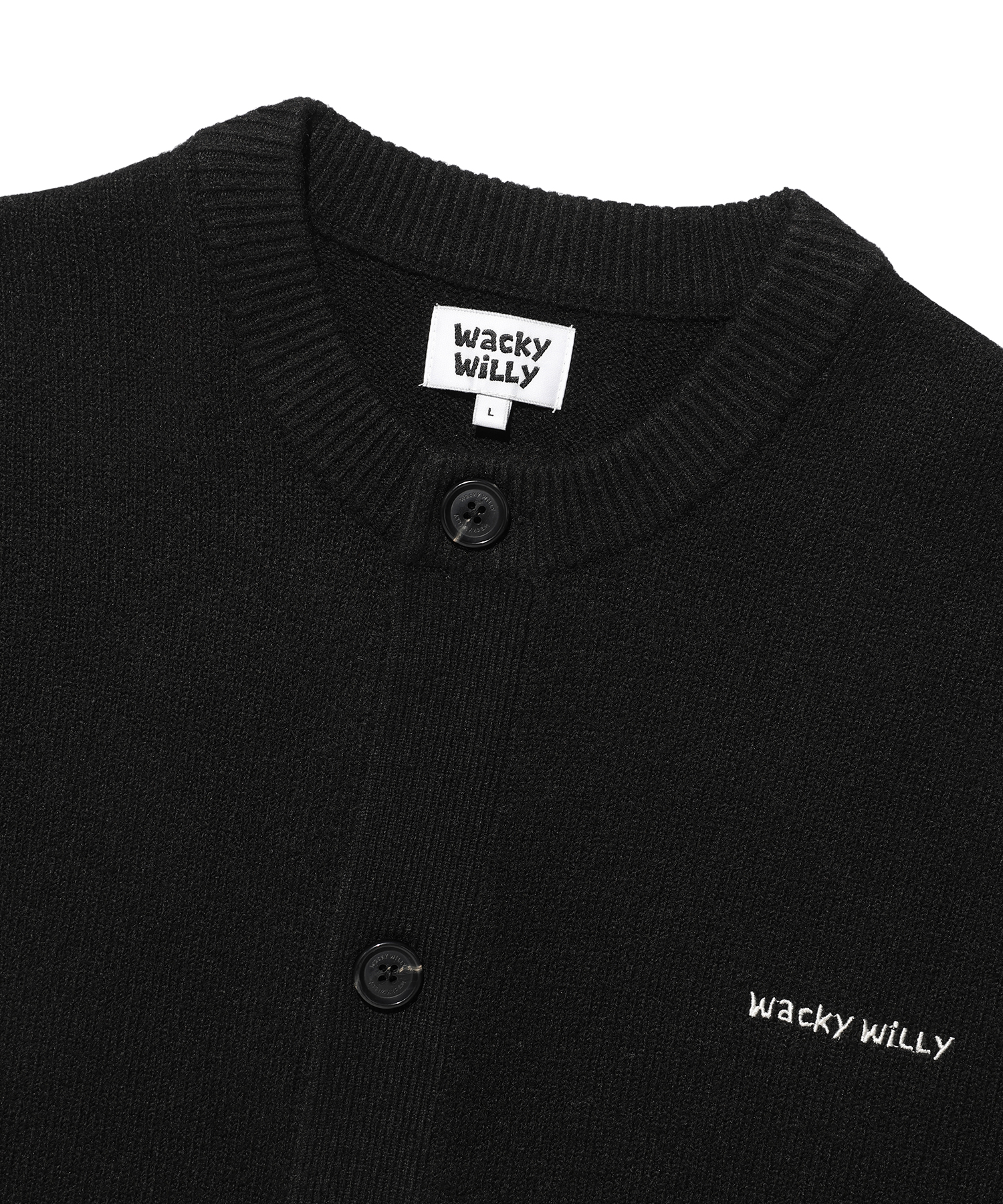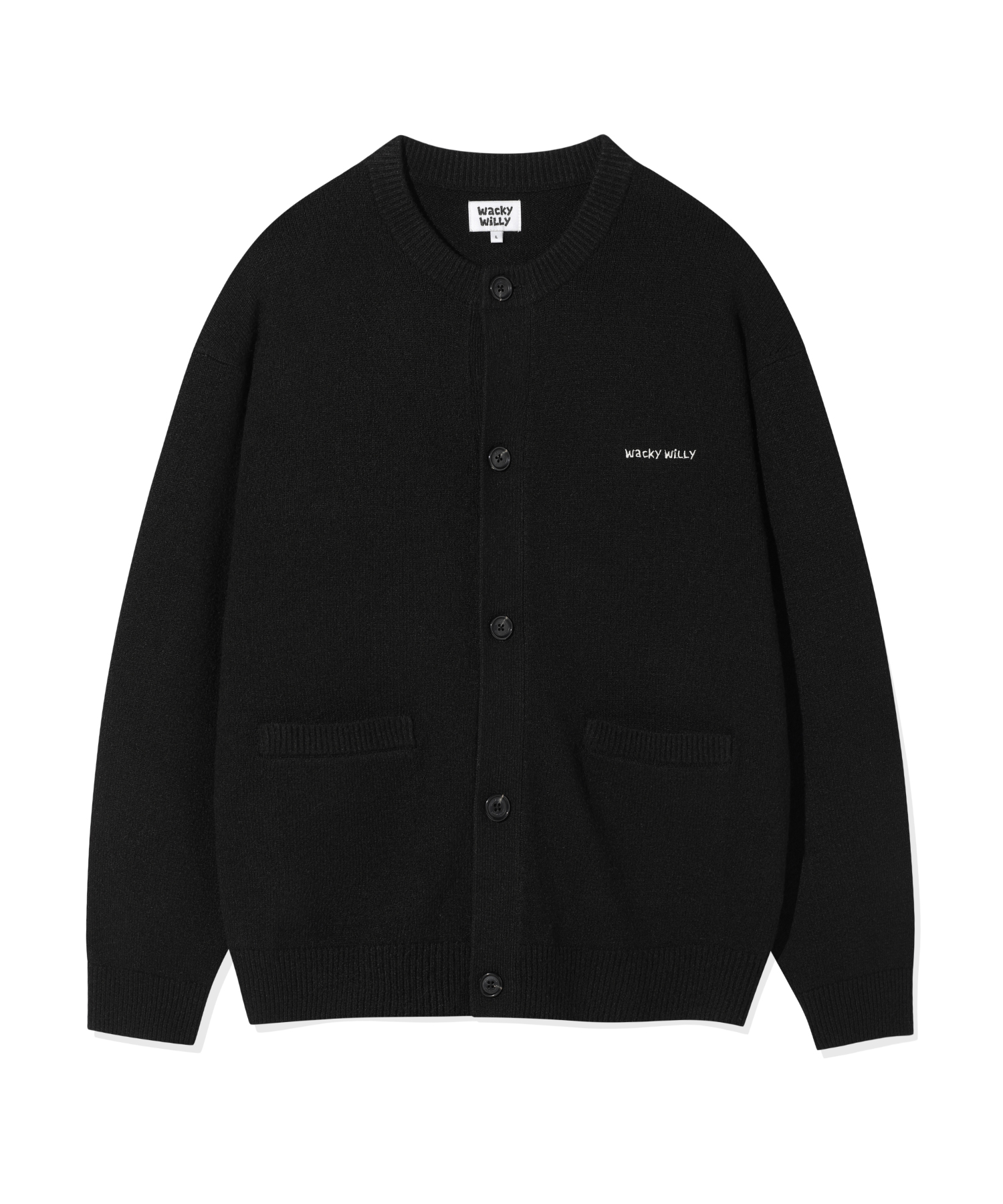 Typo Logo Round Neck Cardigan Black