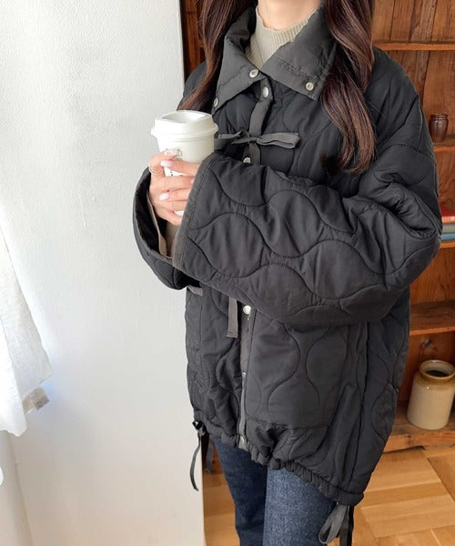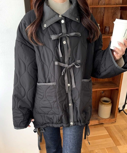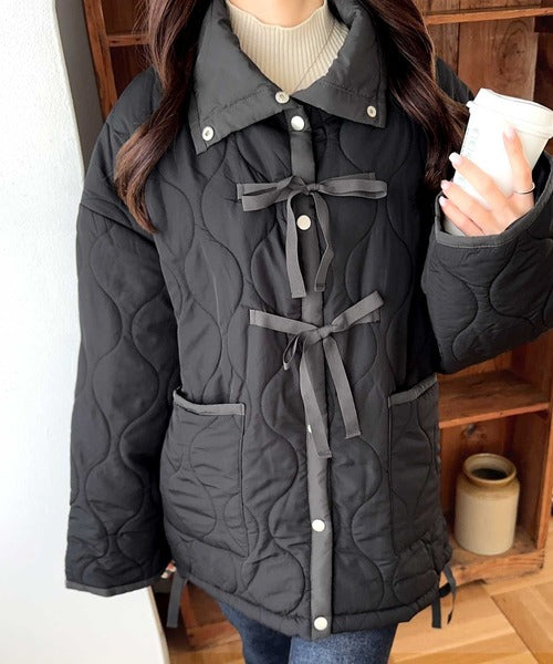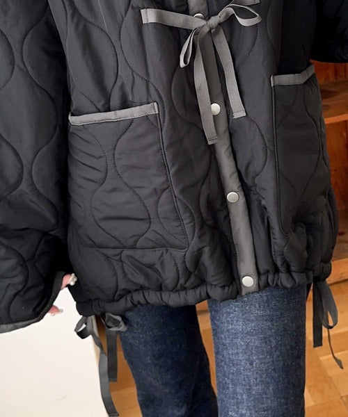 【mily bilet】フェミニンに着こなせる秋冬アウター。リボン使いパイピング配色キルティングモンスターコート mi1019060