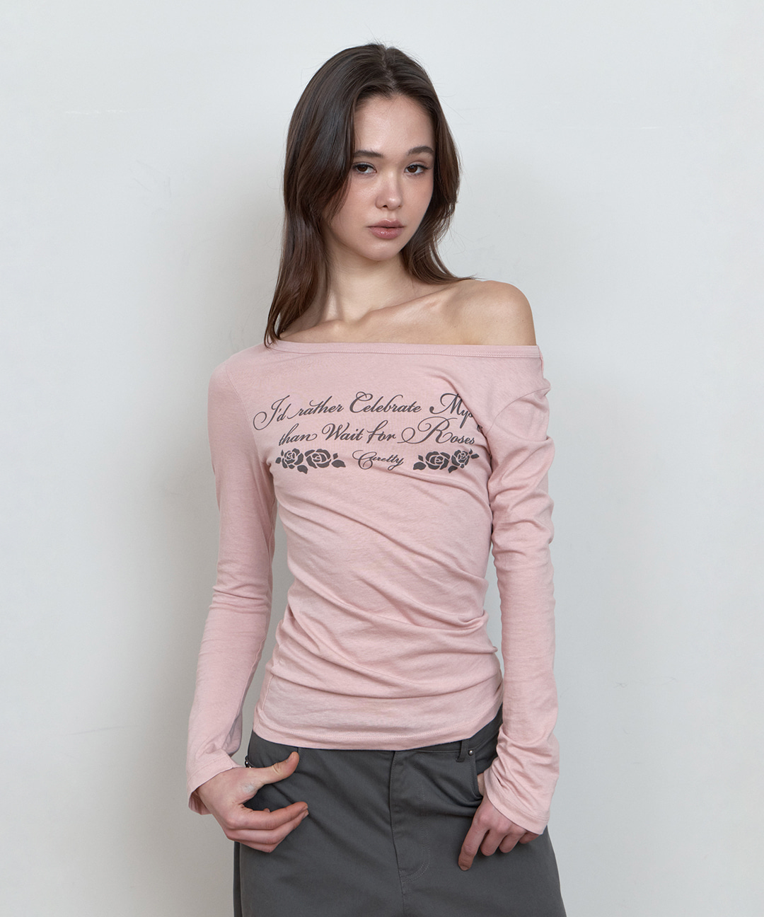 C ROSE GRAPHIC OFF-SHOULDER T-SHIRT_PINK