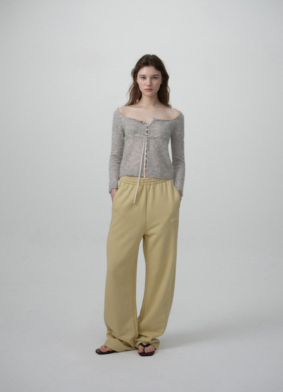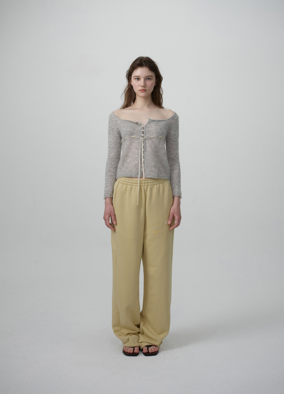 【先行販売】Velin Tie Mohair Knit Cardigan_Light Grey