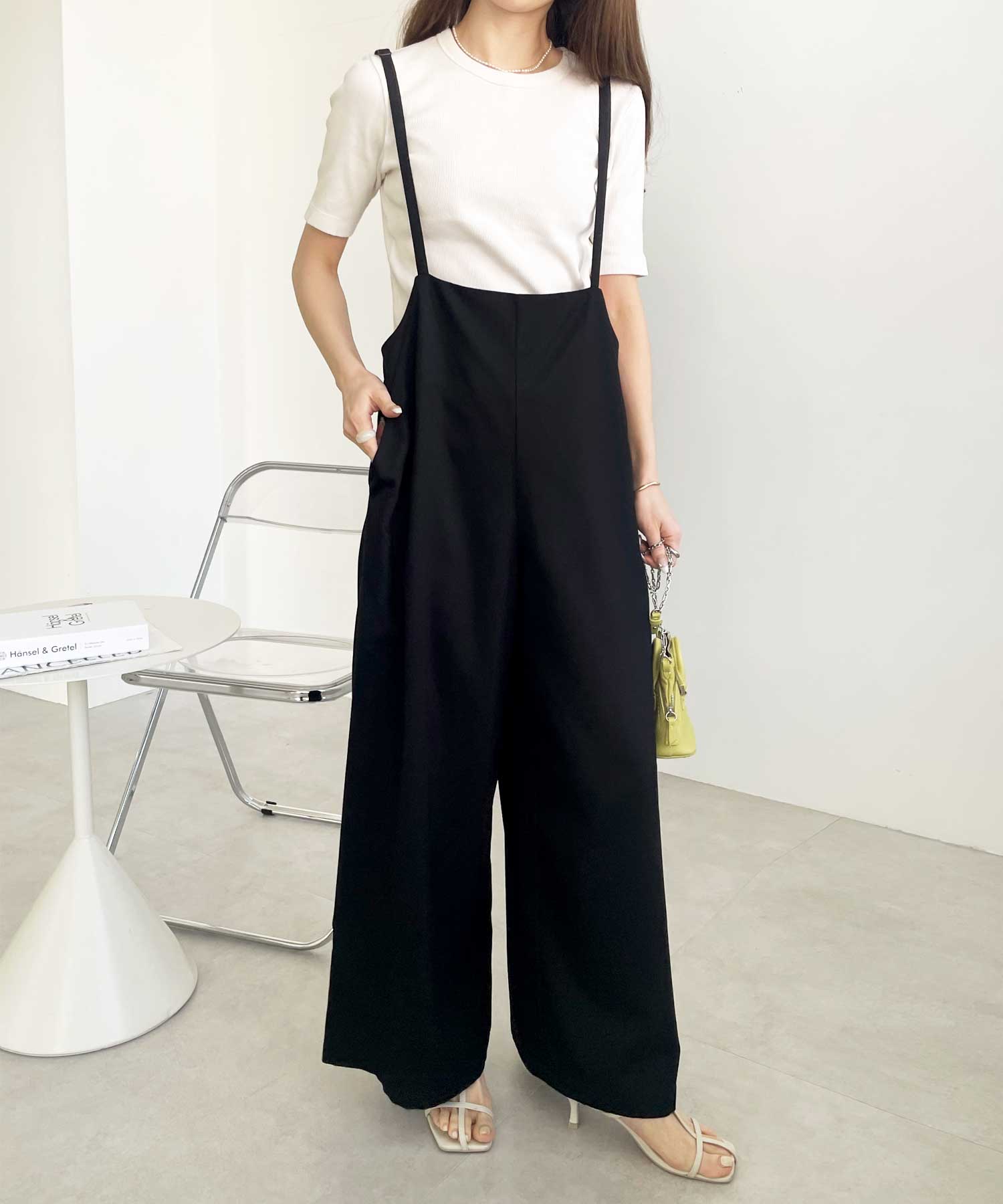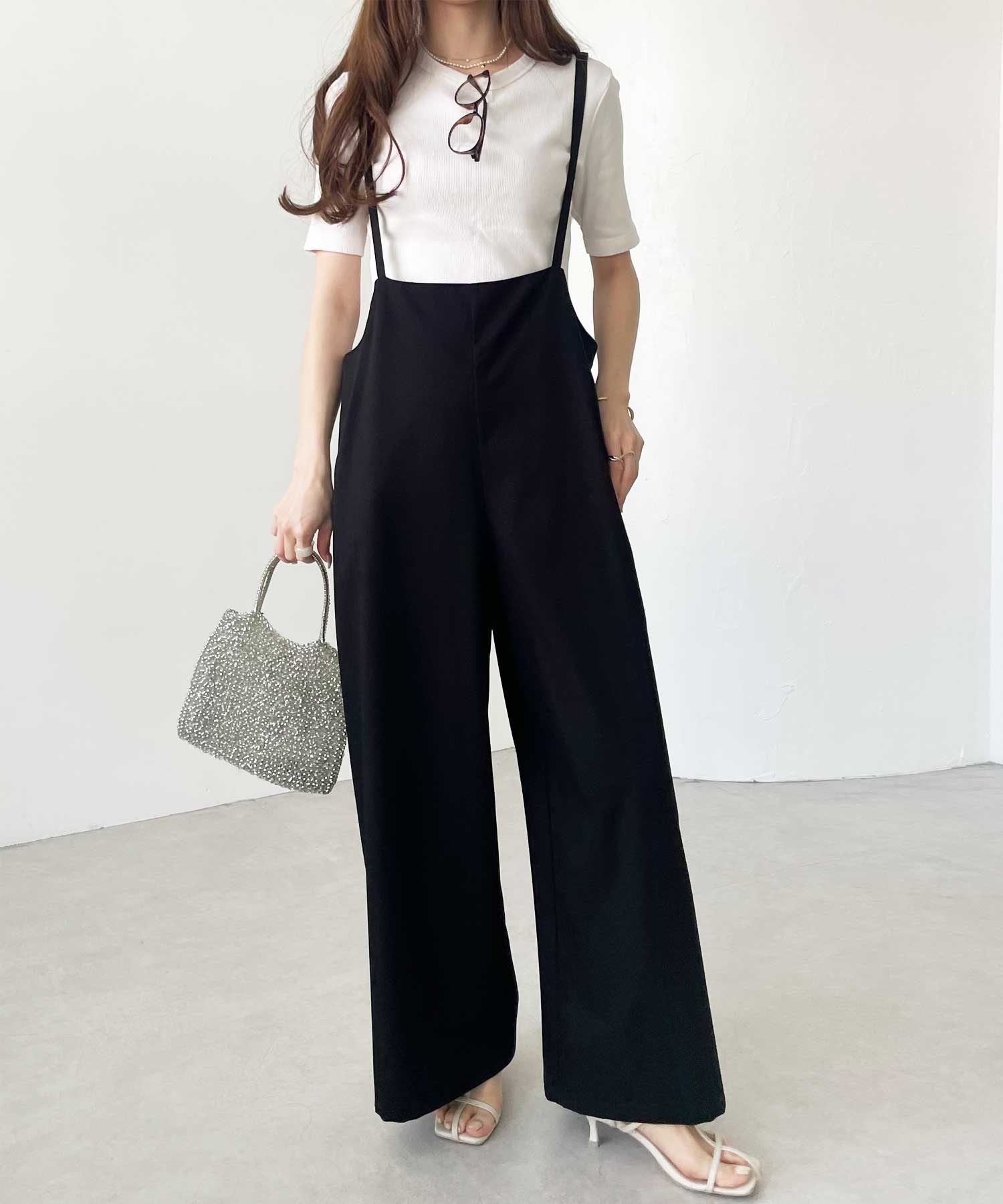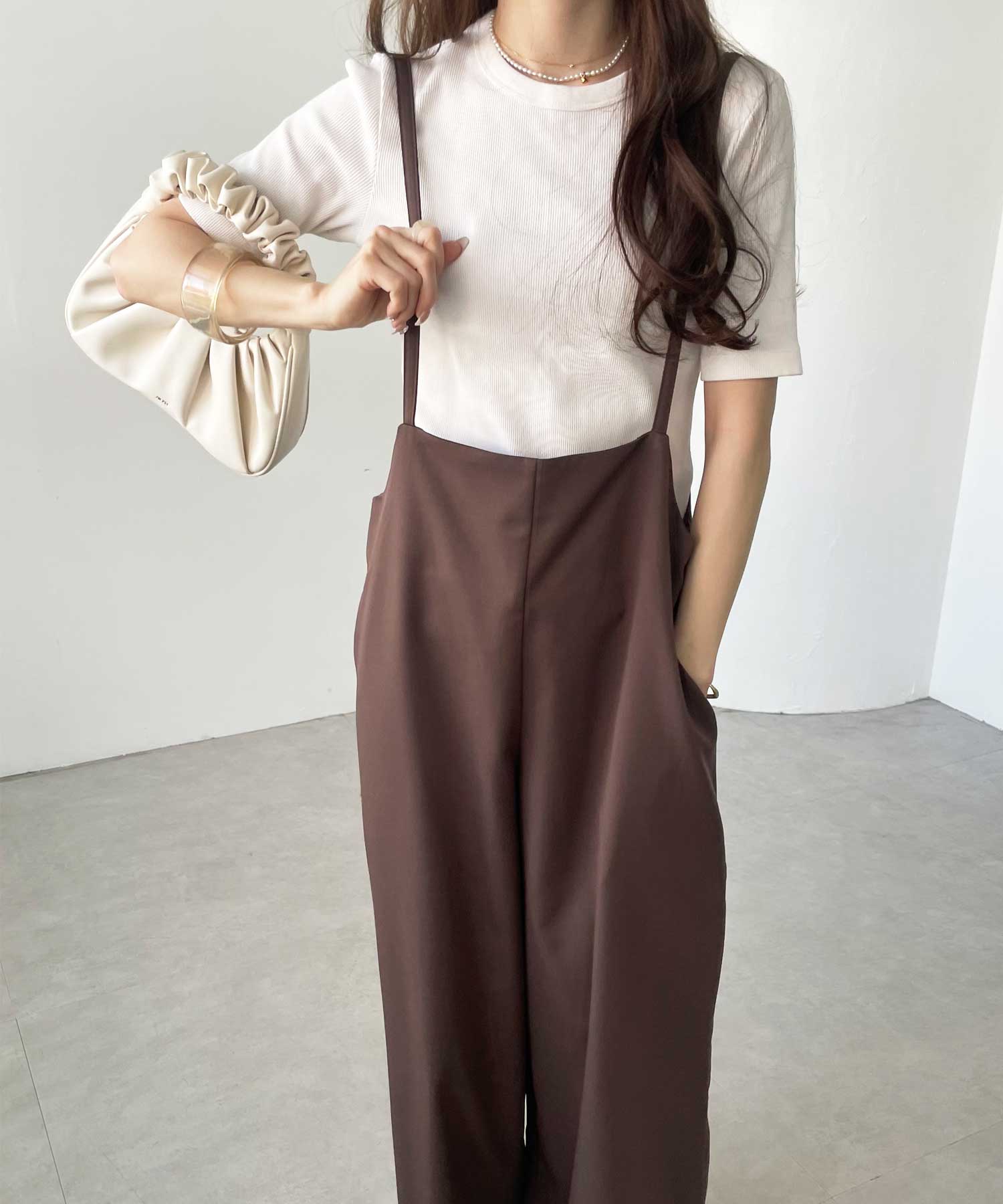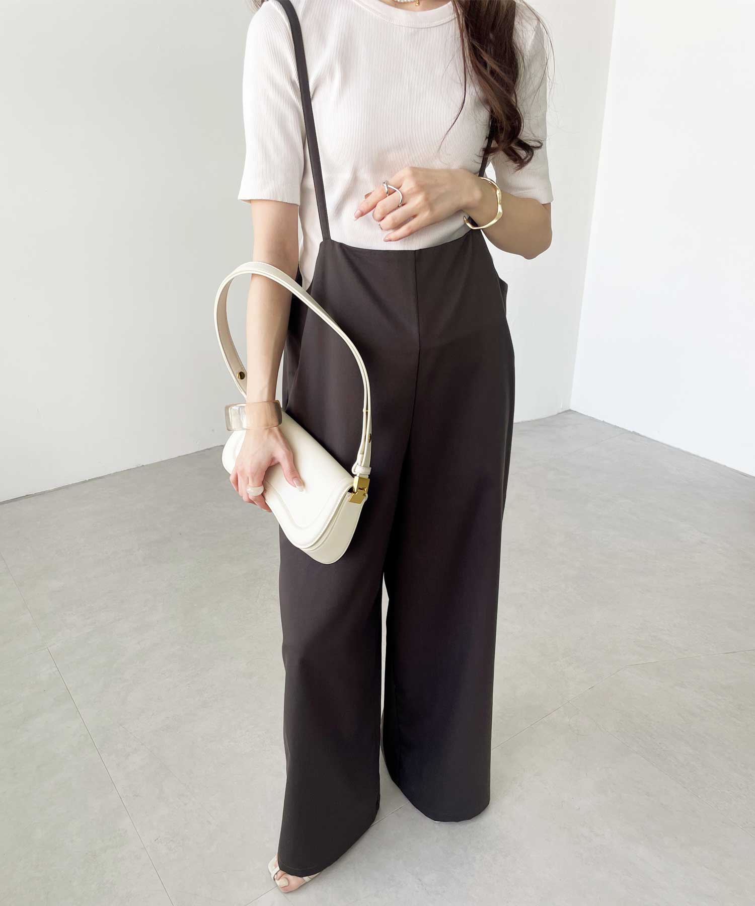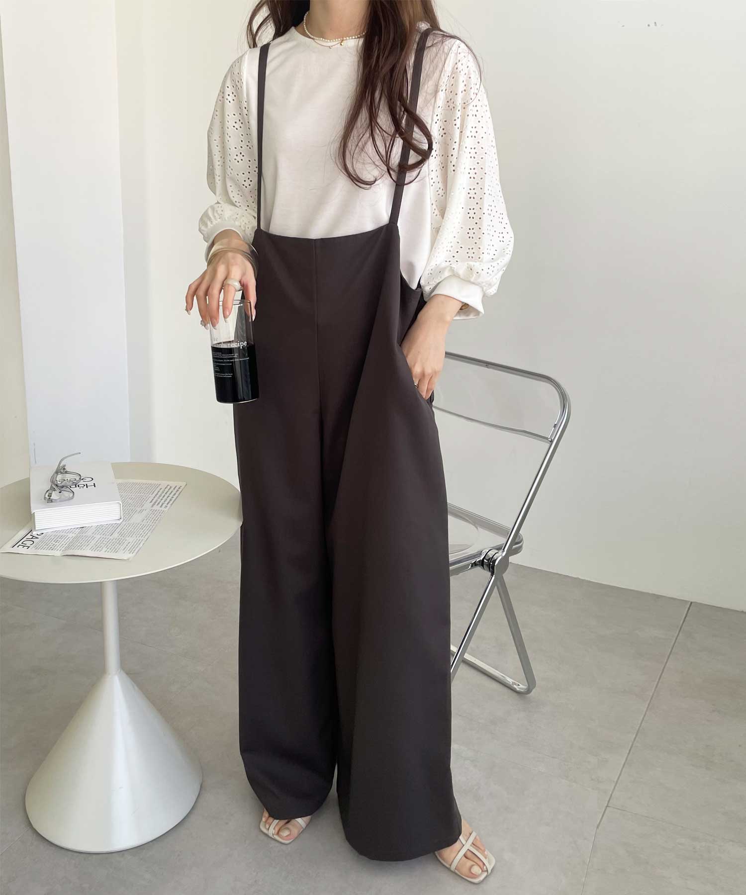 トップス次第で簡単に大人っぽいコーデを叶える、サロペットワイドパンツ。