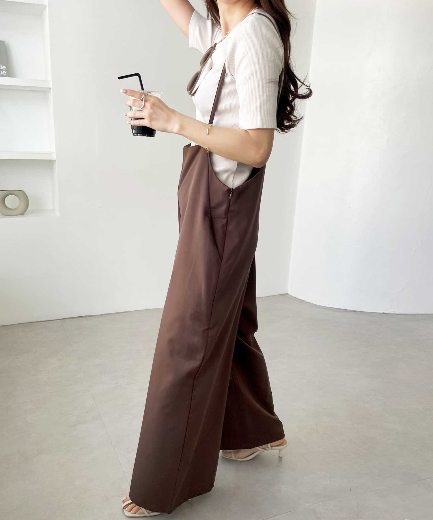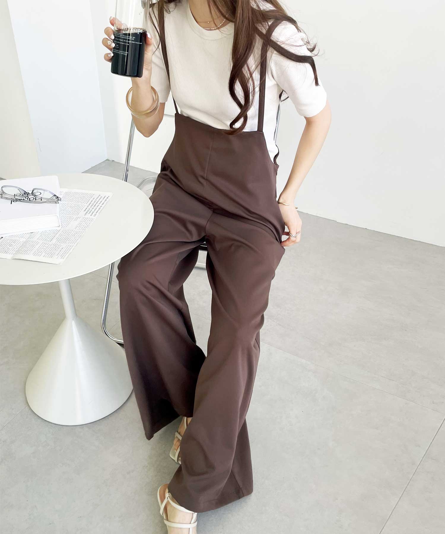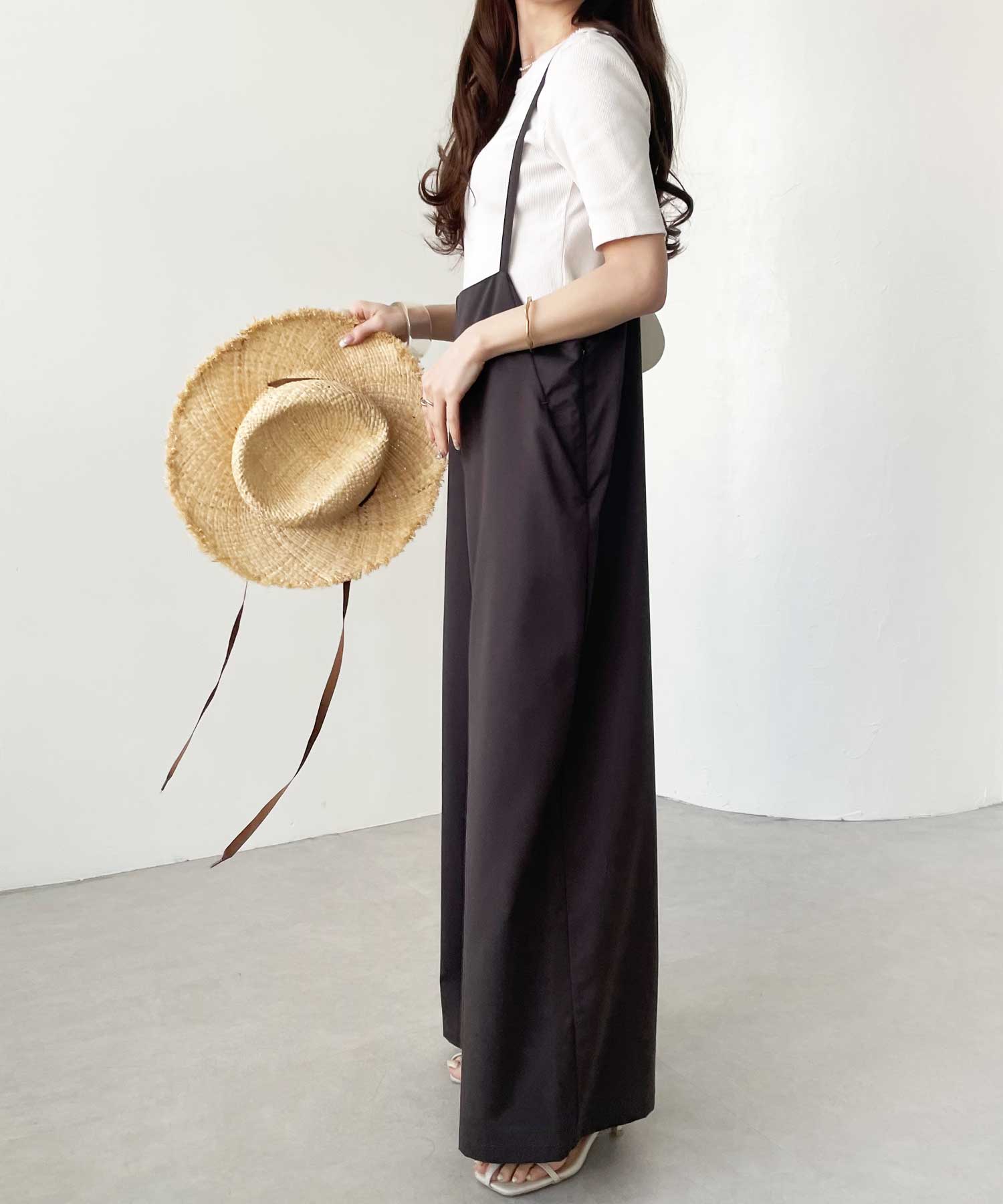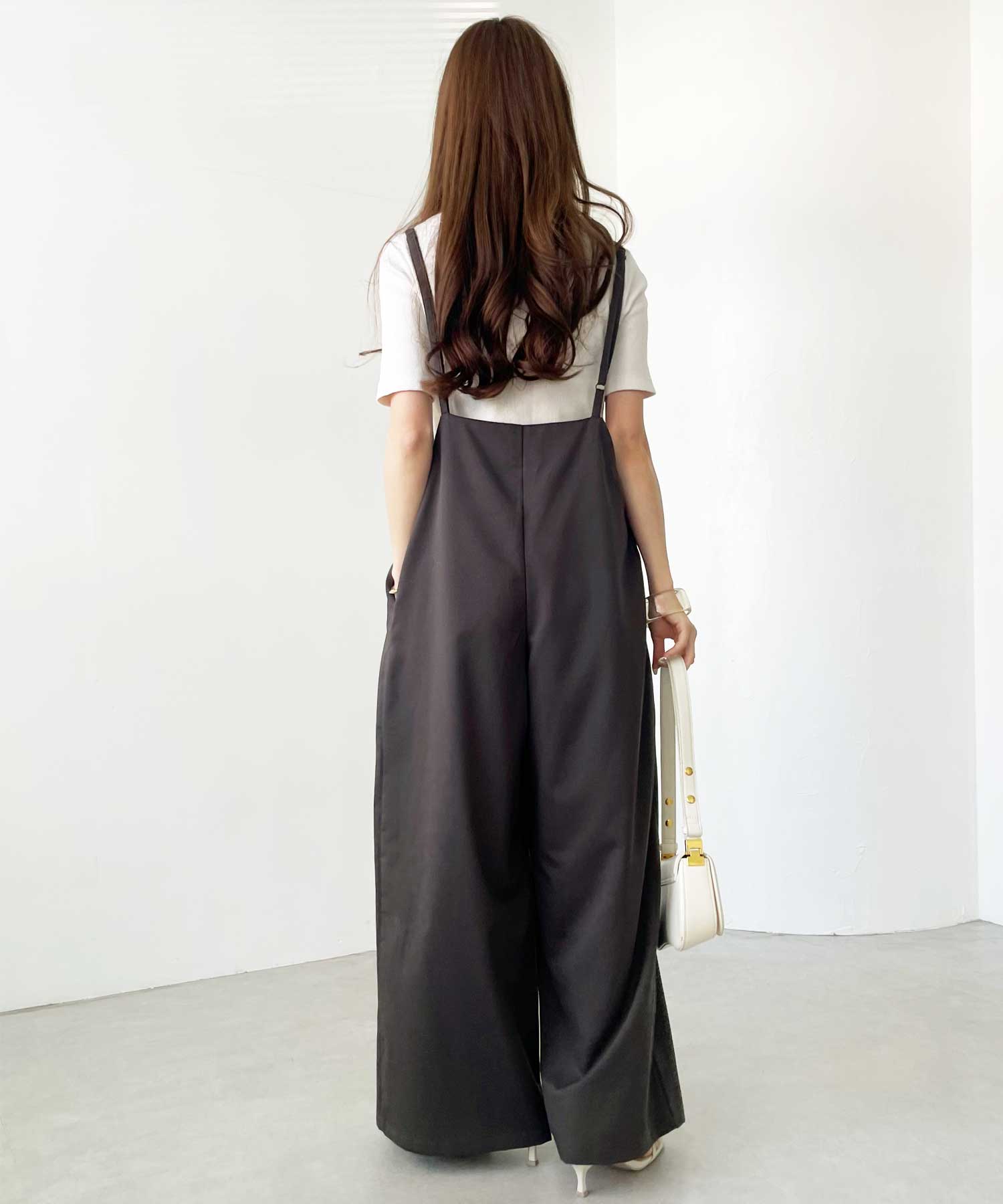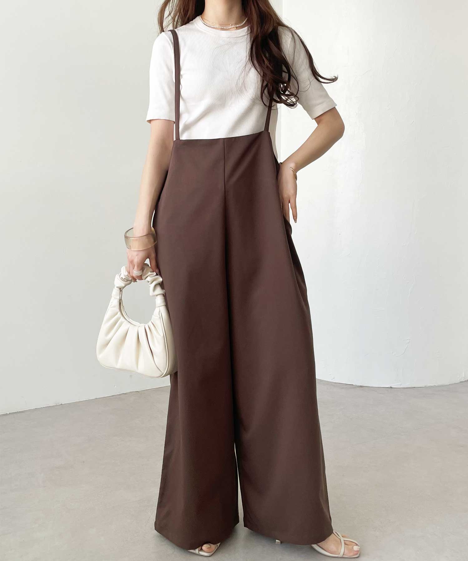 トップス次第で簡単に大人っぽいコーデを叶える、サロペットワイドパンツ。