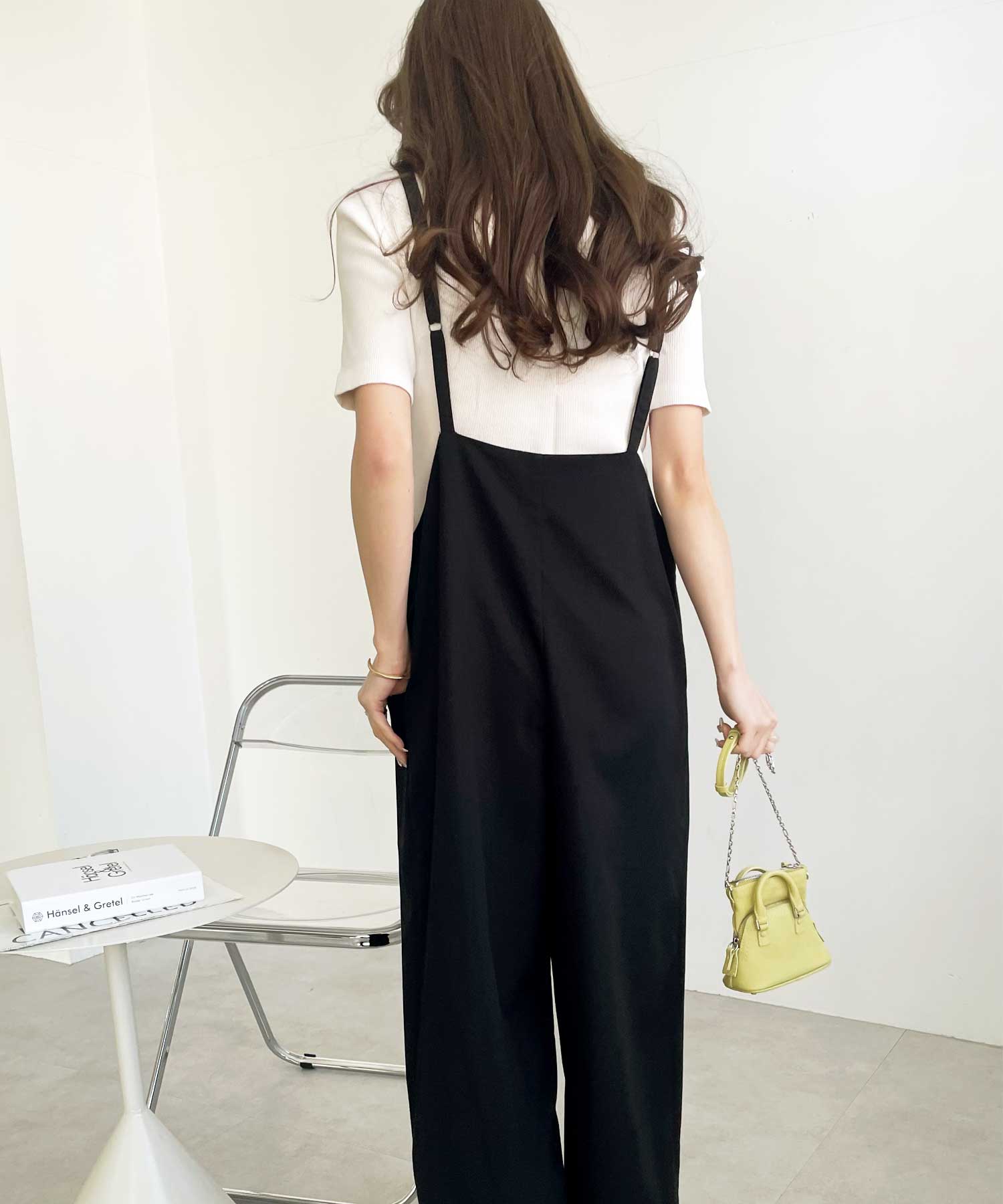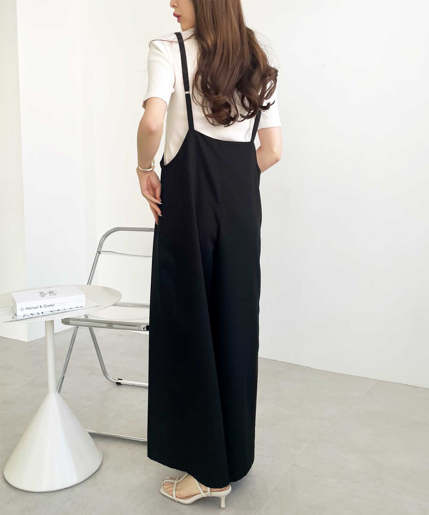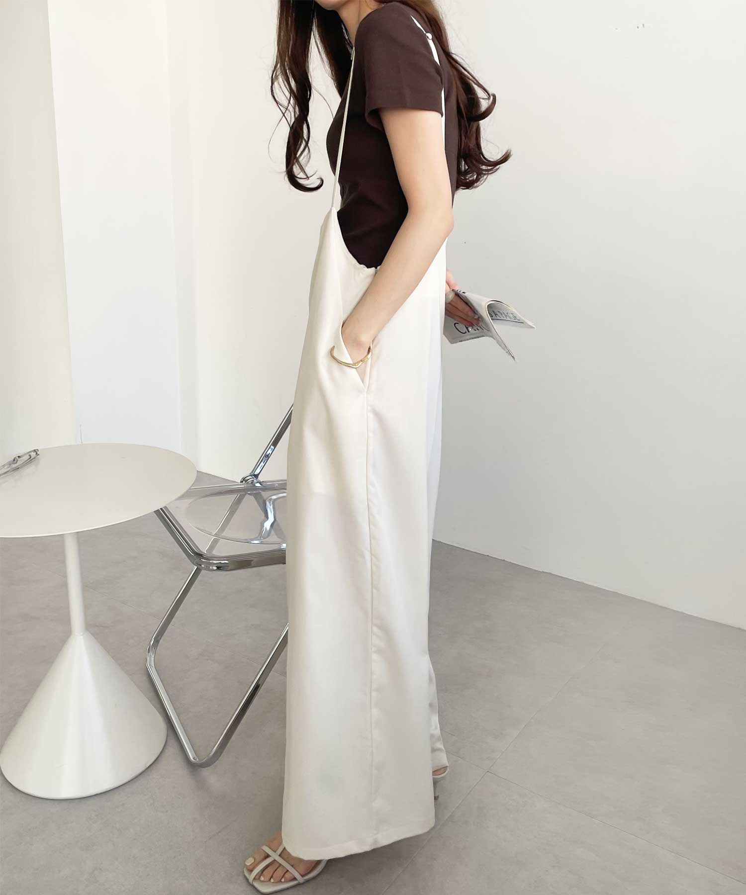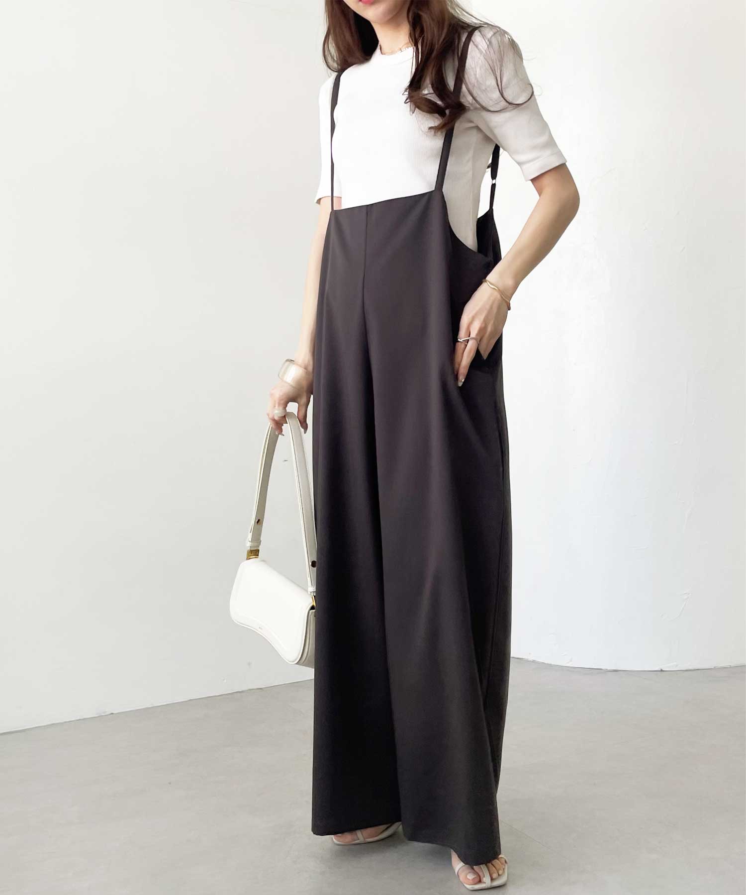 トップス次第で簡単に大人っぽいコーデを叶える、サロペットワイドパンツ。