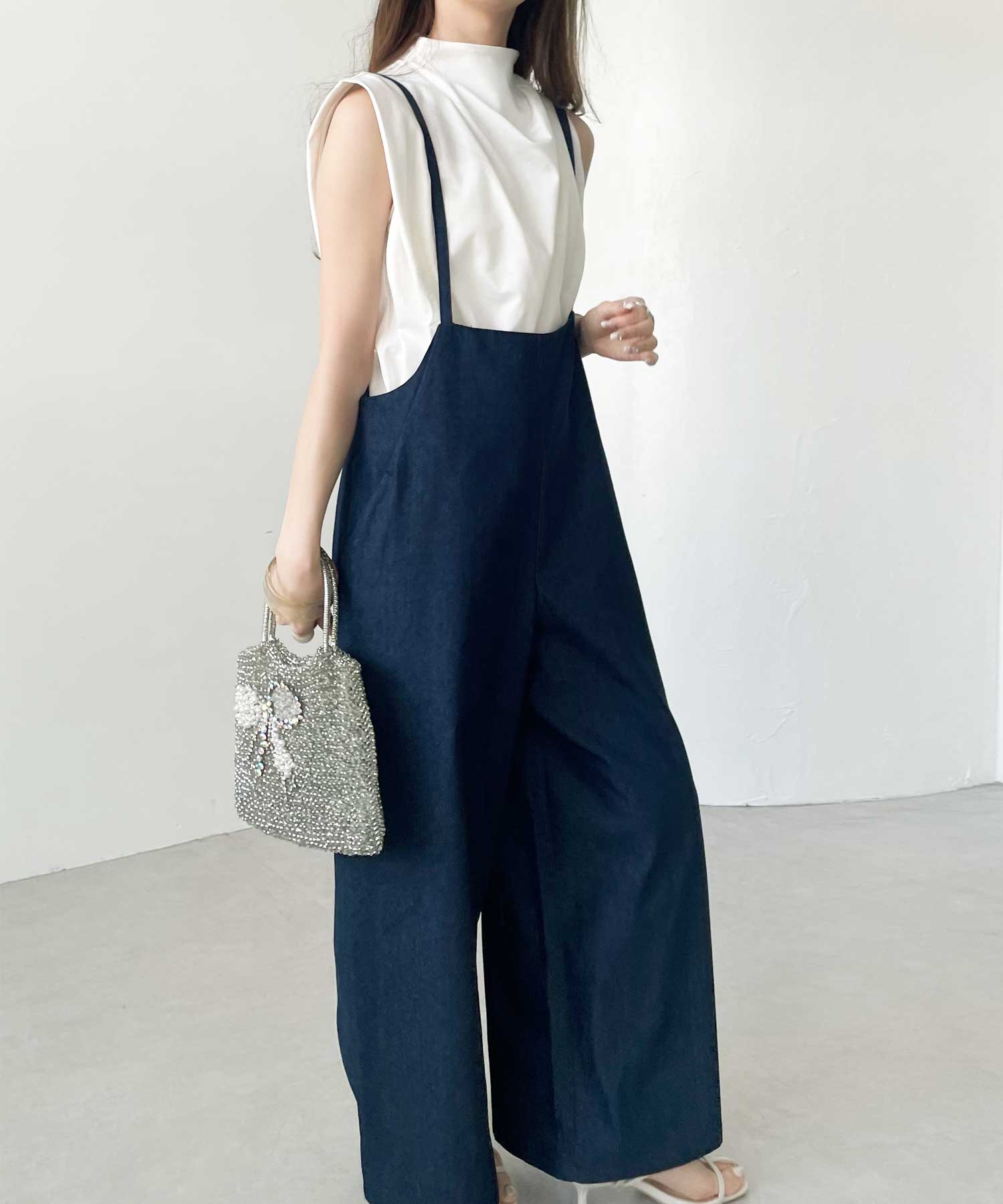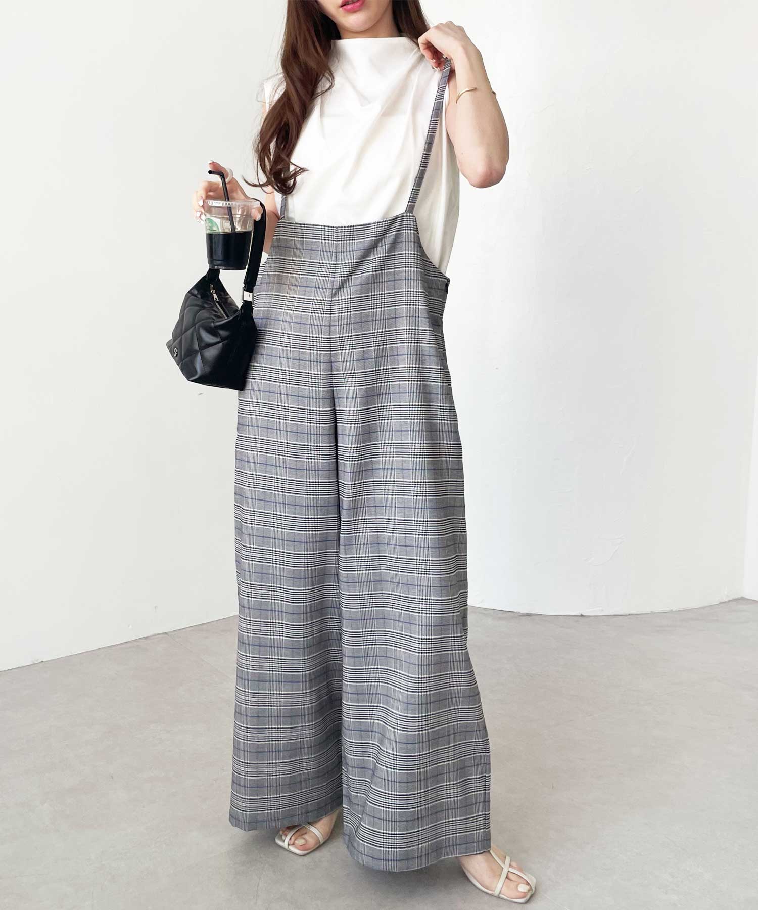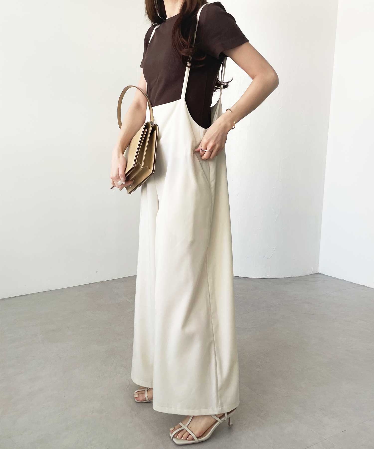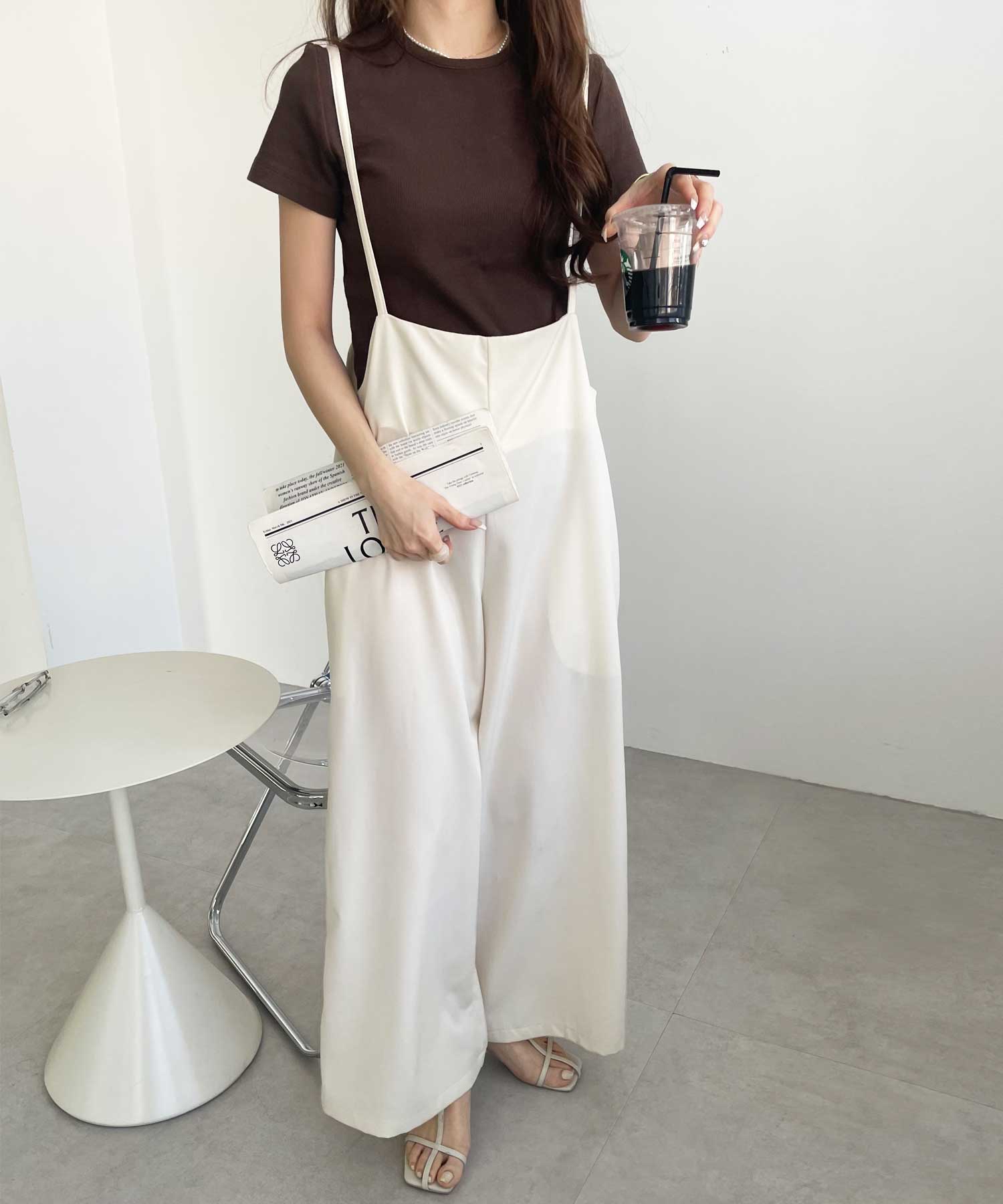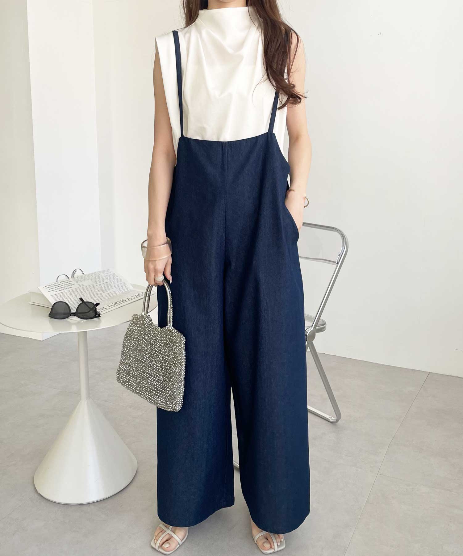 トップス次第で簡単に大人っぽいコーデを叶える、サロペットワイドパンツ。