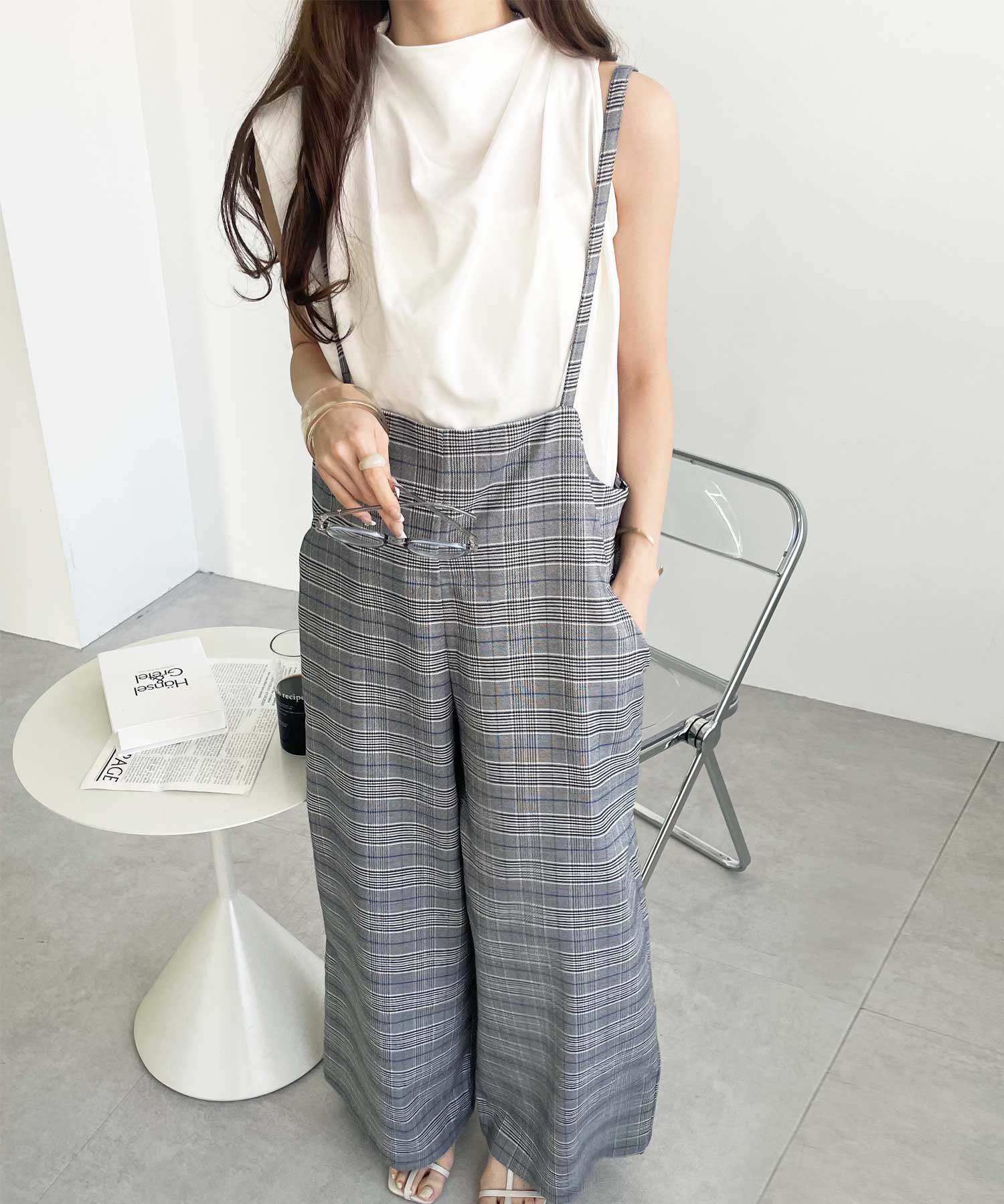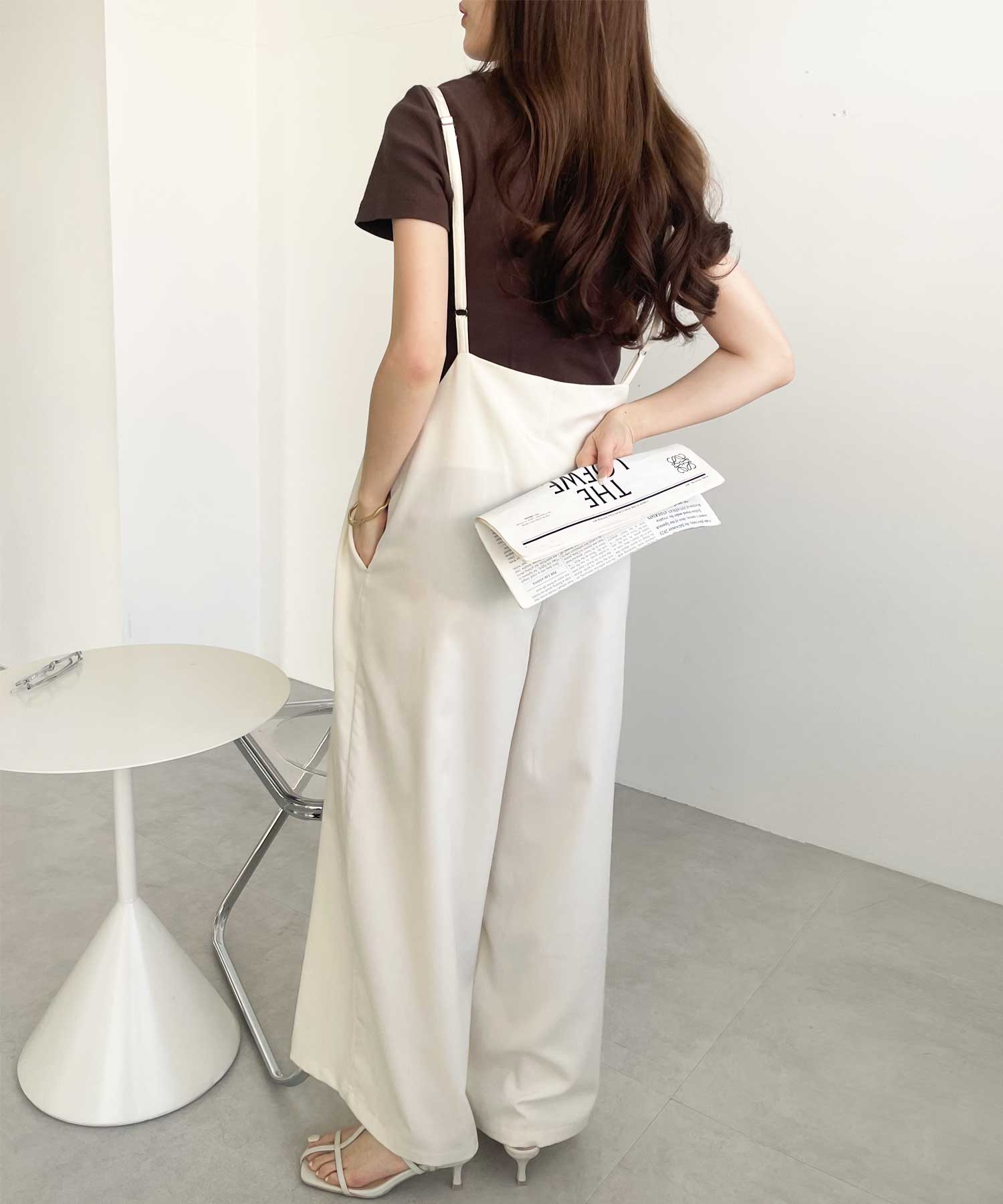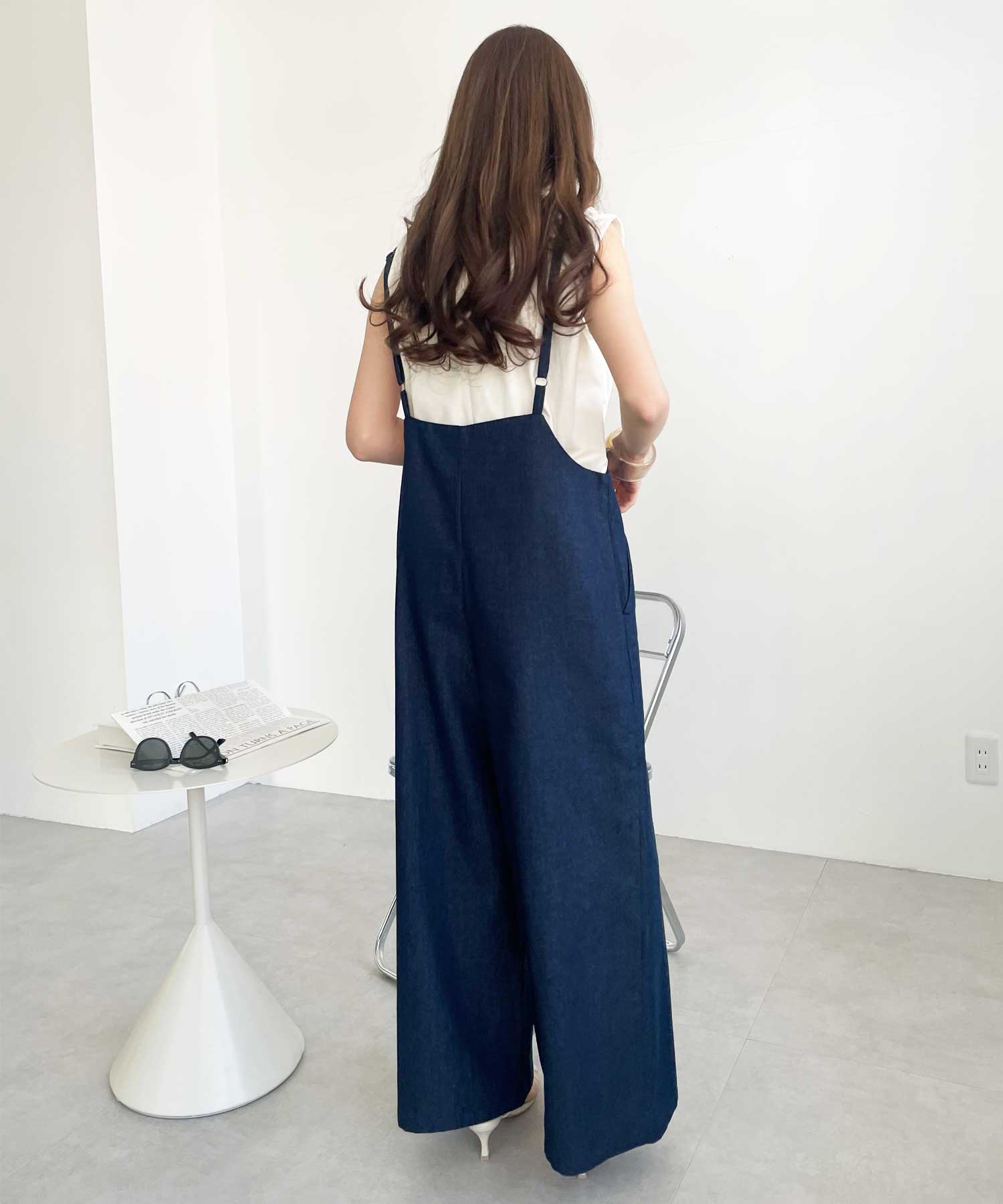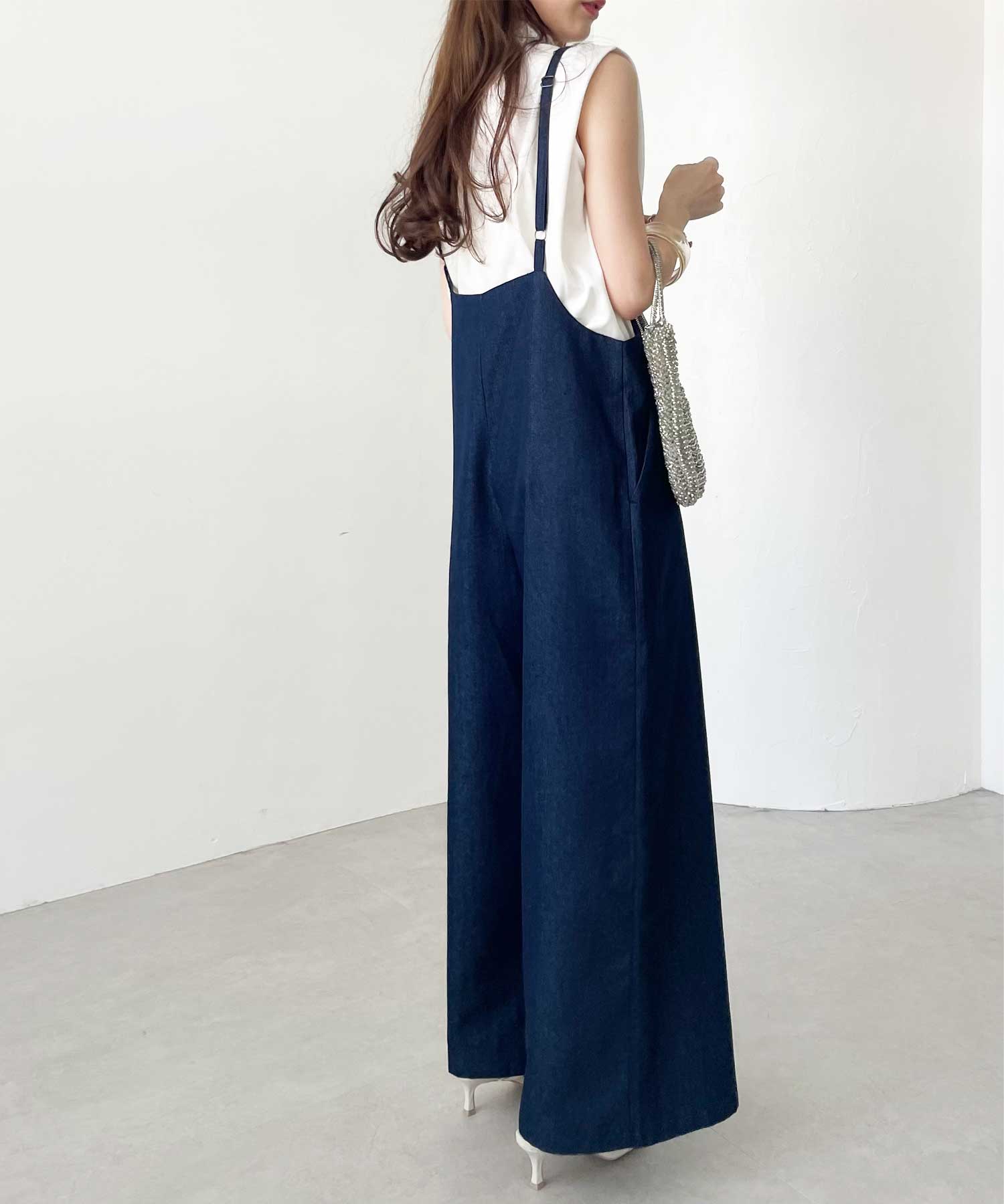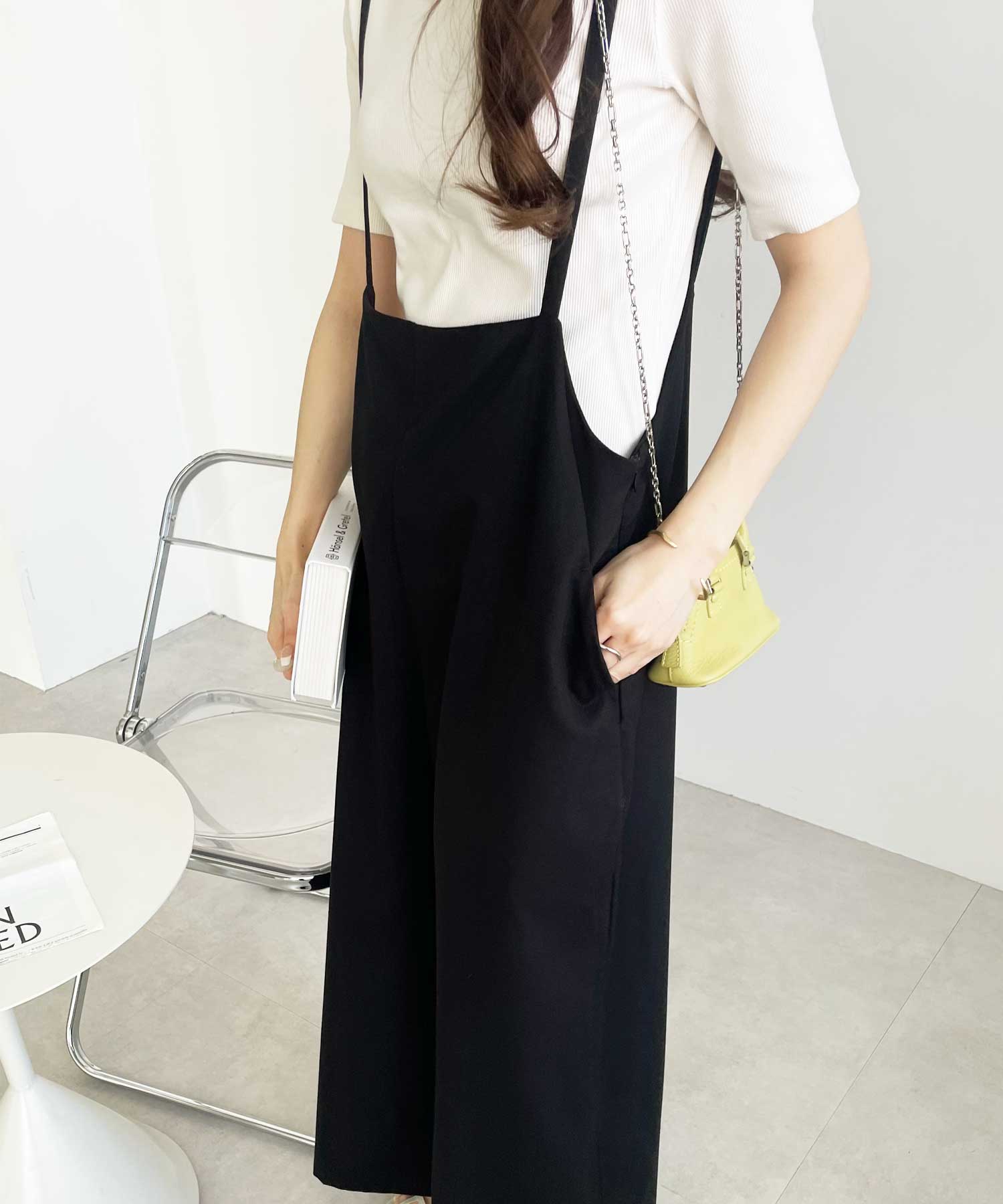 トップス次第で簡単に大人っぽいコーデを叶える、サロペットワイドパンツ。