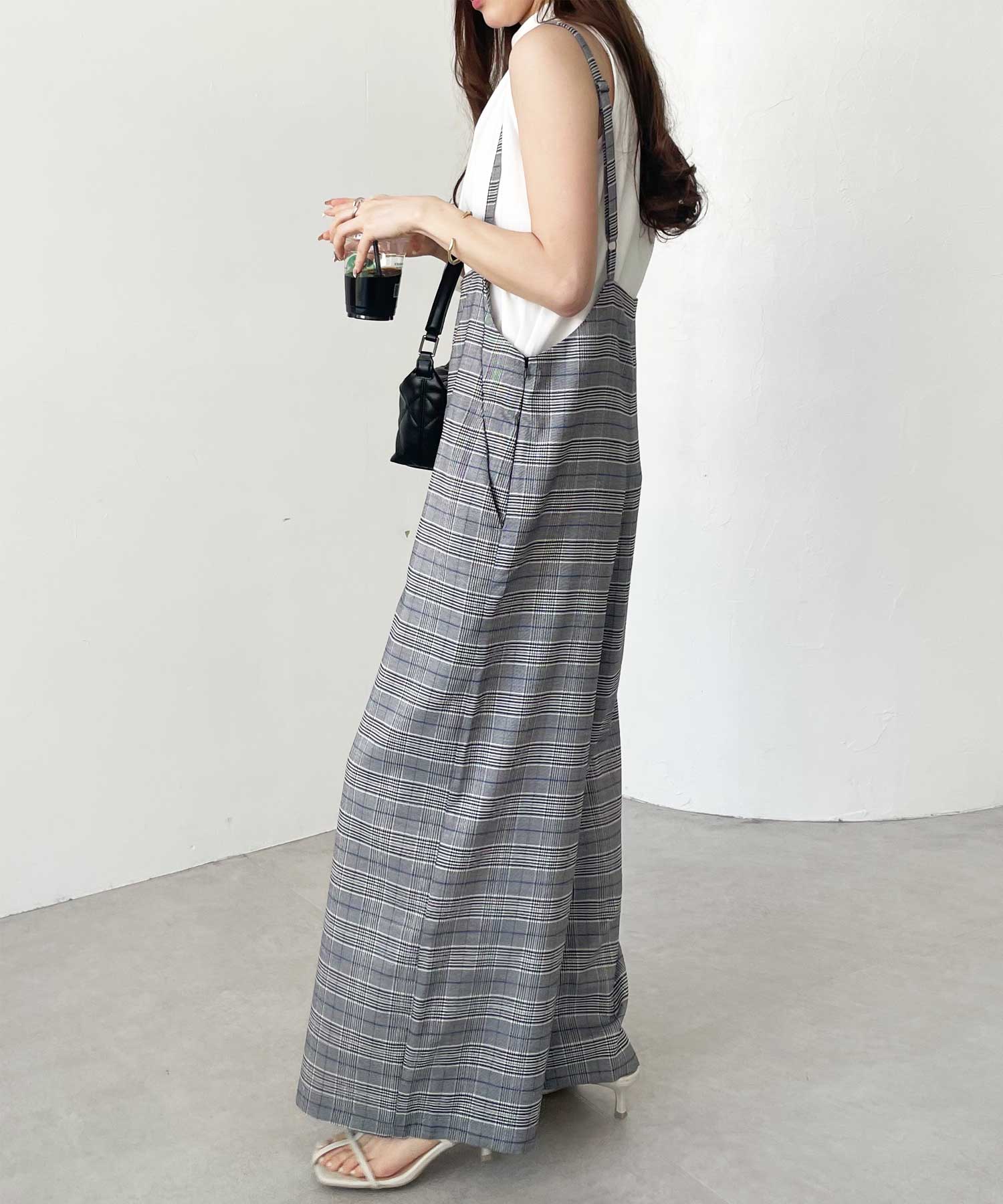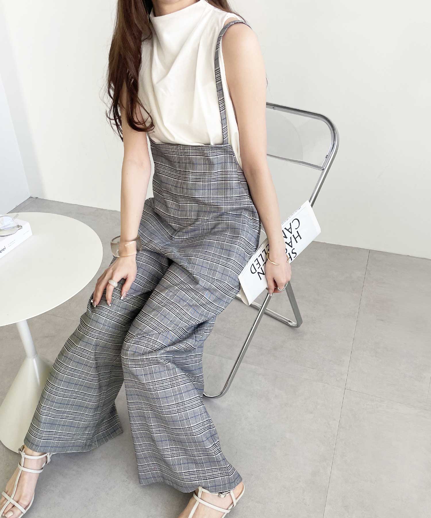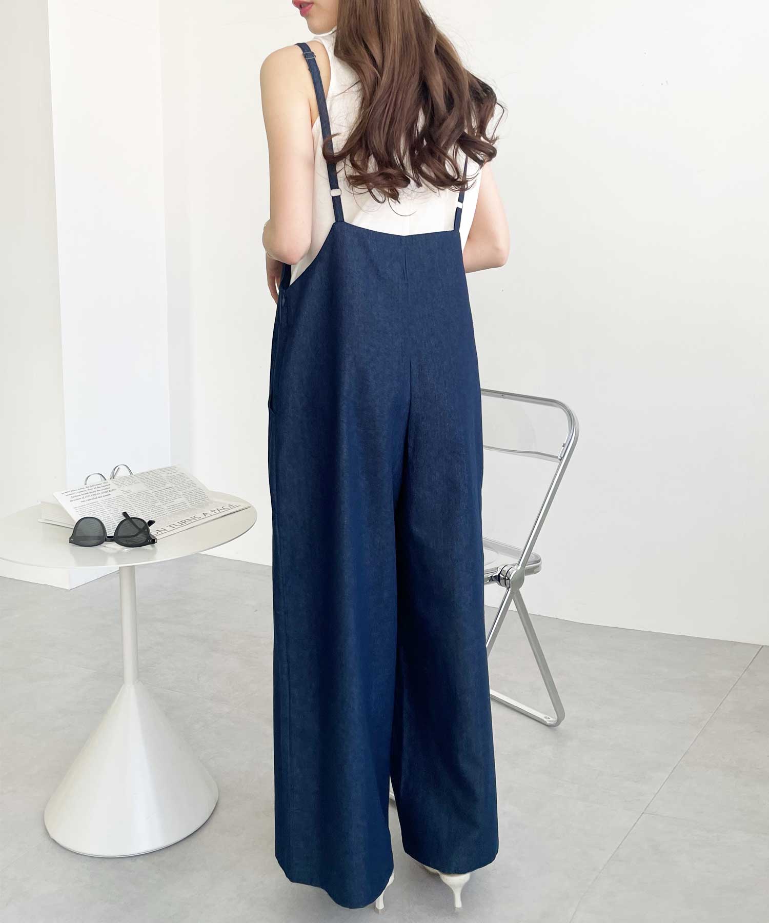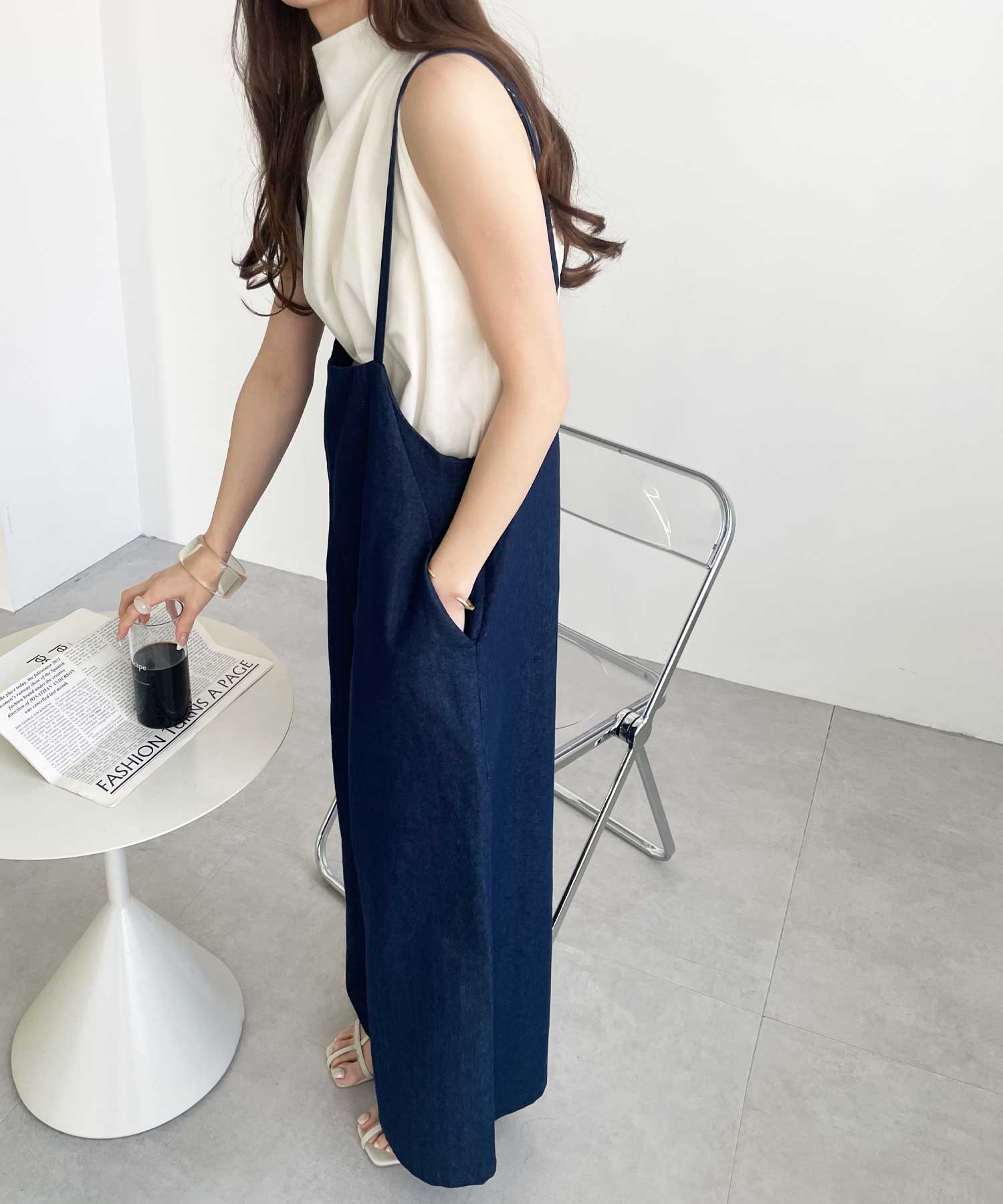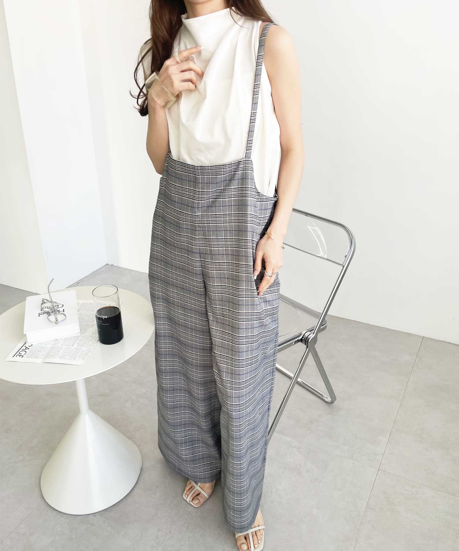 トップス次第で簡単に大人っぽいコーデを叶える、サロペットワイドパンツ。