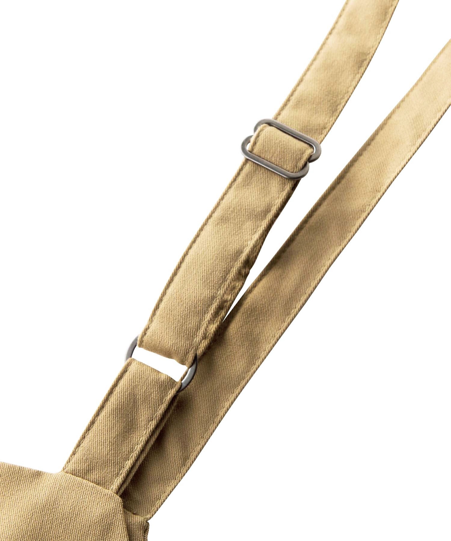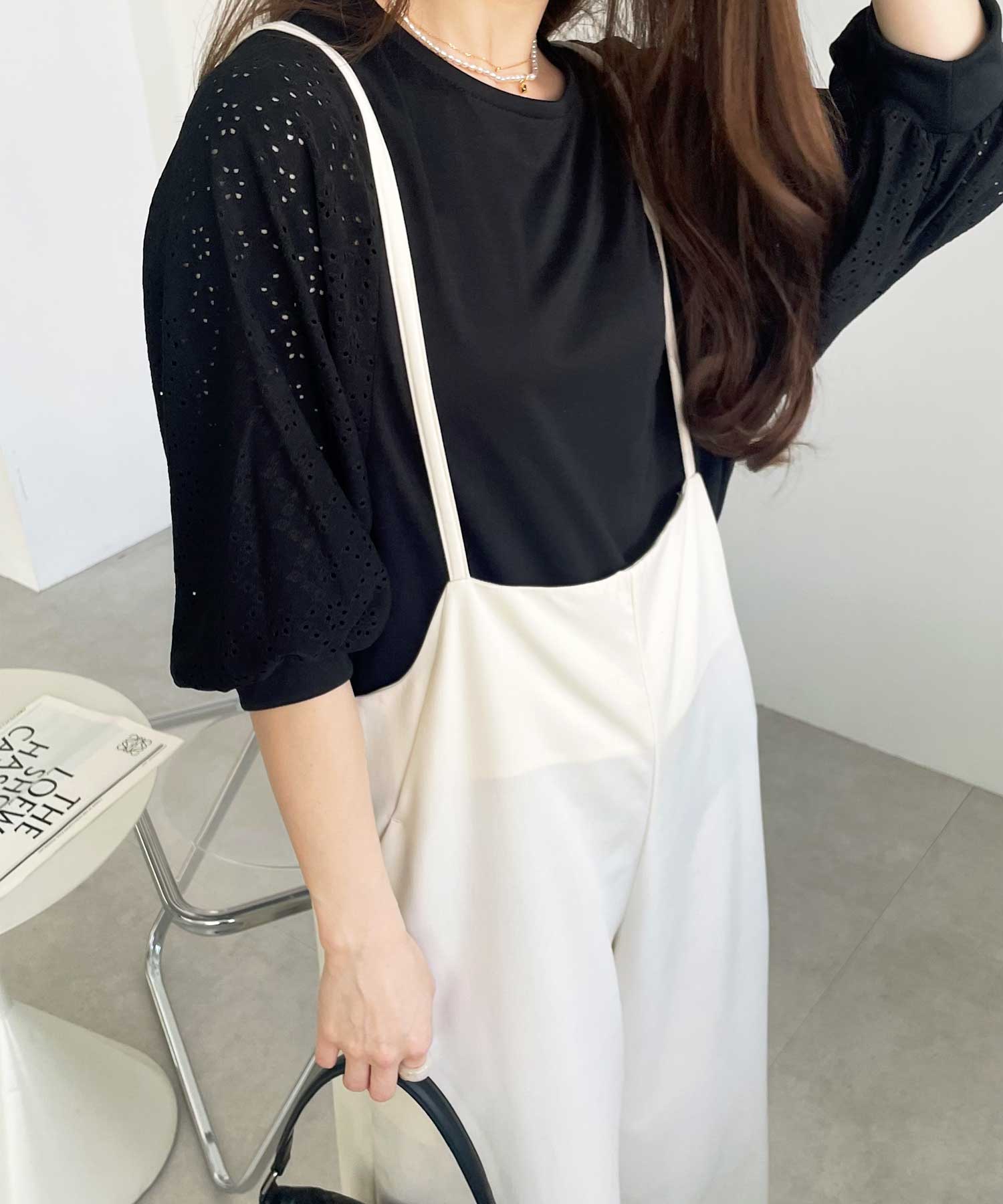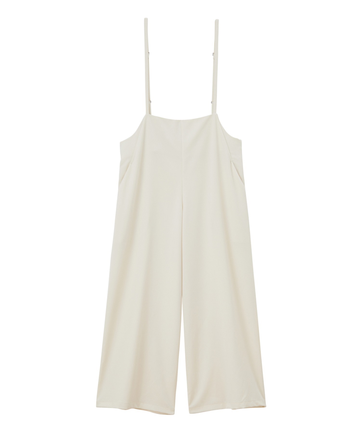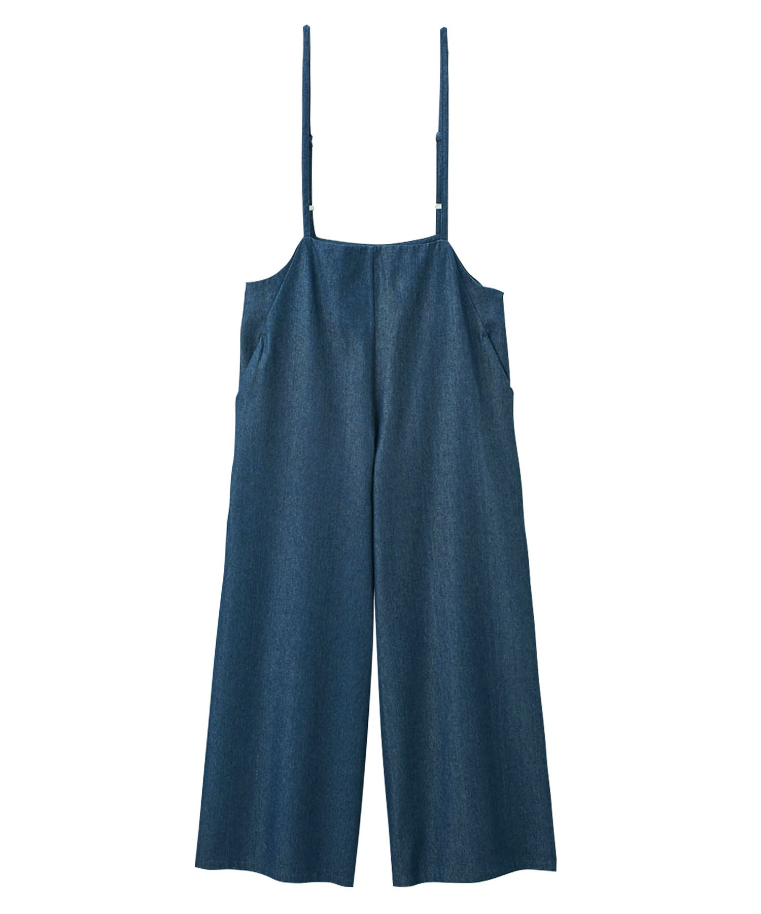 細めの肩紐と、低めの切替位置だから、サロペットでも大人っぽいきれいめな印象に。