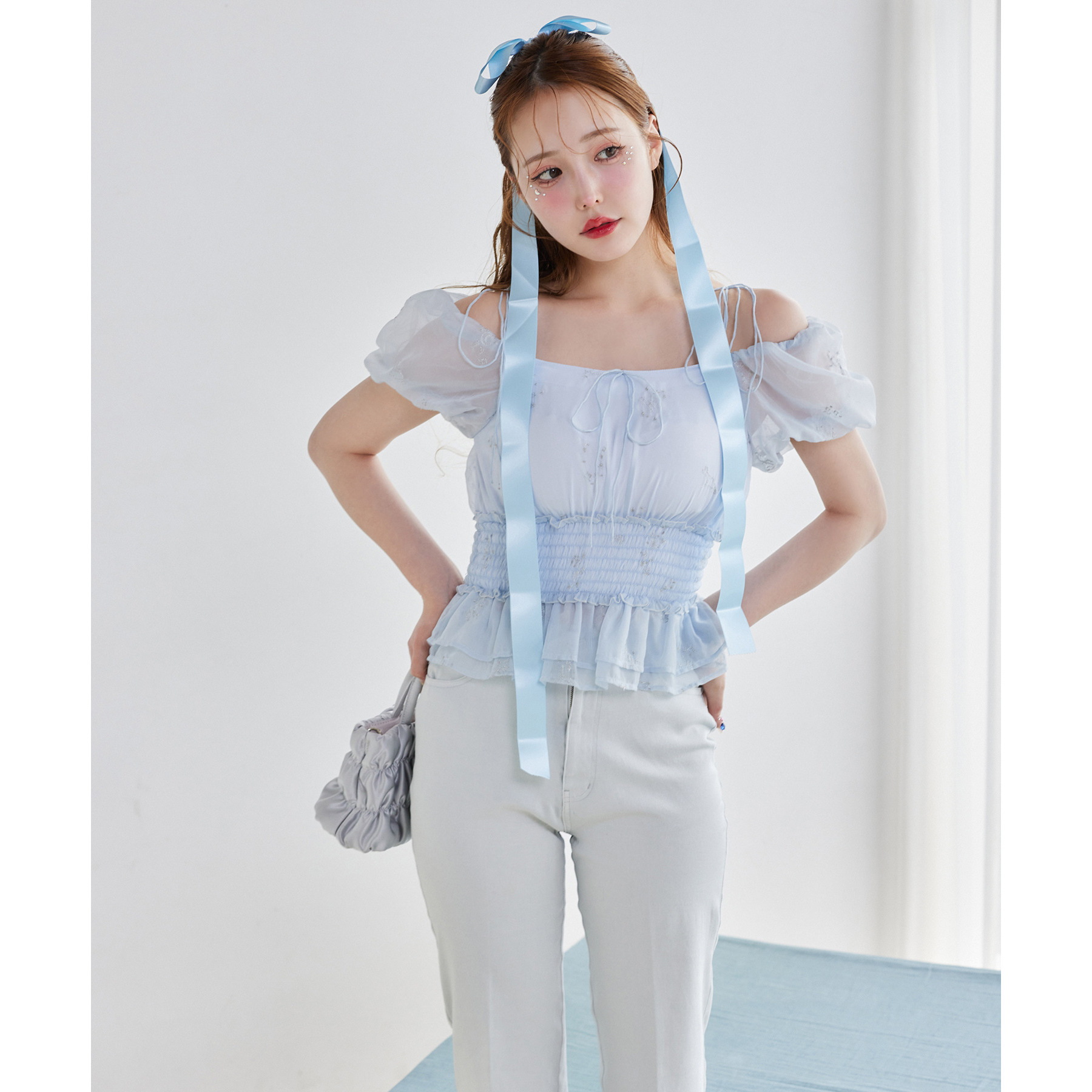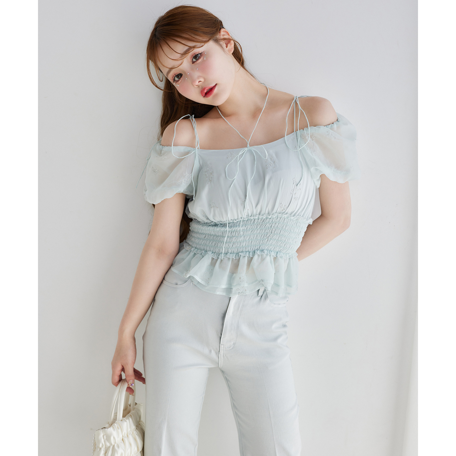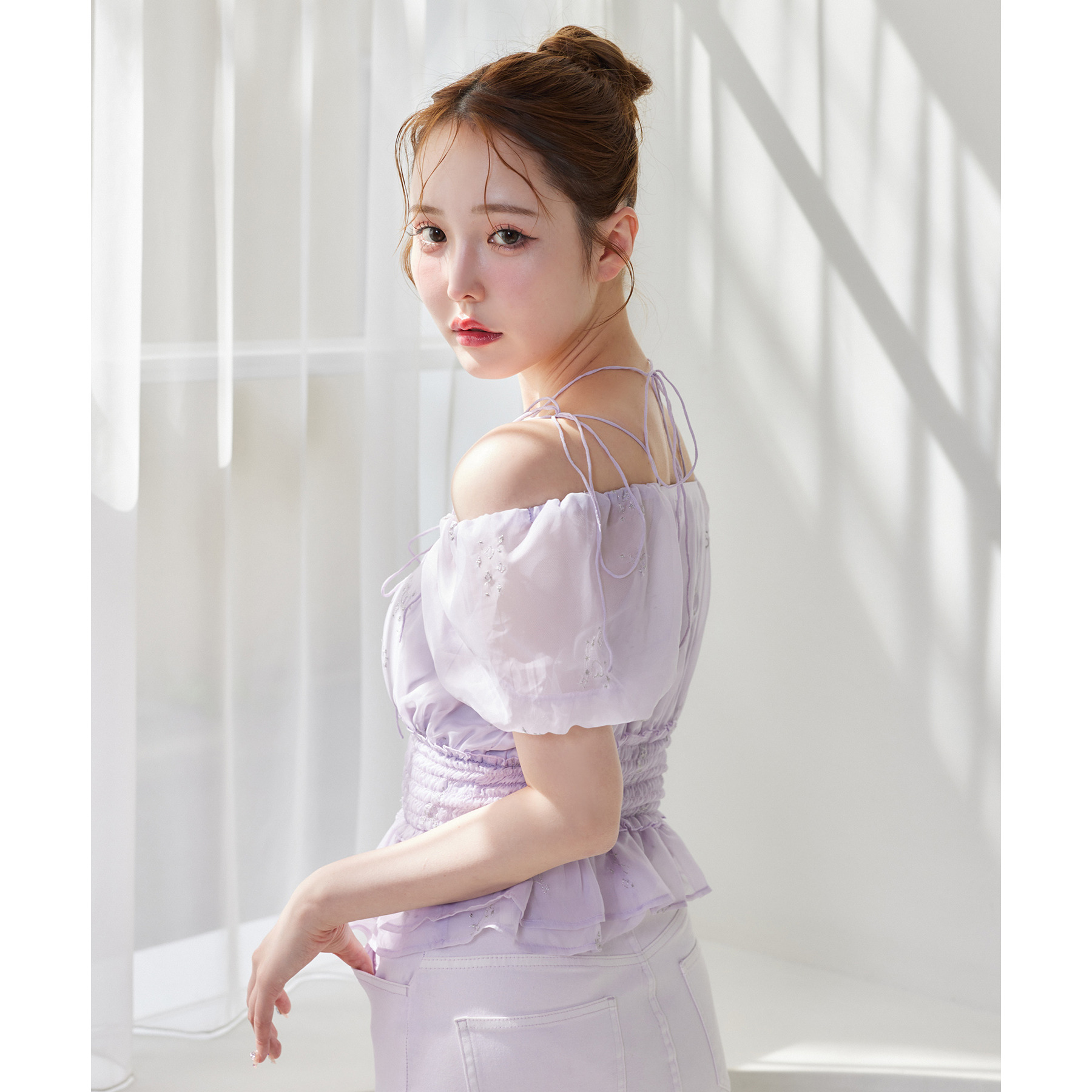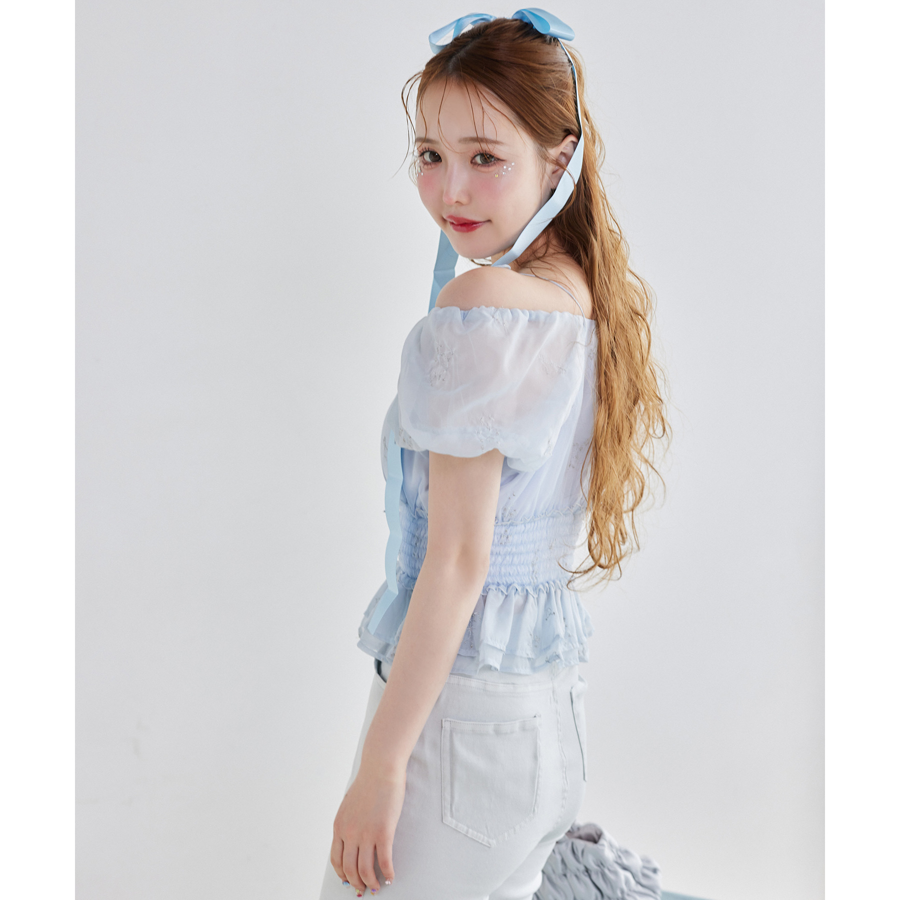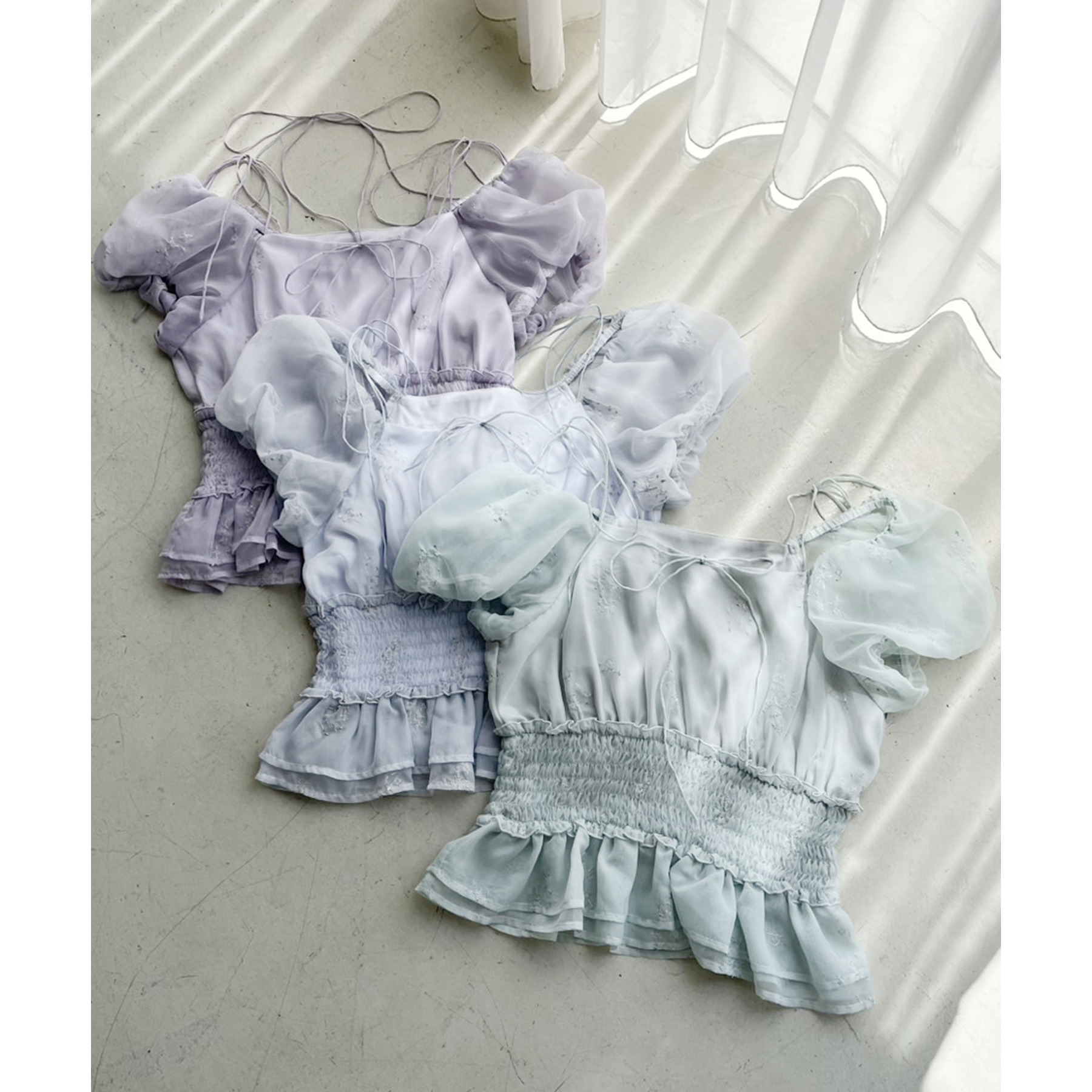 繊細な透け感が女性らしさを引き立てるシアーブラウス。