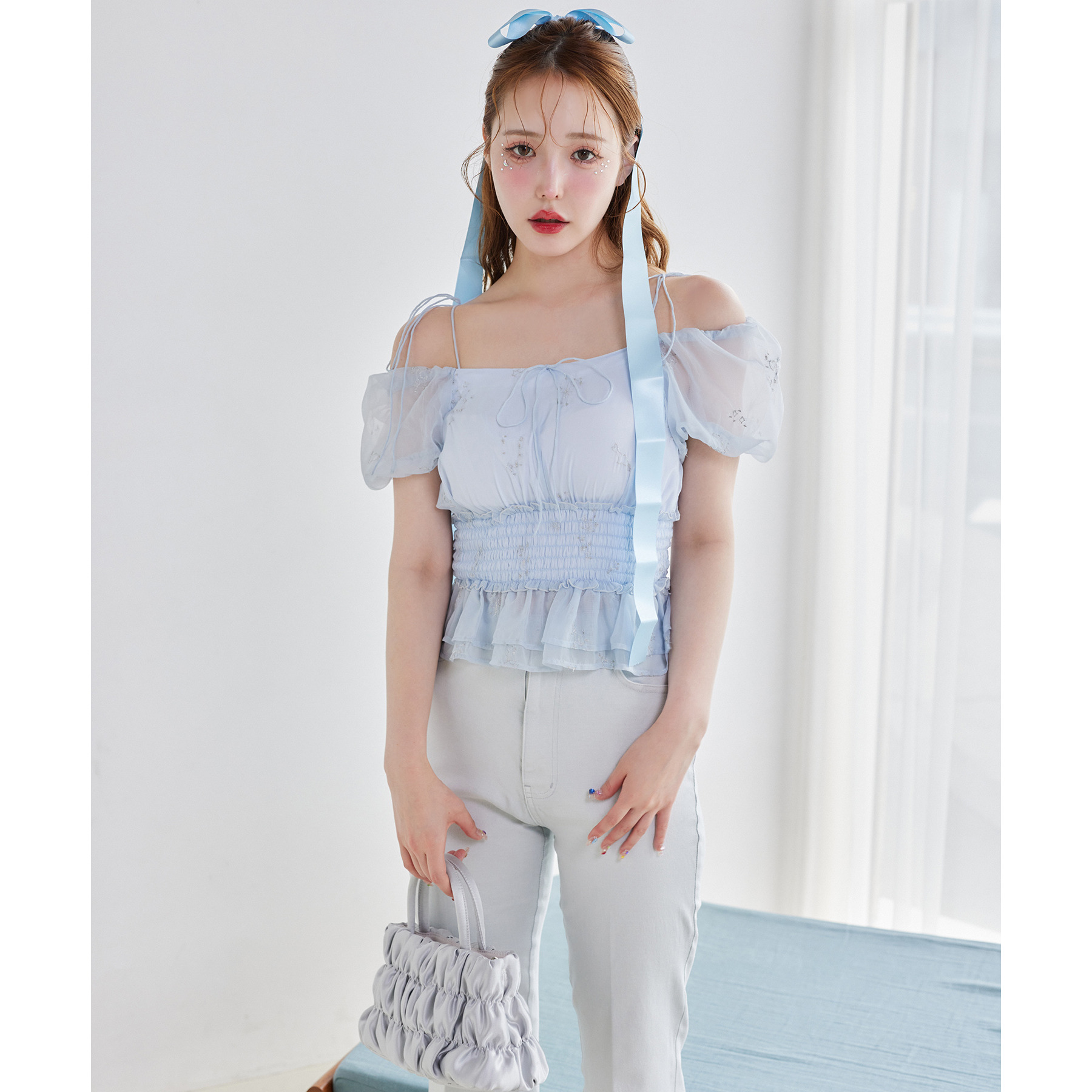 肩部分はゴム仕様になっていて、オフショルダーとしても着られる2WAY仕様。