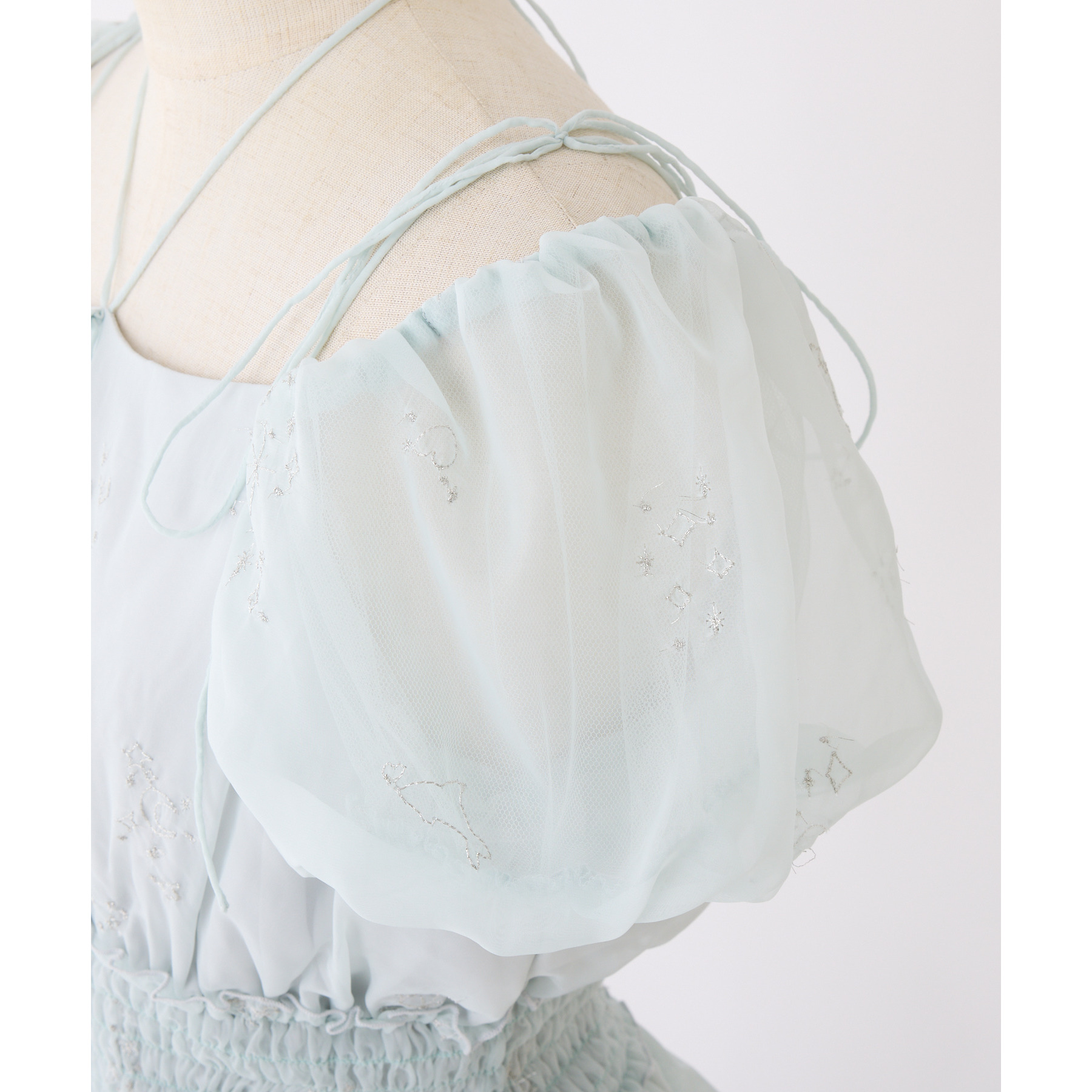 全体にちりばめられたオリジナルの星座刺繍がロマンティックなムードを演出してくれます。
