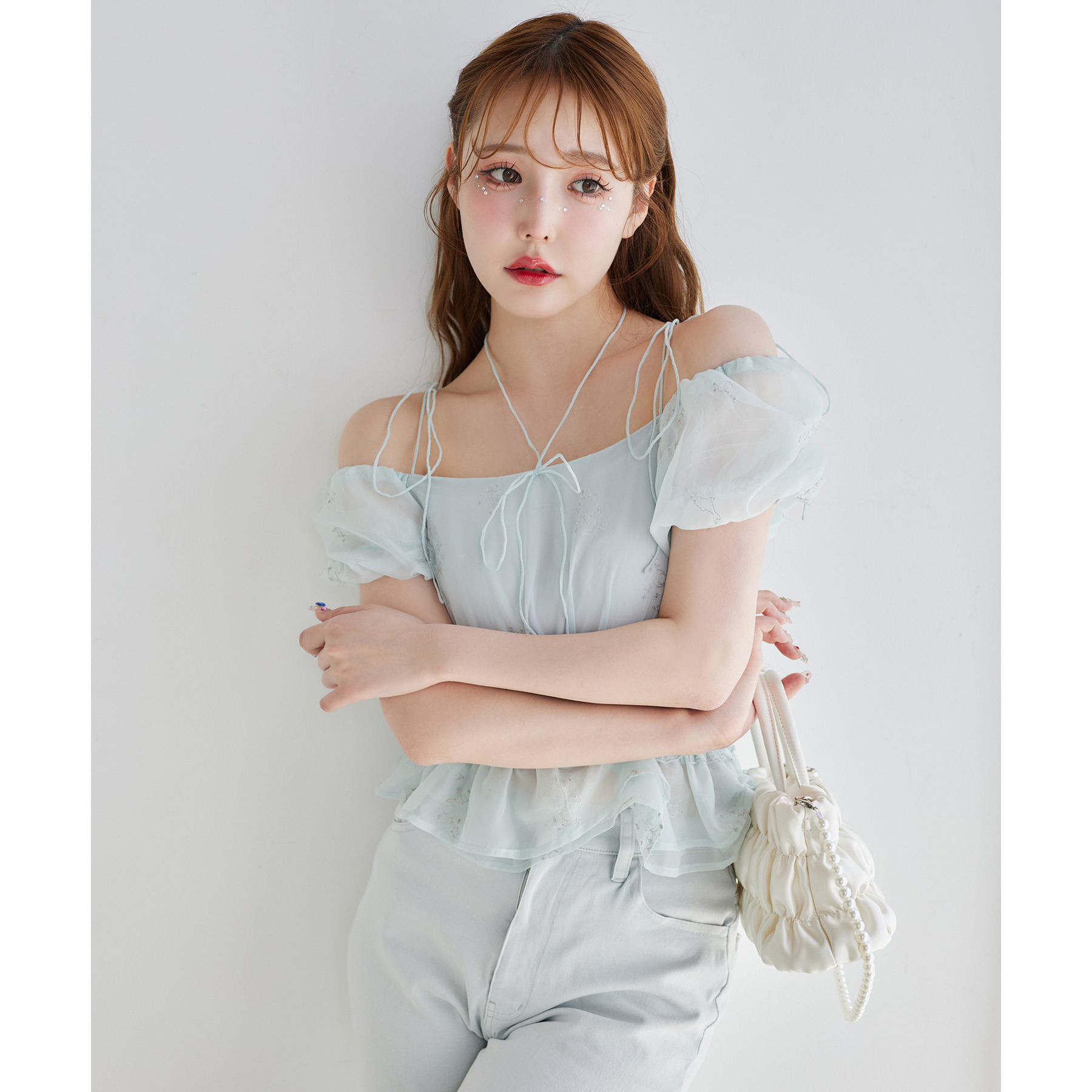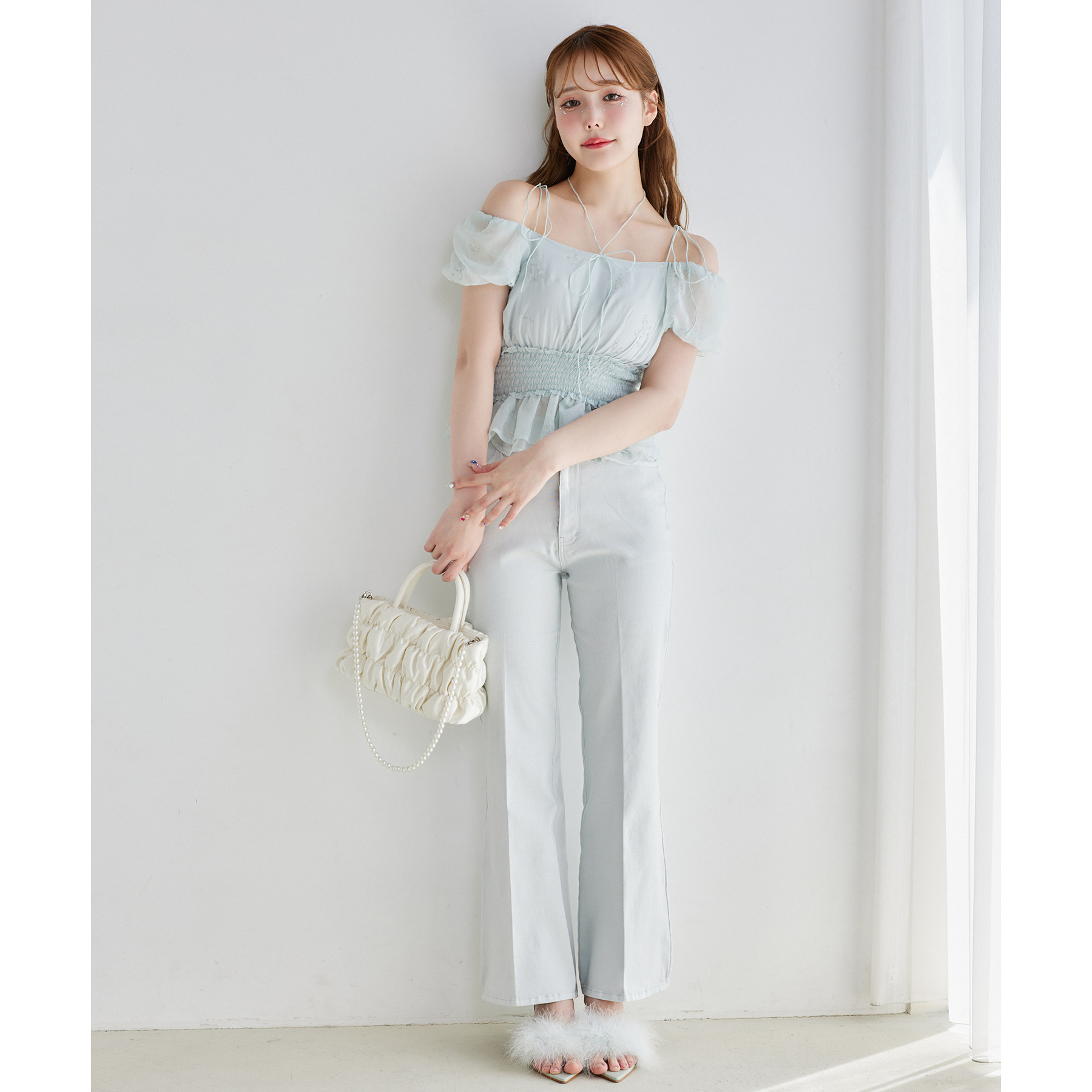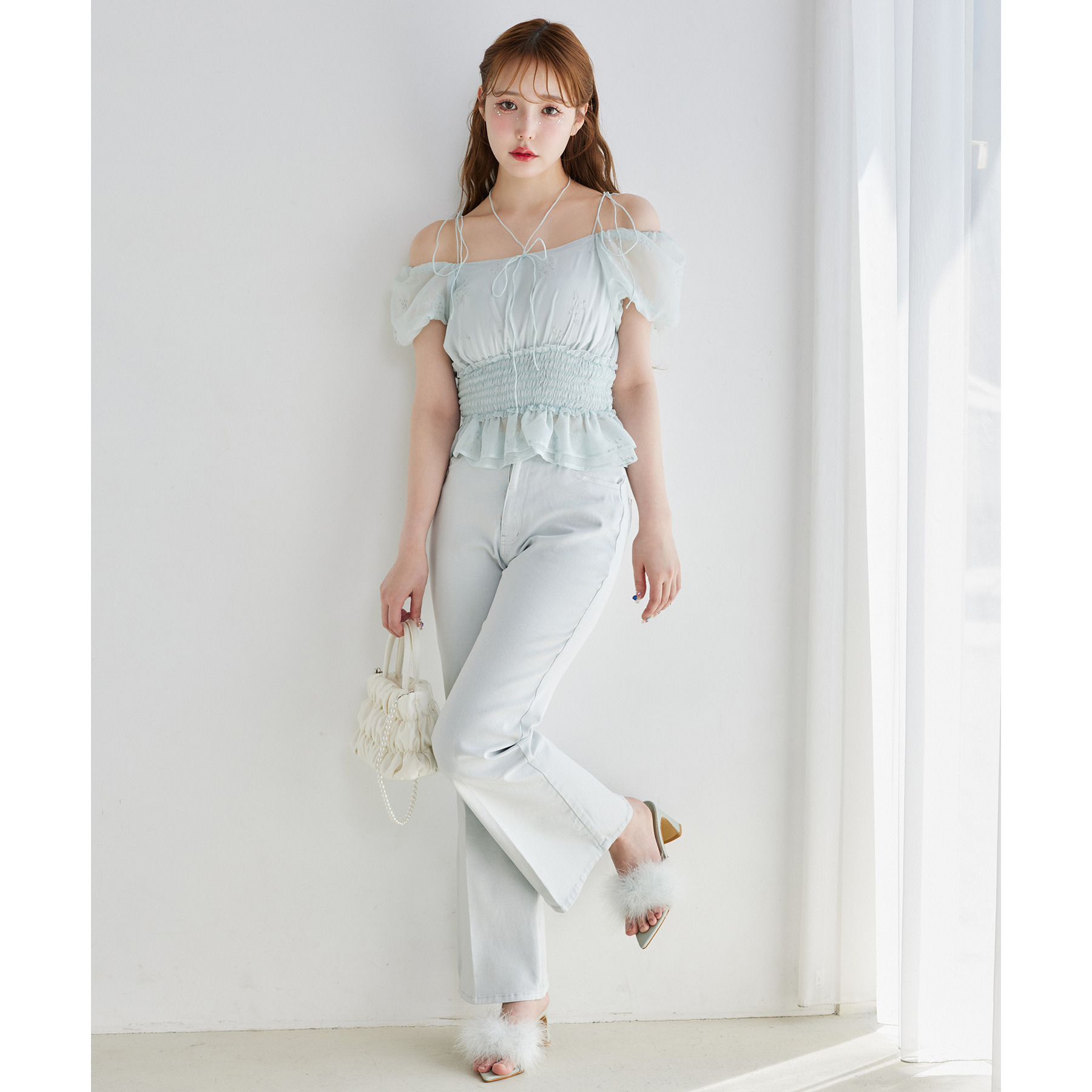 オフショルで着て、華奢なアクセサリーを合わせるとフェミニン度がさらにアップします♪