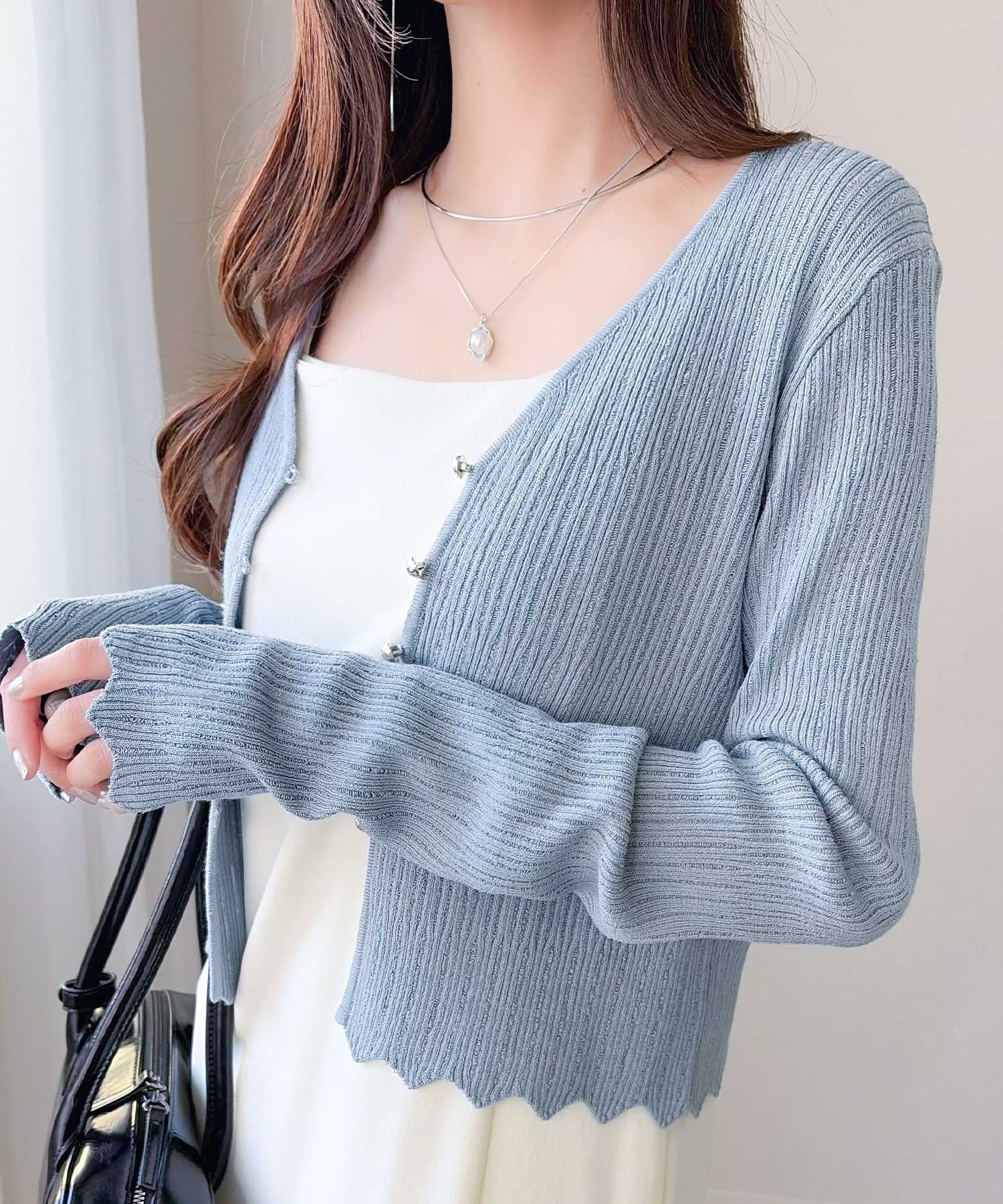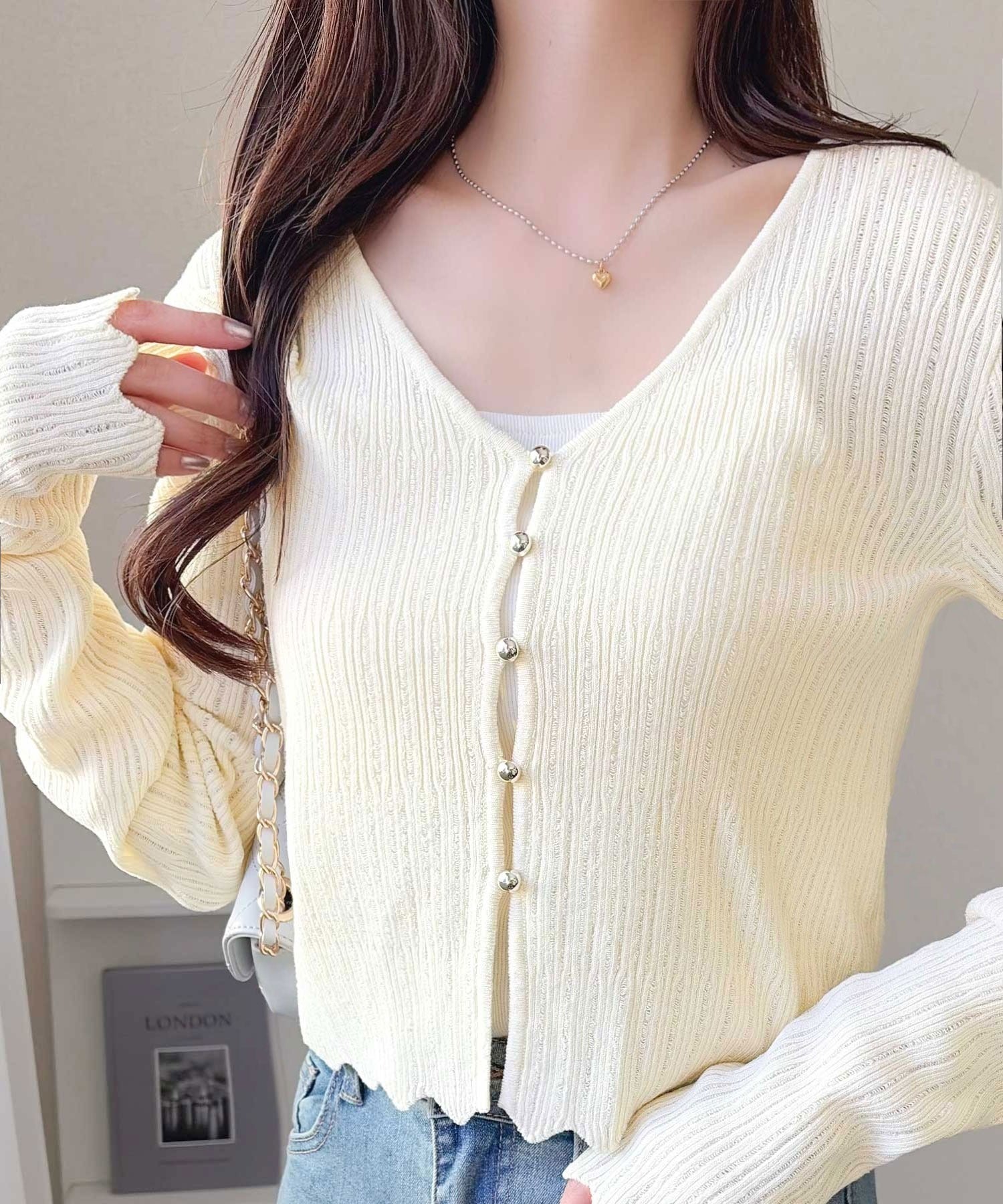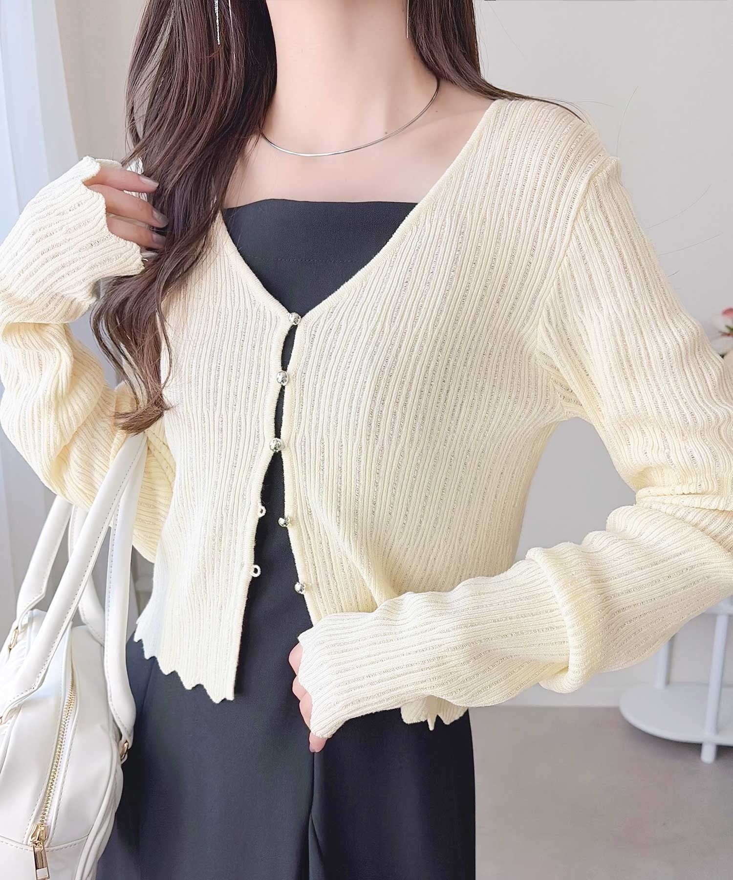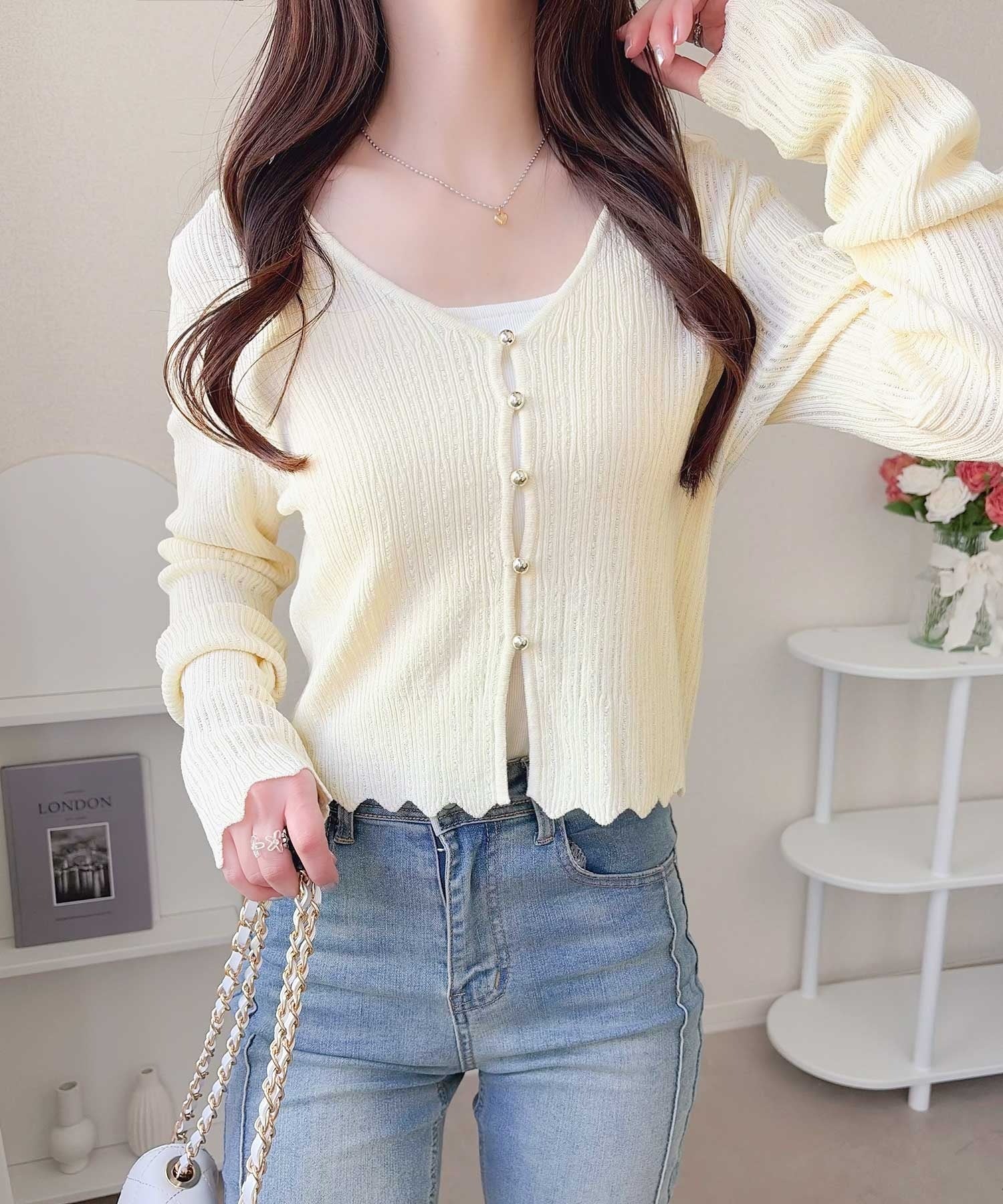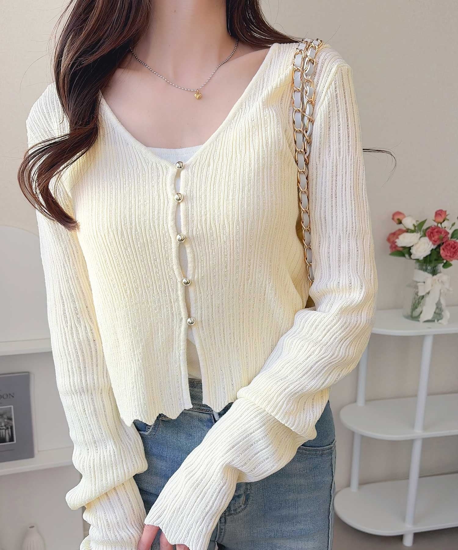 軽やかさと上品さを兼ね備えたカーディガン。