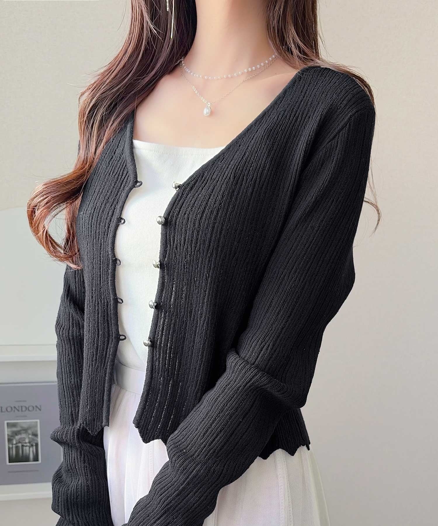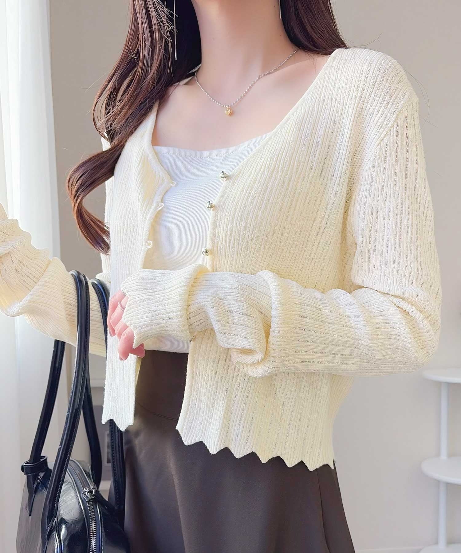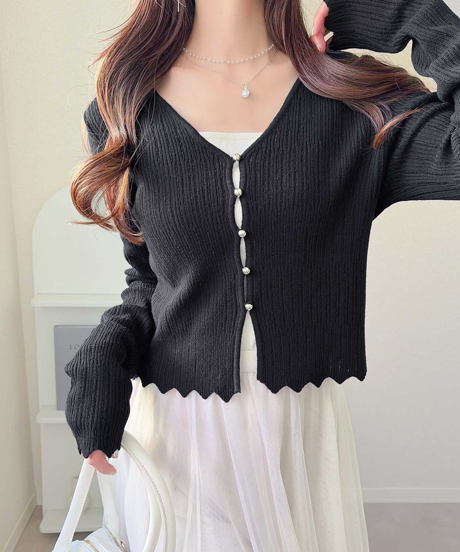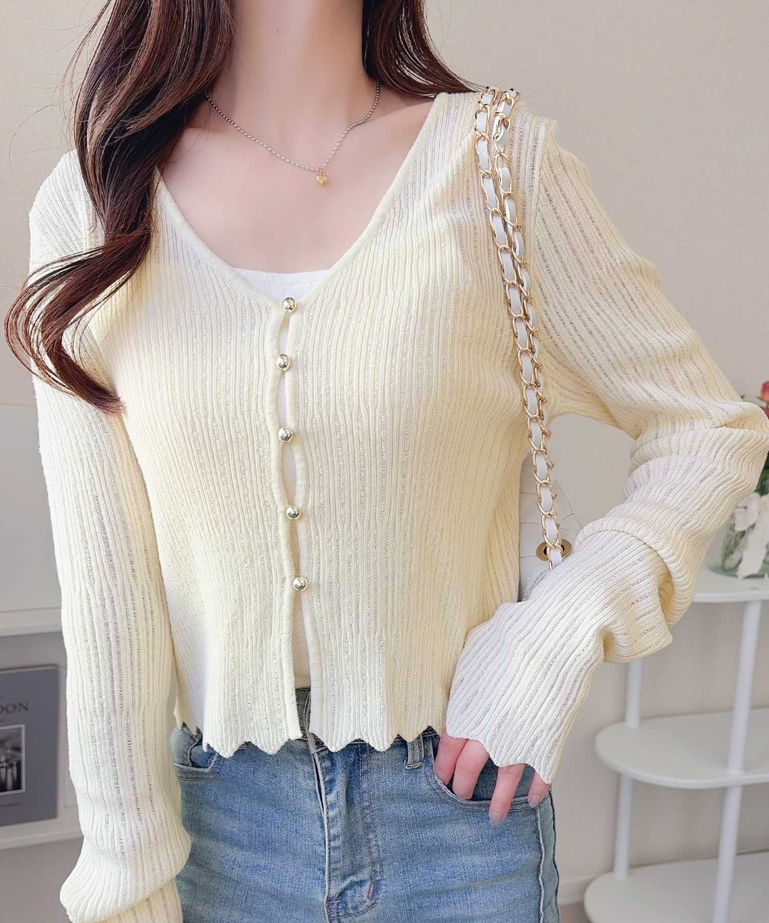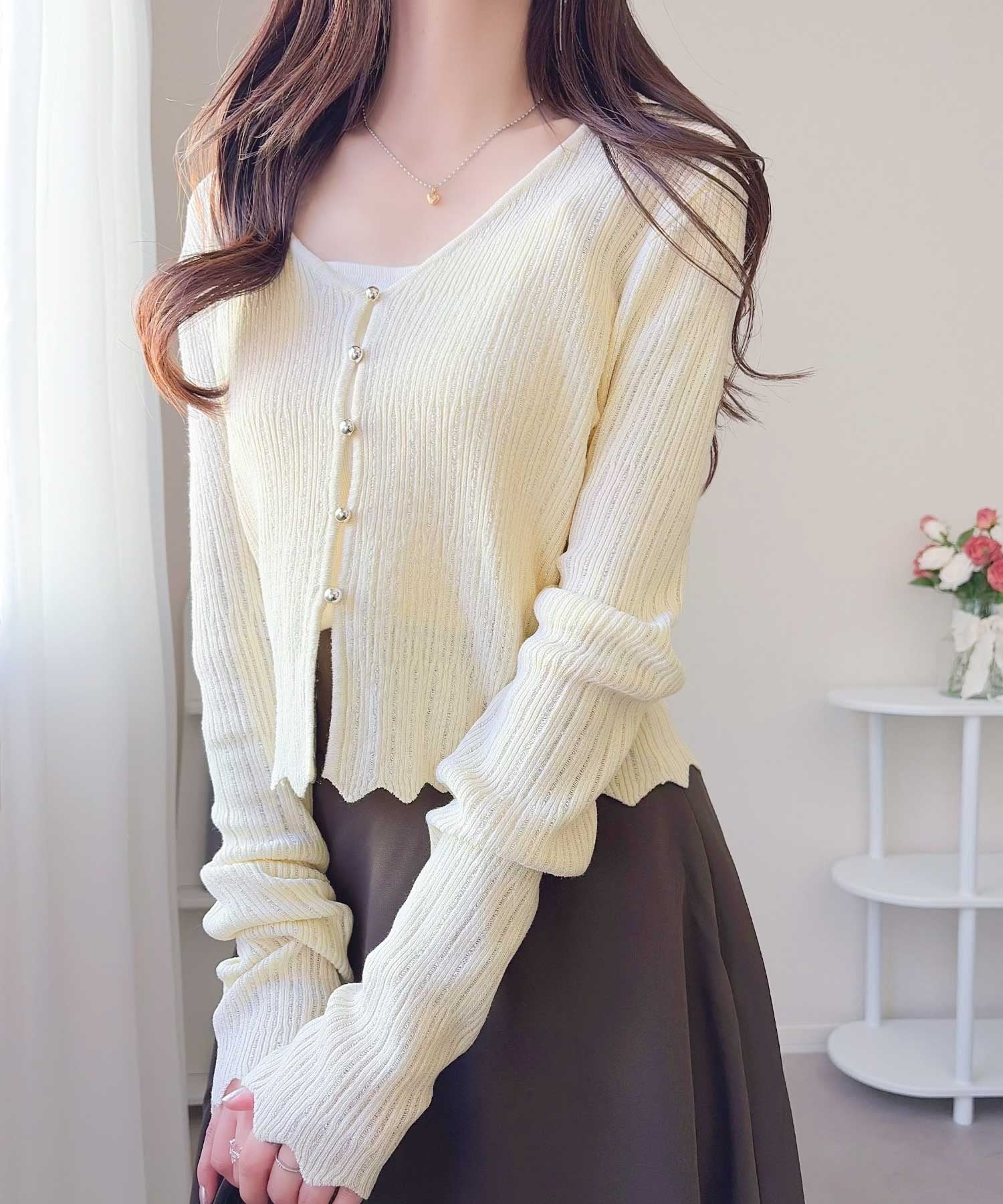 軽やかさと上品さを兼ね備えたカーディガン。