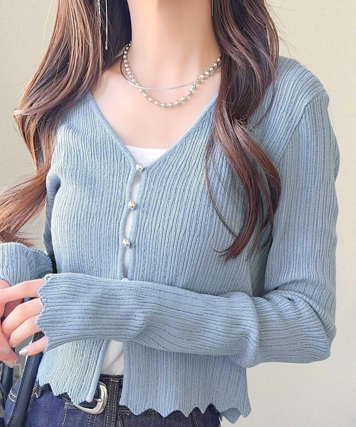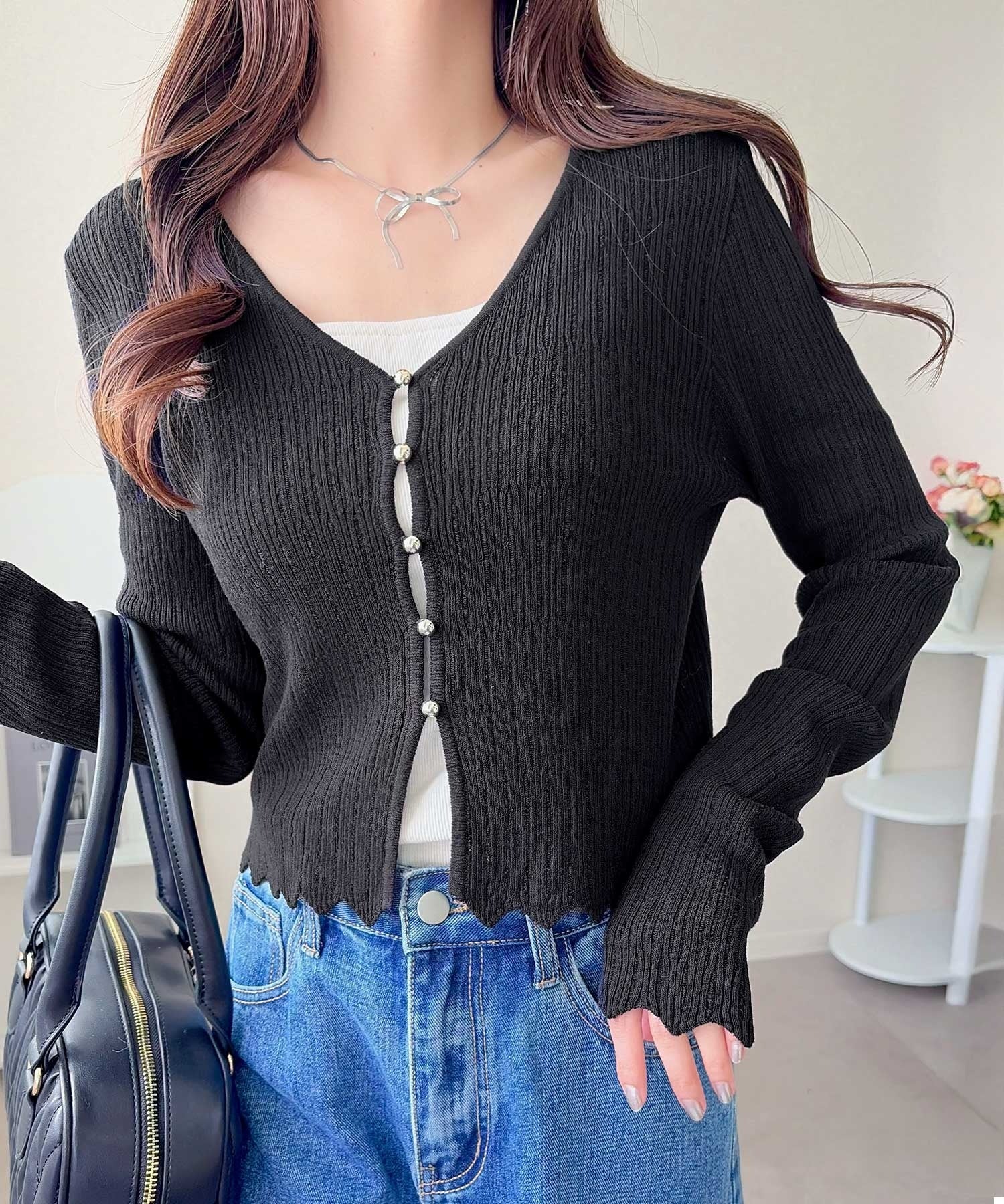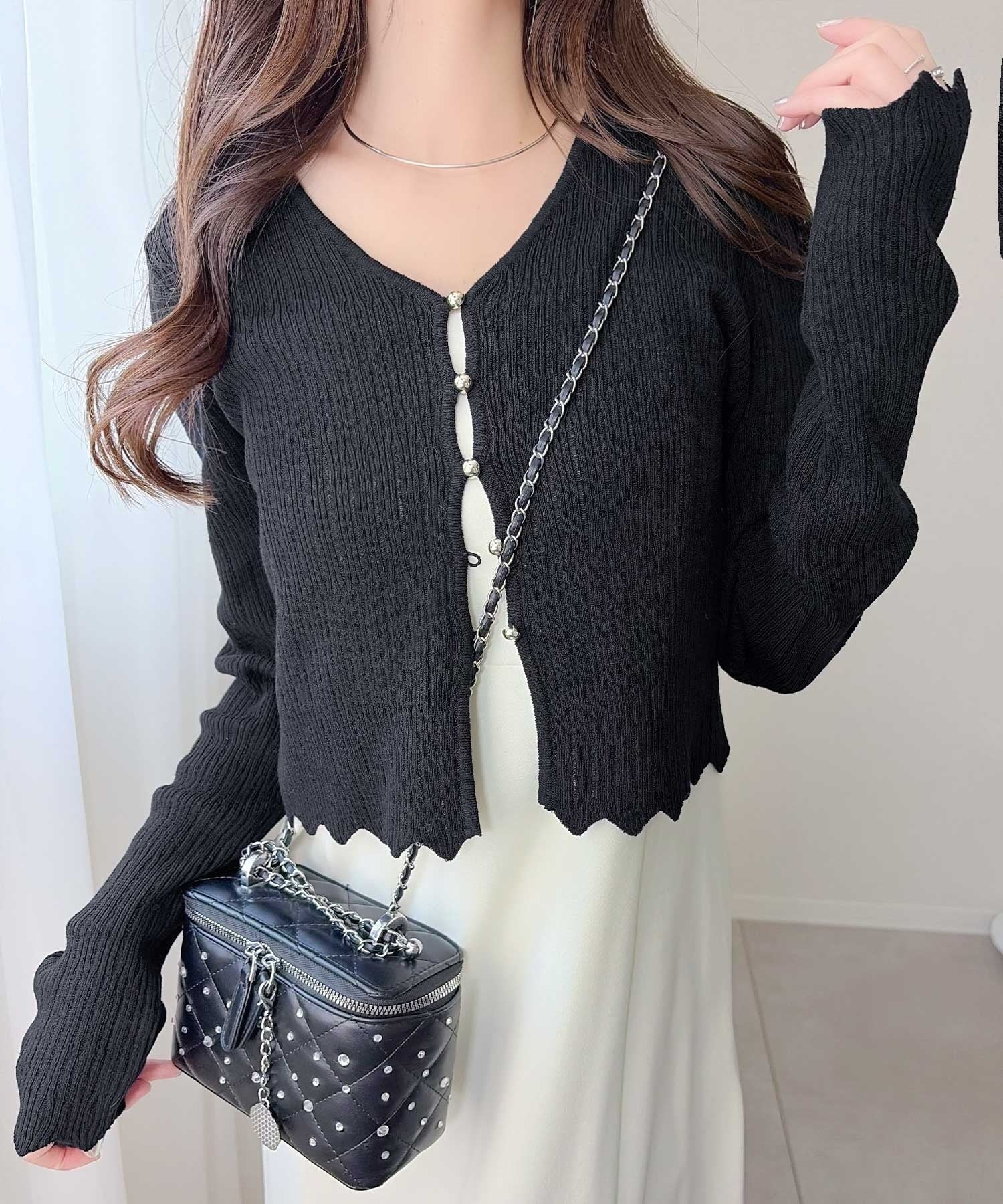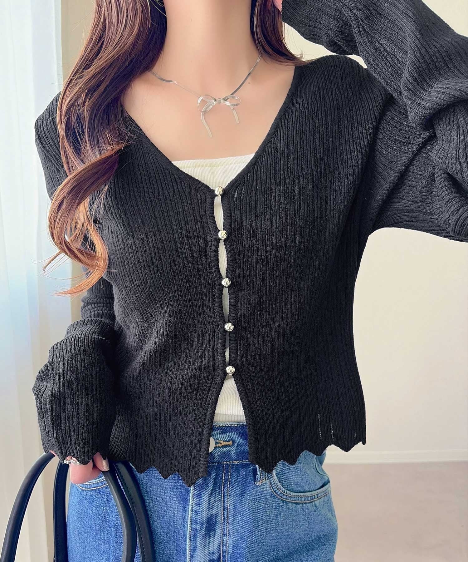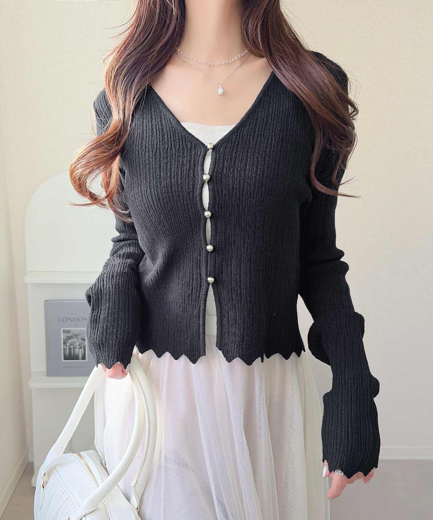 軽やかさと上品さを兼ね備えたカーディガン。