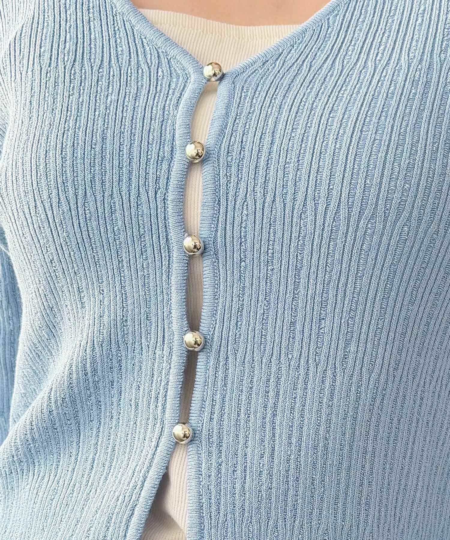 【mily bilet】透け感と上品なきらめきで魅せる♪ 透かし編みシルバーボタンカーディガン mi1359041