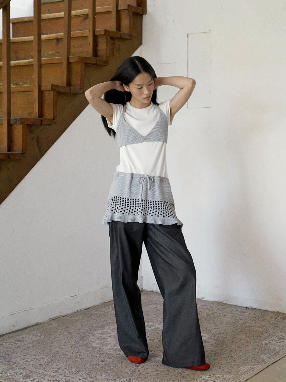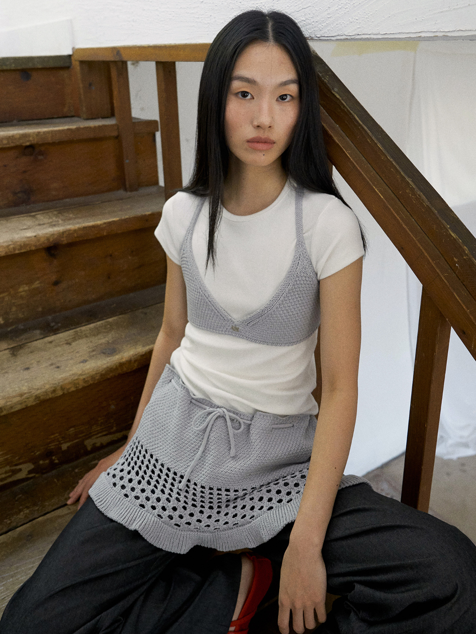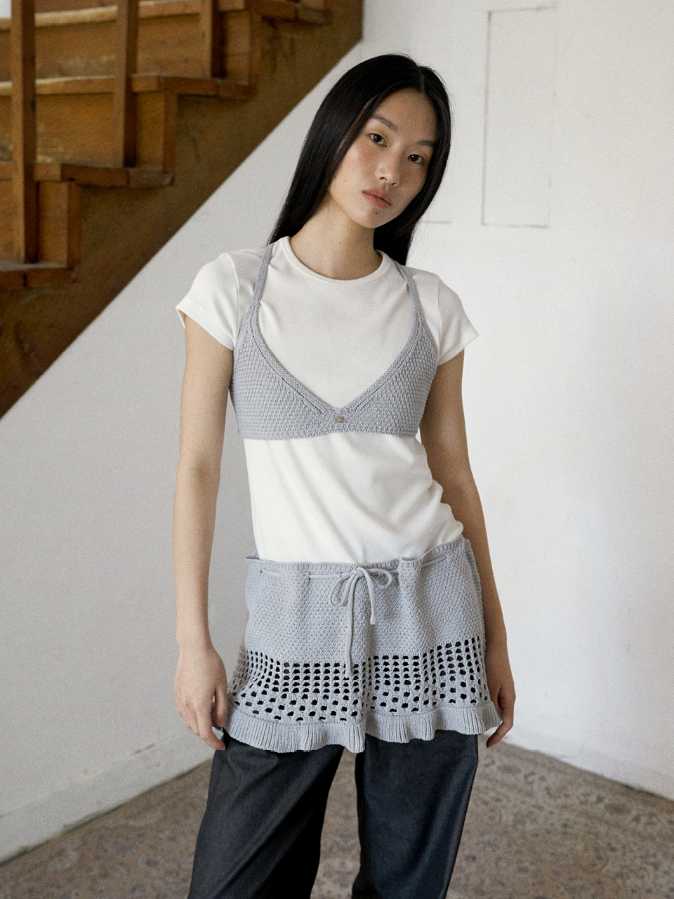 Crochet Ruffled Skirt Ash Blue