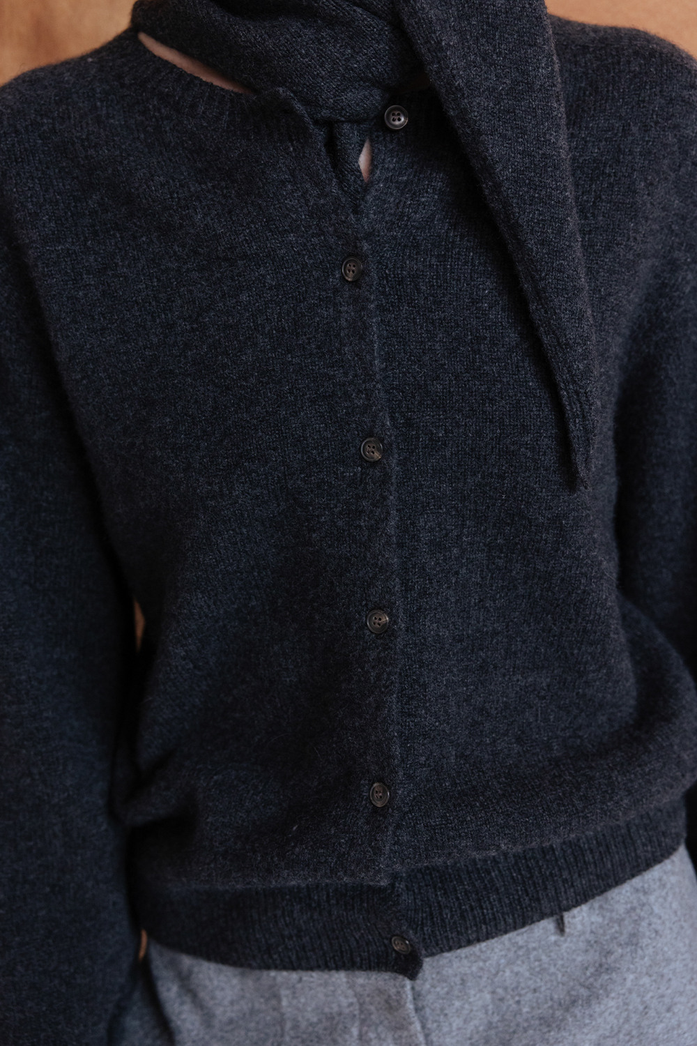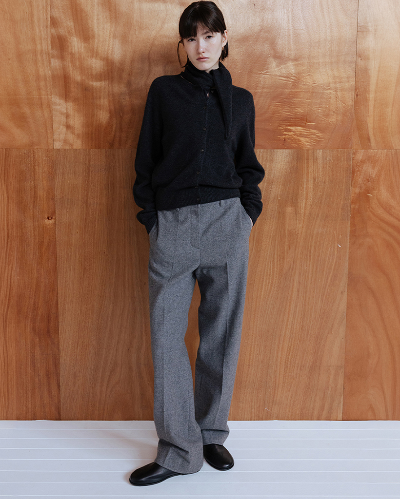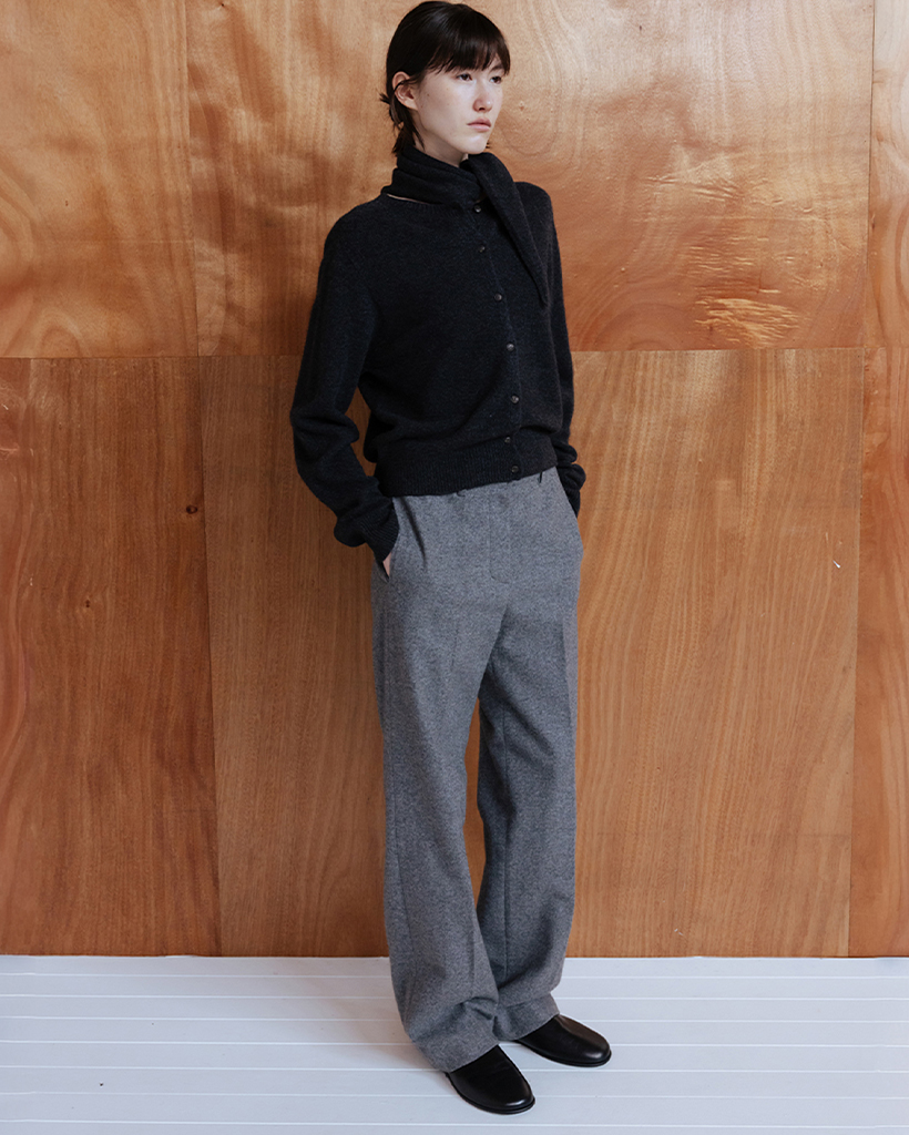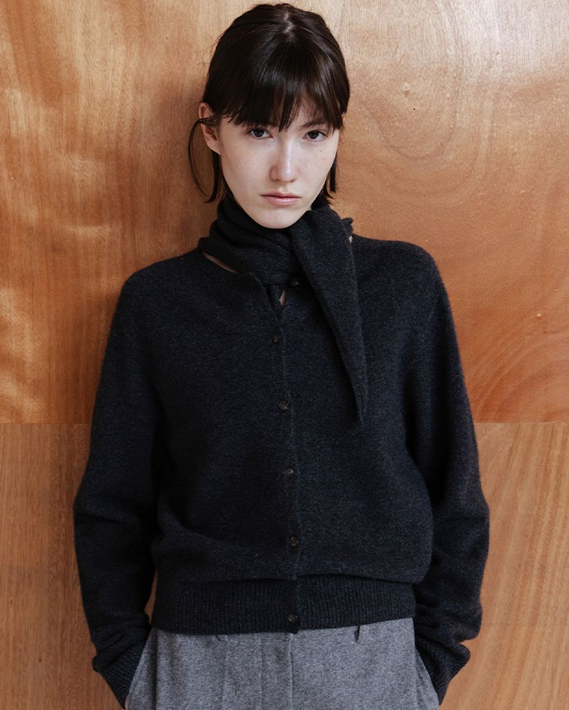 GEELONG WOOL SEAMLESS KNIT CARDIGAN - CHARCOAL