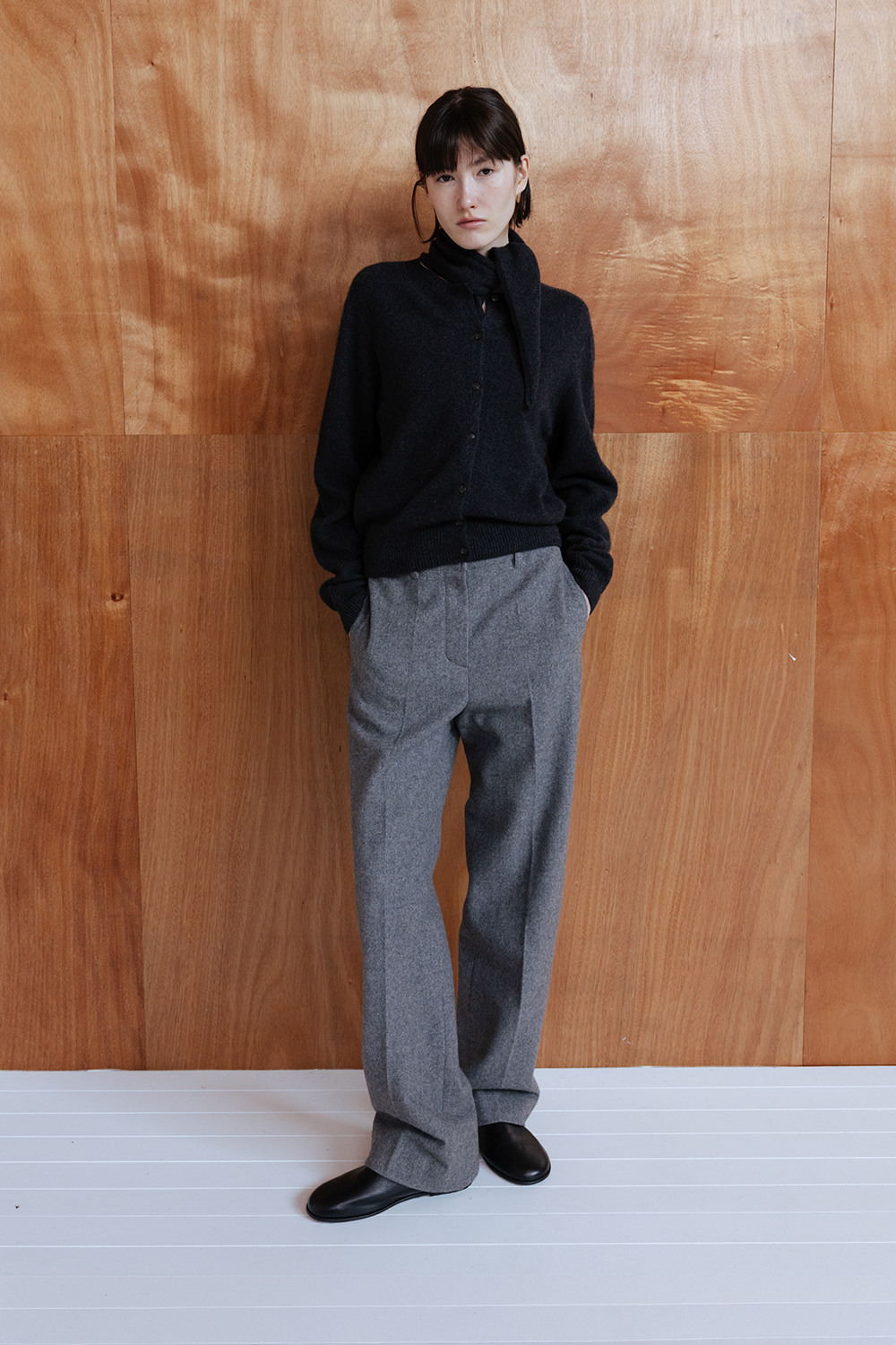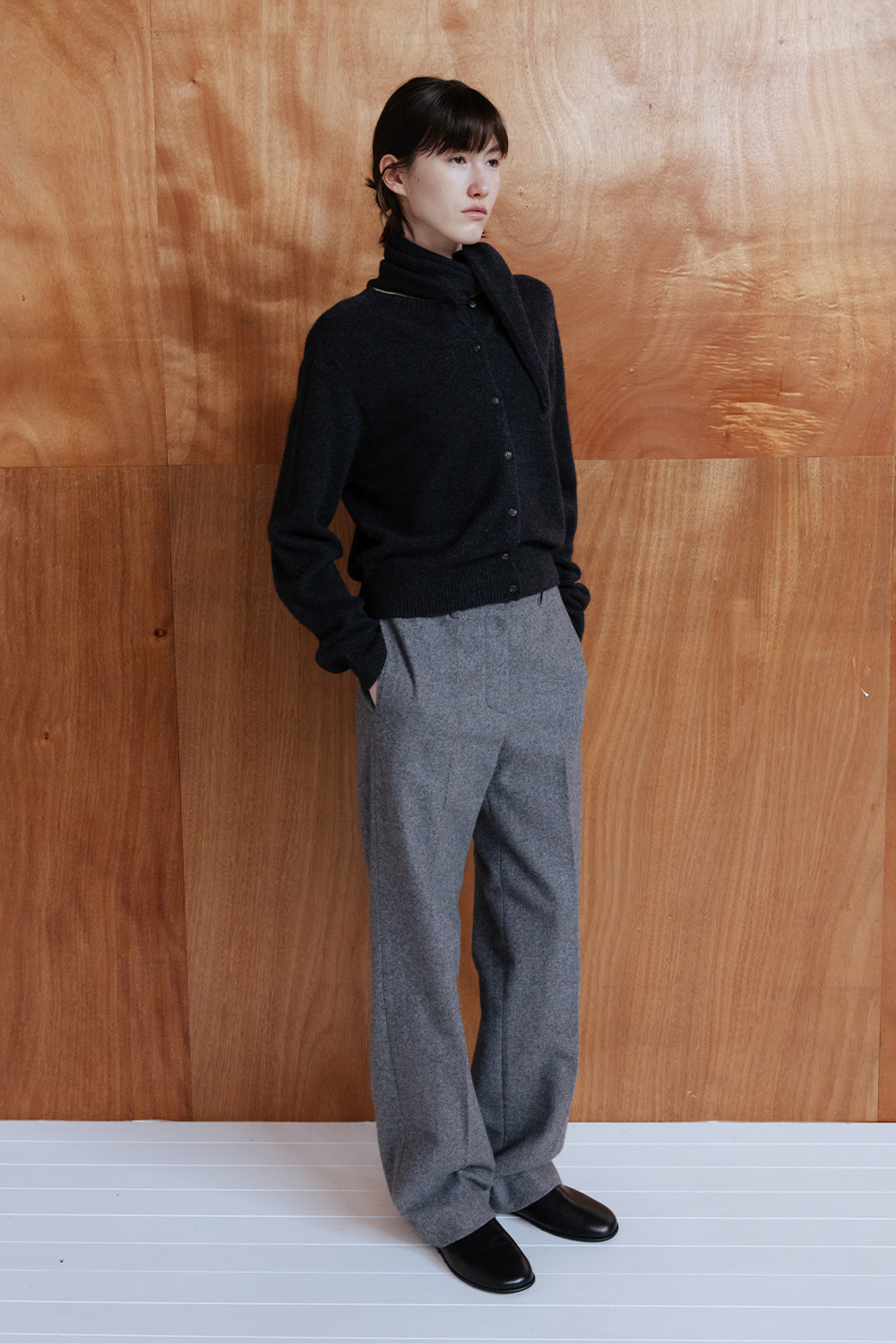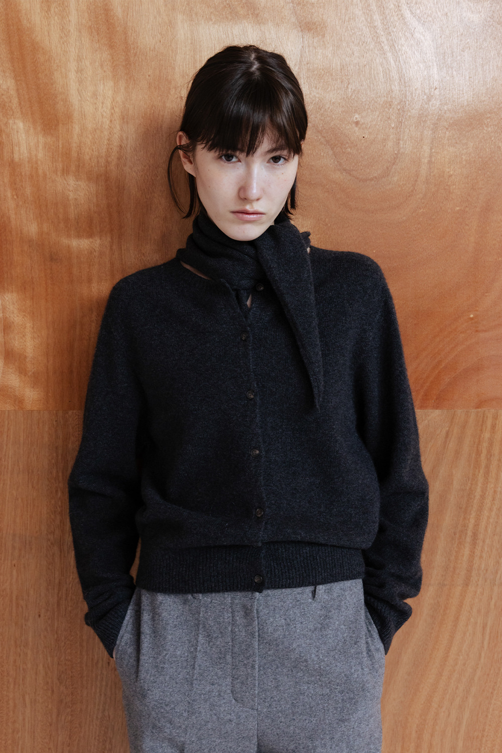 GEELONG WOOL SEAMLESS KNIT CARDIGAN - CHARCOAL
