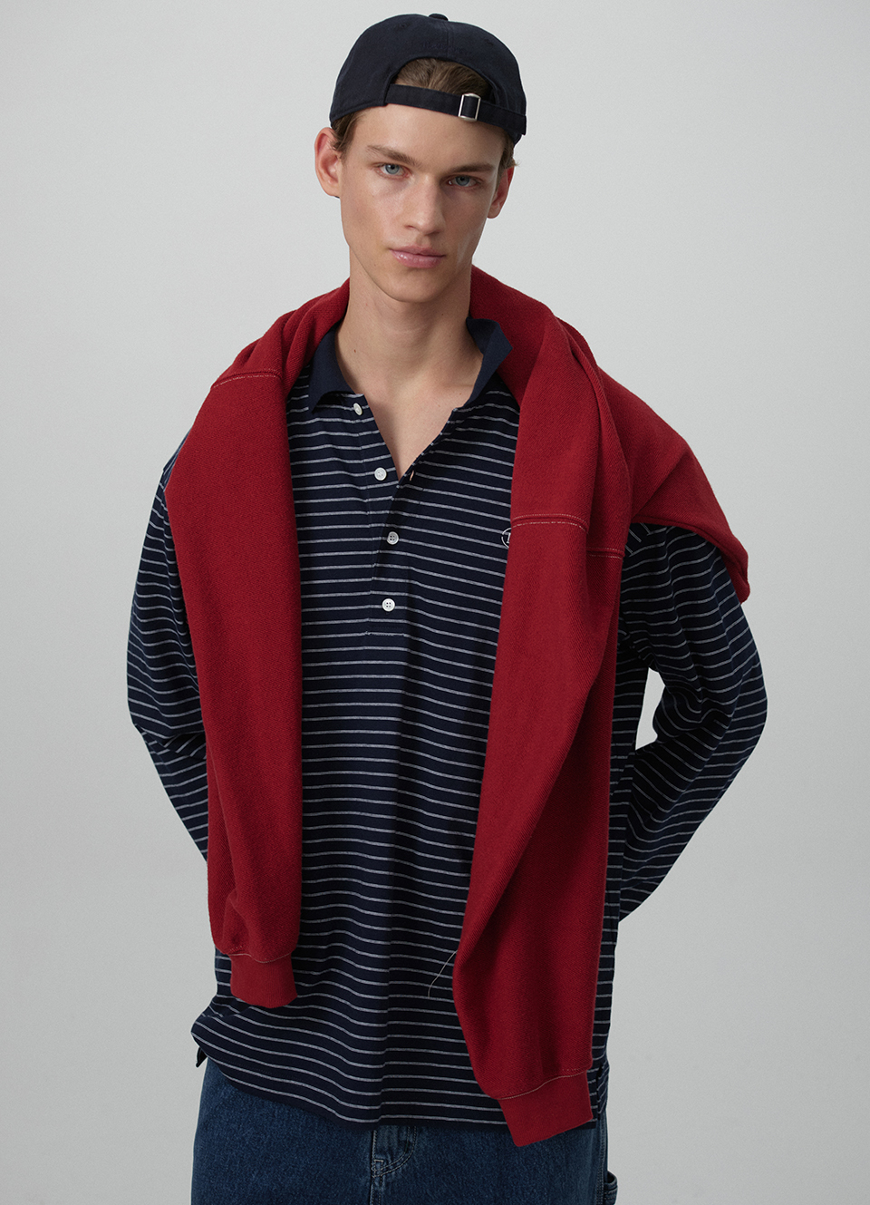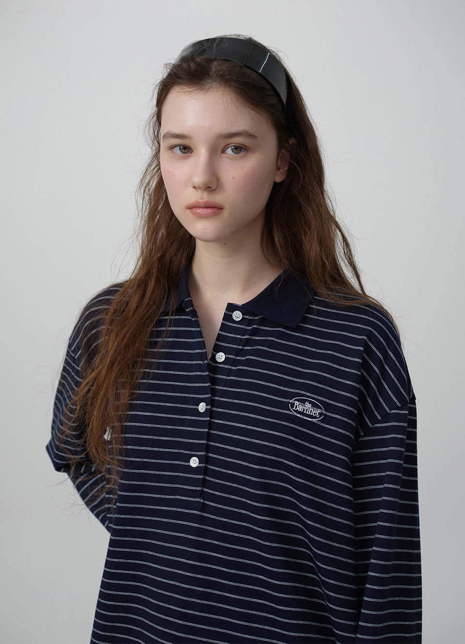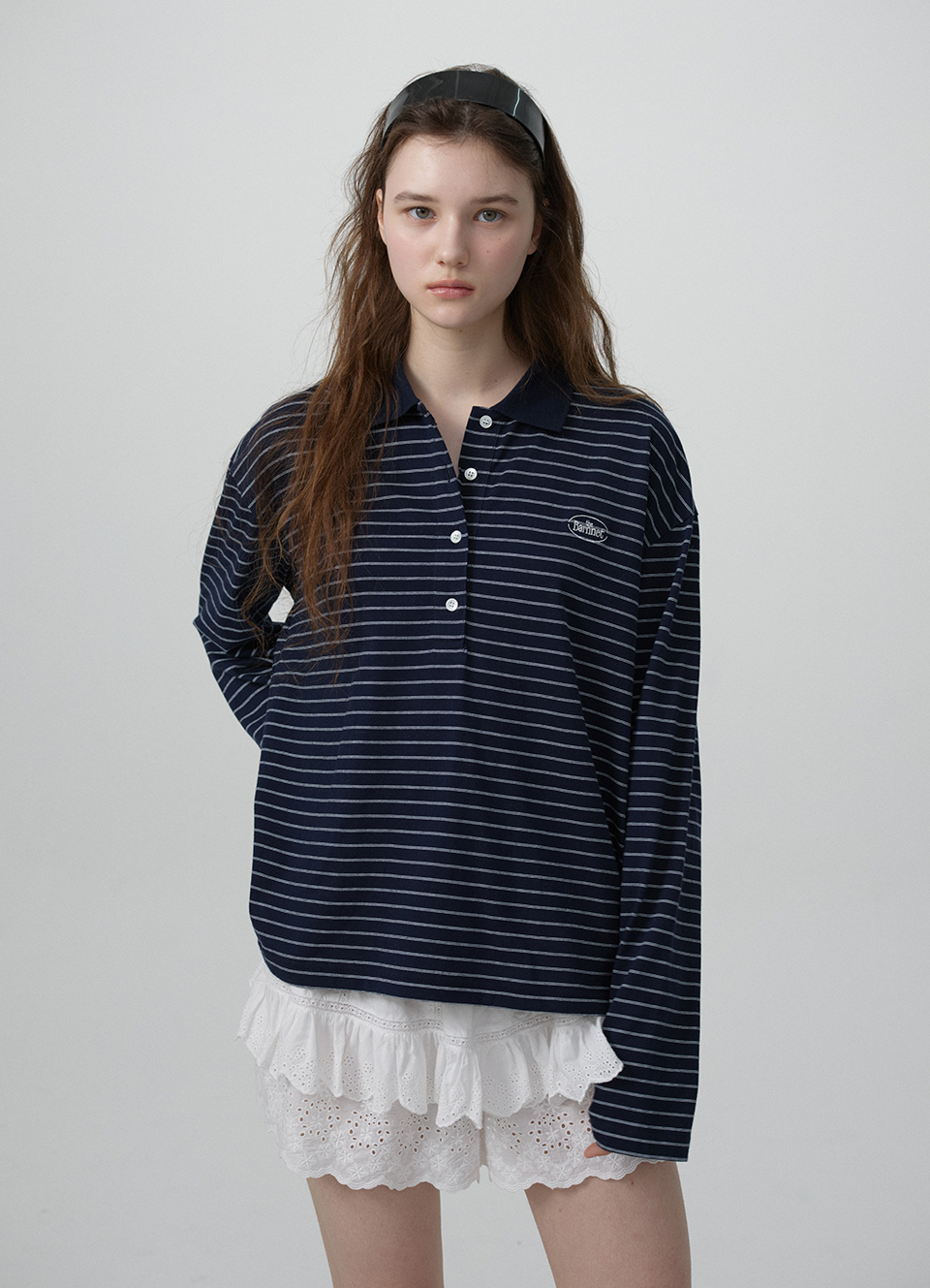 【先行販売】Delphine Stripe Pique Shirt_Navy
