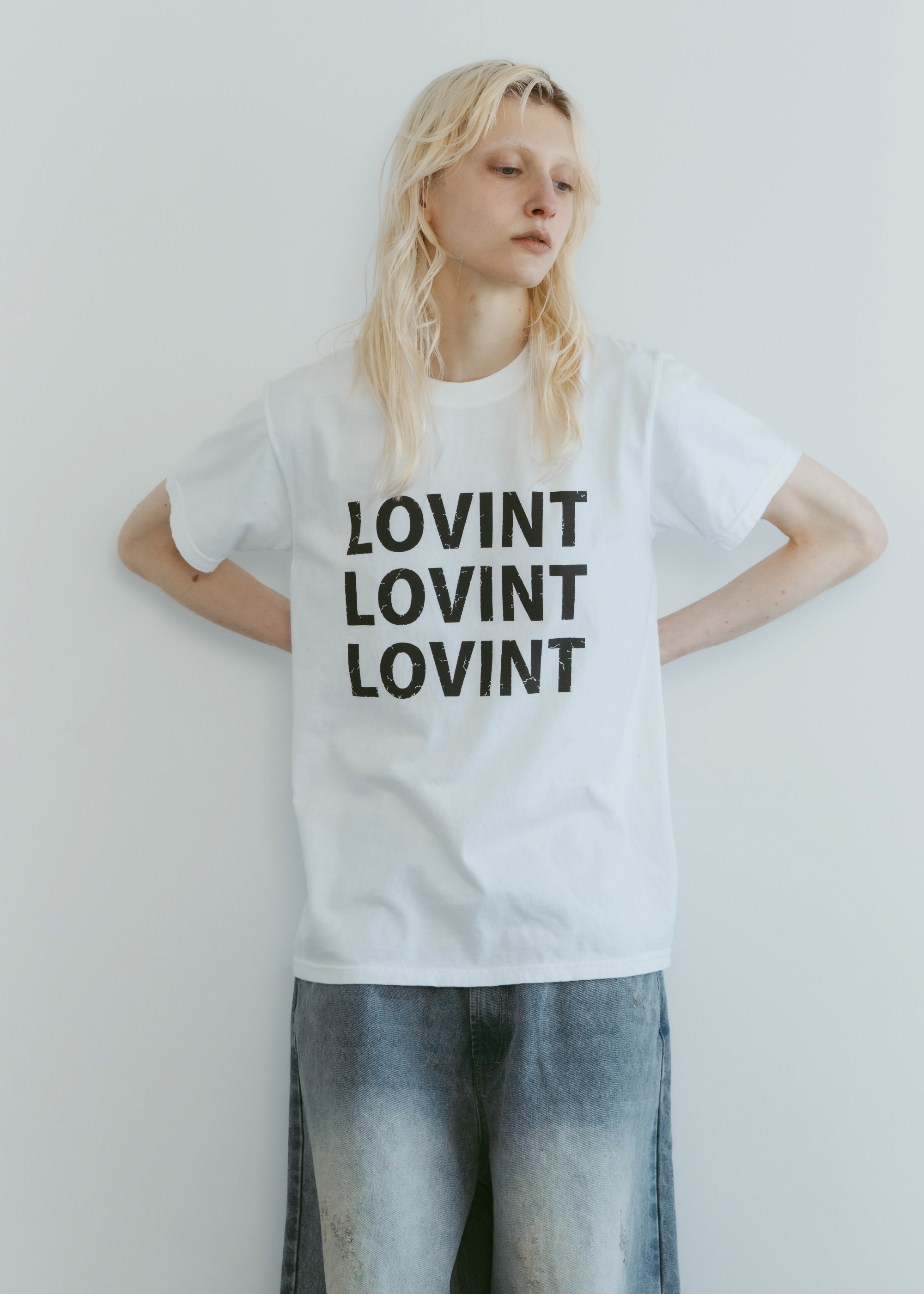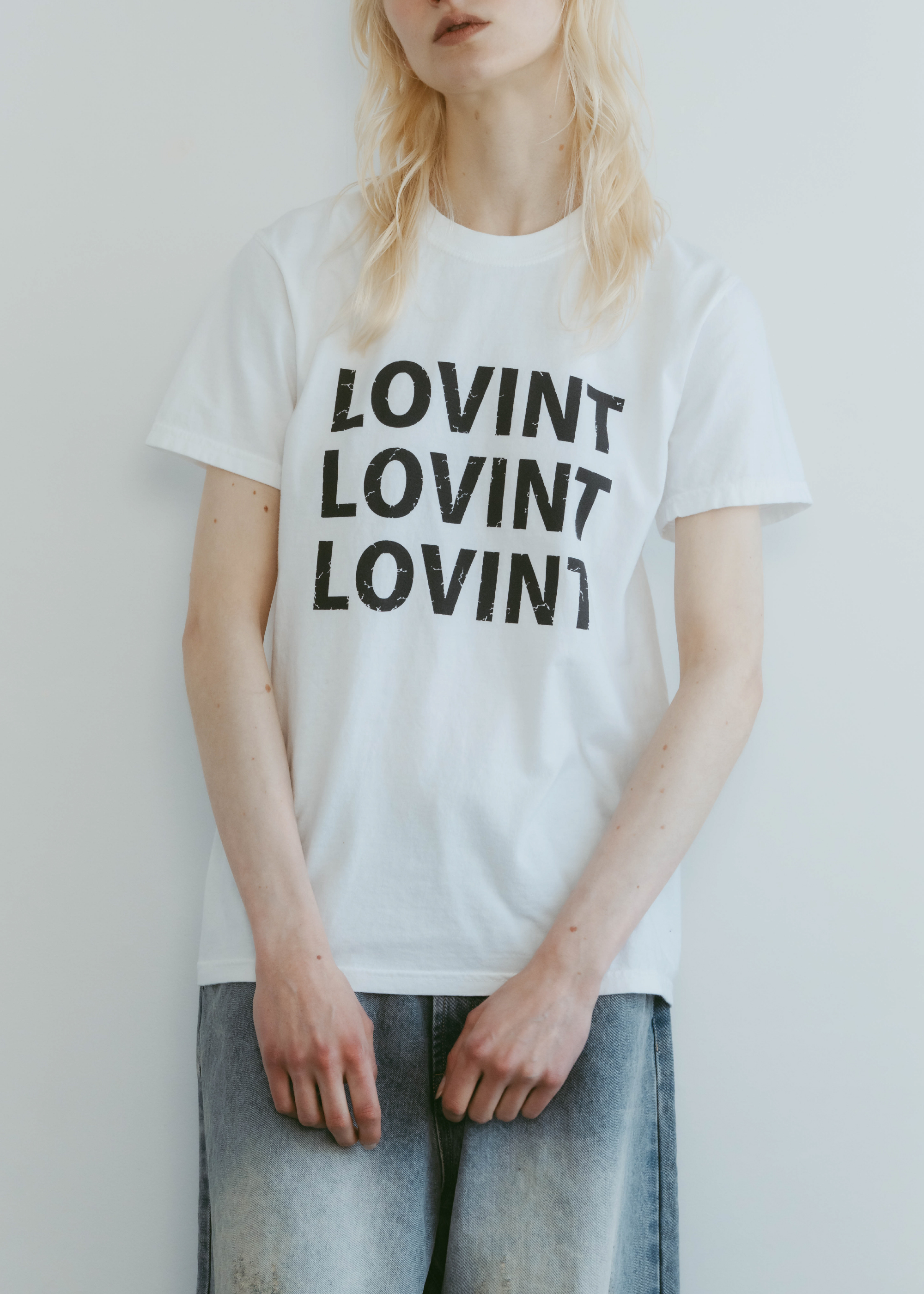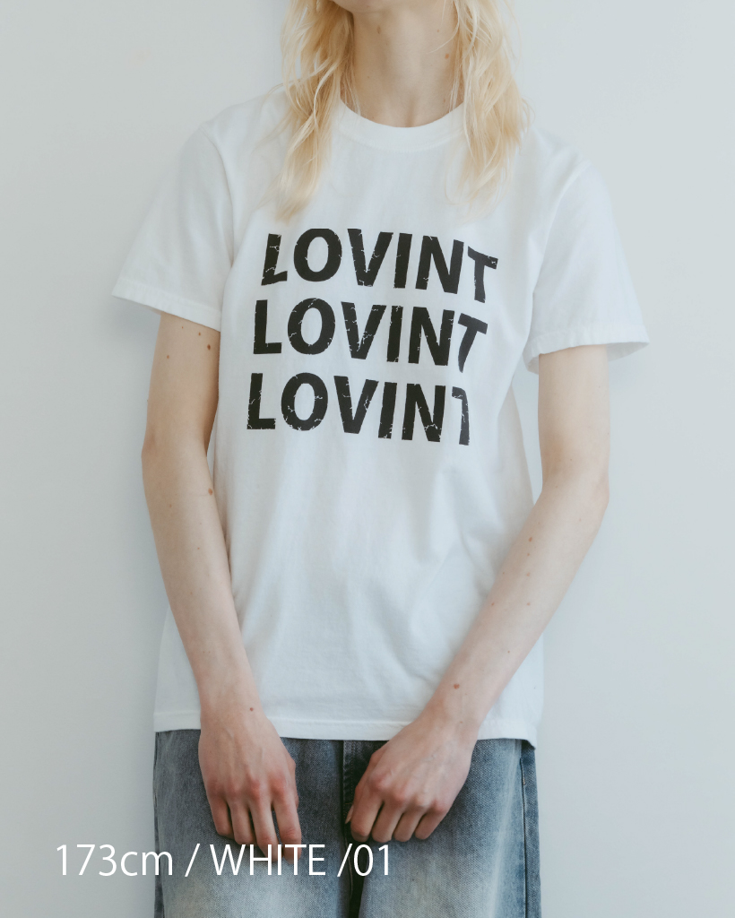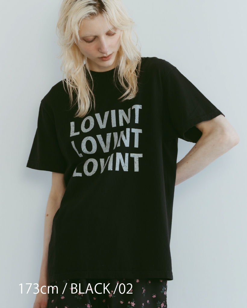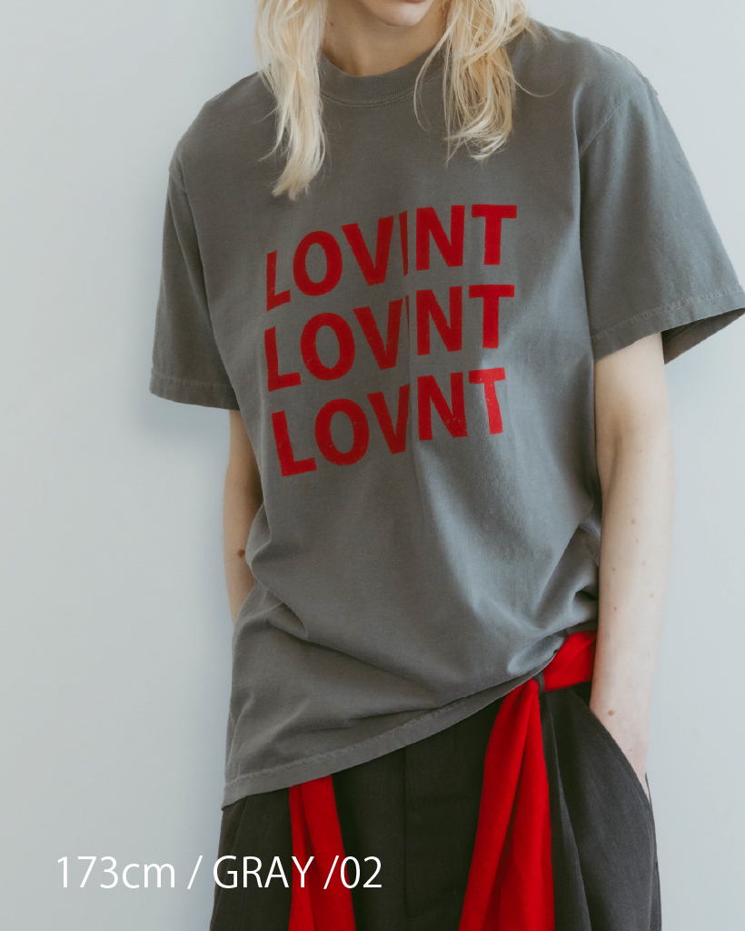 アイコニックなLOVINTロゴのTシャツ 縫製した後に、ピグメント染を施し、 後染めならではのヴィンテージ感と柔らかさ 着れば着るほど柔らかく味の出る100%コットンです。 ※お洗濯を繰り返しますと更に柔らかくなり伸縮しやすい生地です。 伸びが気になる方は平置きで干していただくのをお勧めいたします。