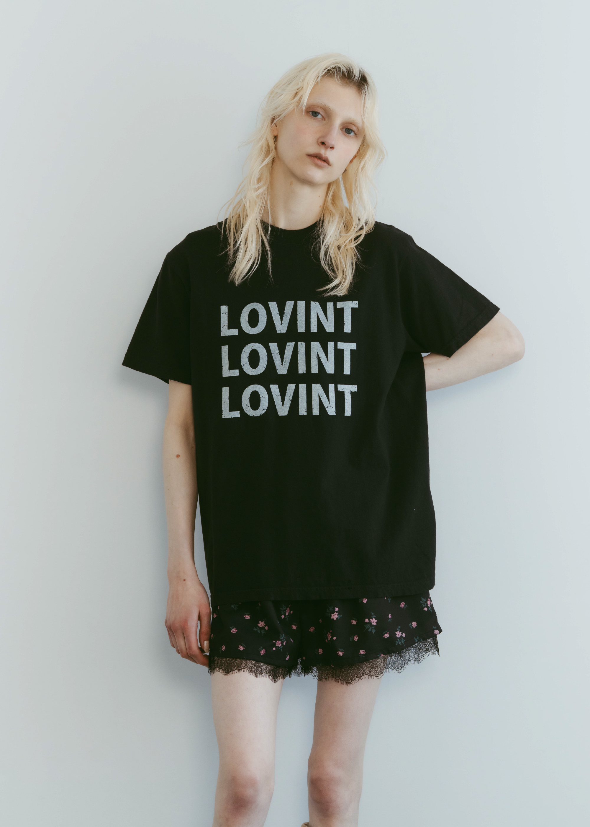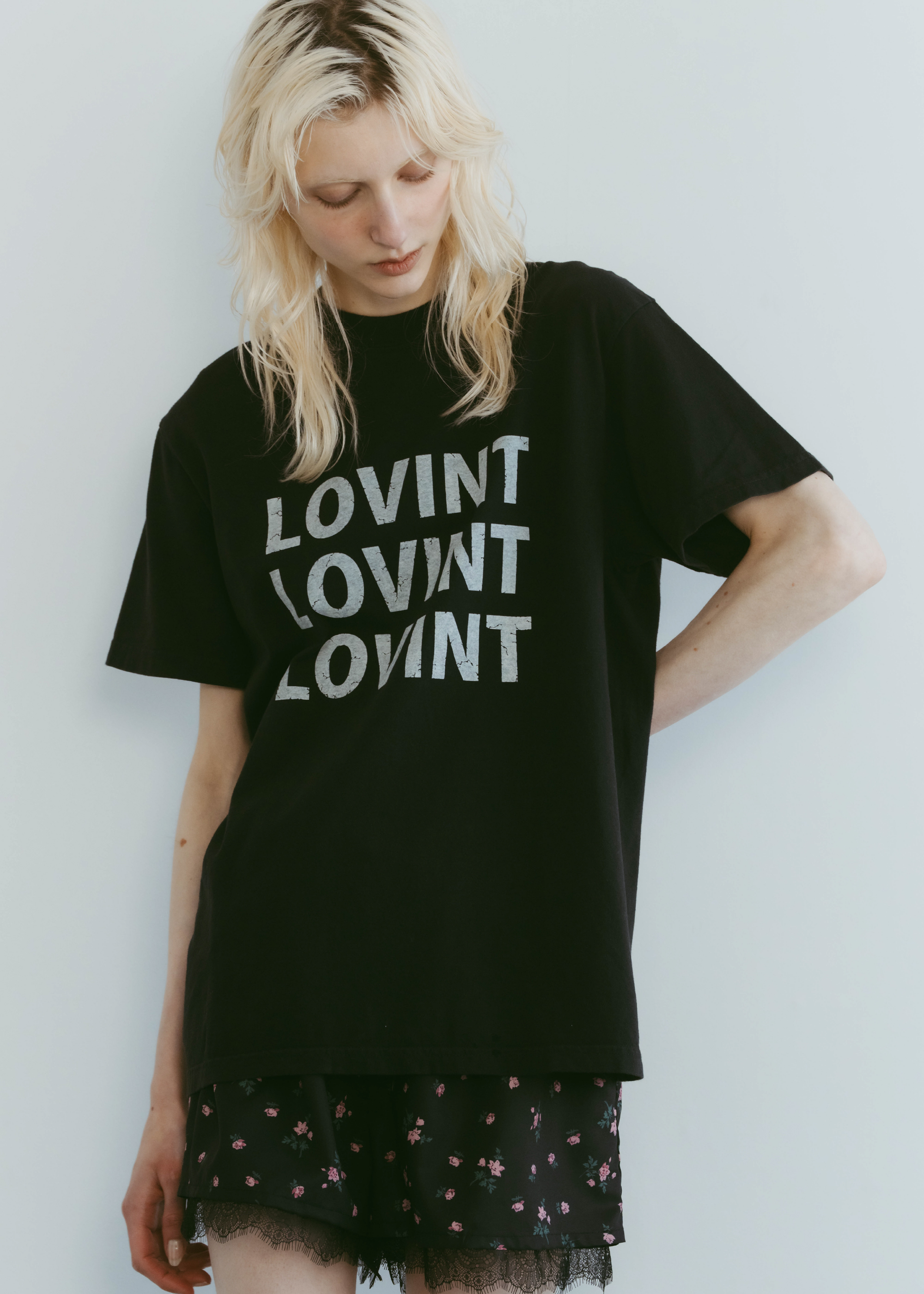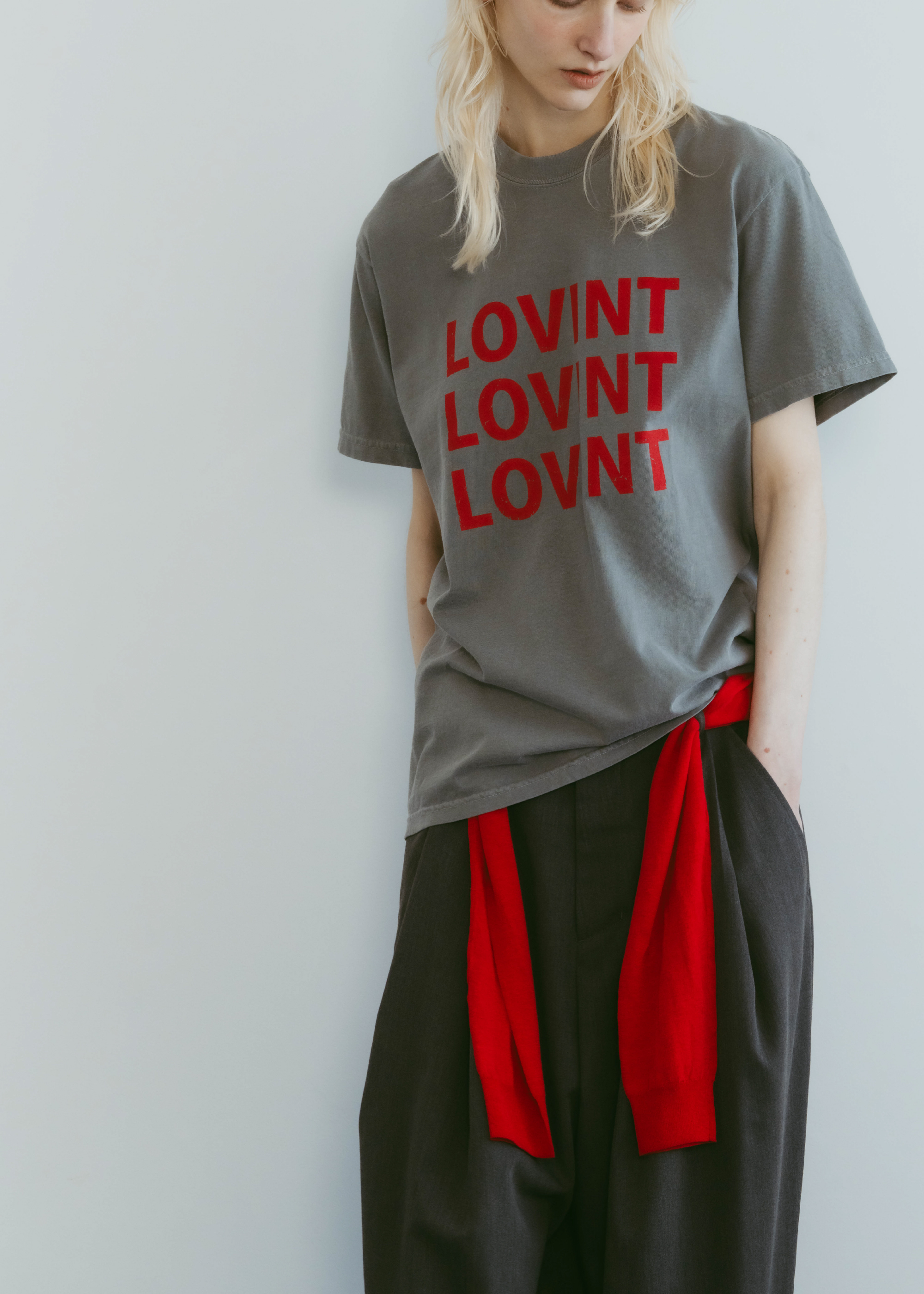 アイコニックなLOVINTロゴのTシャツ 縫製した後に、ピグメント染を施し、 後染めならではのヴィンテージ感と柔らかさ 着れば着るほど柔らかく味の出る100%コットンです。 ※お洗濯を繰り返しますと更に柔らかくなり伸縮しやすい生地です。 伸びが気になる方は平置きで干していただくのをお勧めいたします。