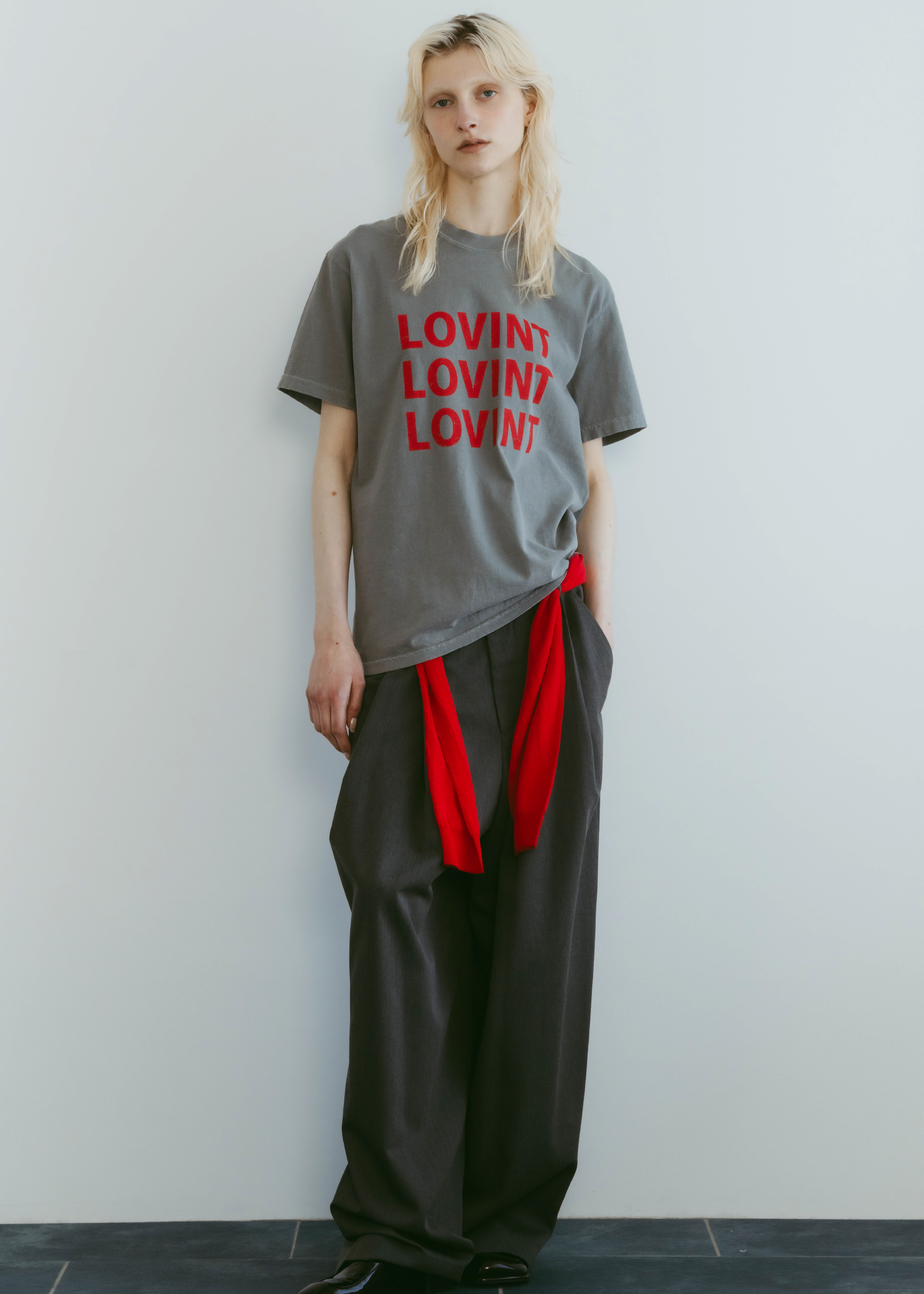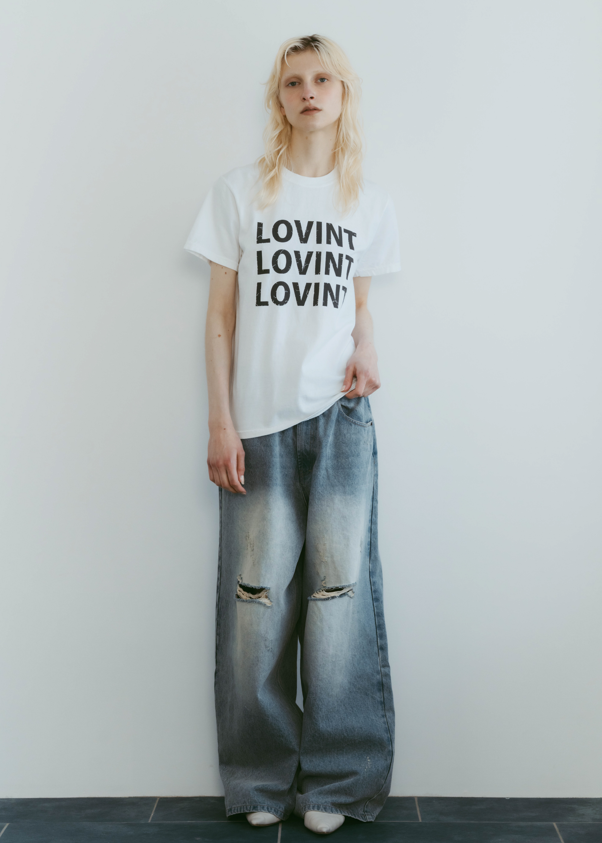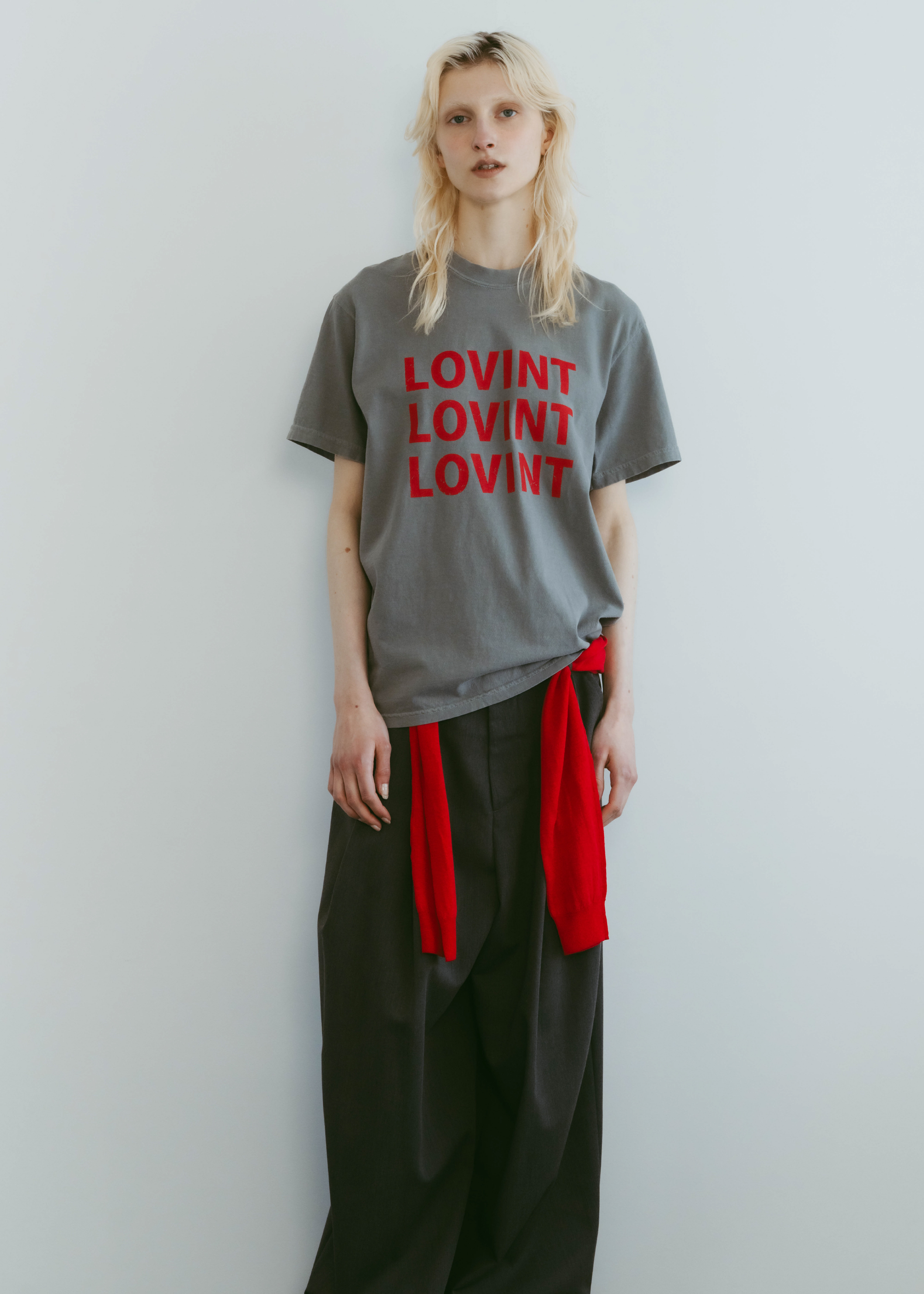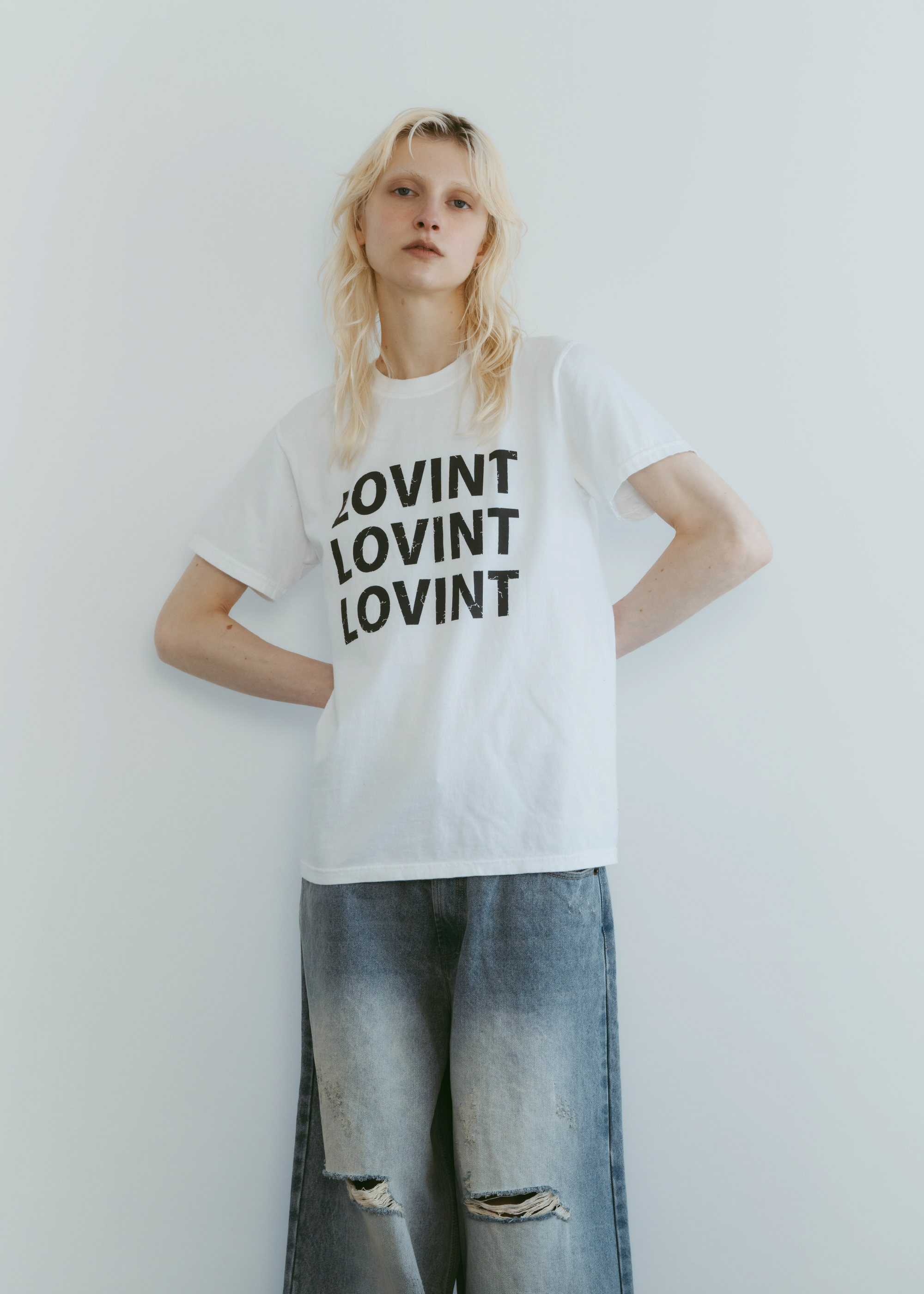 アイコニックなLOVINTロゴのTシャツ 縫製した後に、ピグメント染を施し、 後染めならではのヴィンテージ感と柔らかさ 着れば着るほど柔らかく味の出る100%コットンです。 ※お洗濯を繰り返しますと更に柔らかくなり伸縮しやすい生地です。 伸びが気になる方は平置きで干していただくのをお勧めいたします。