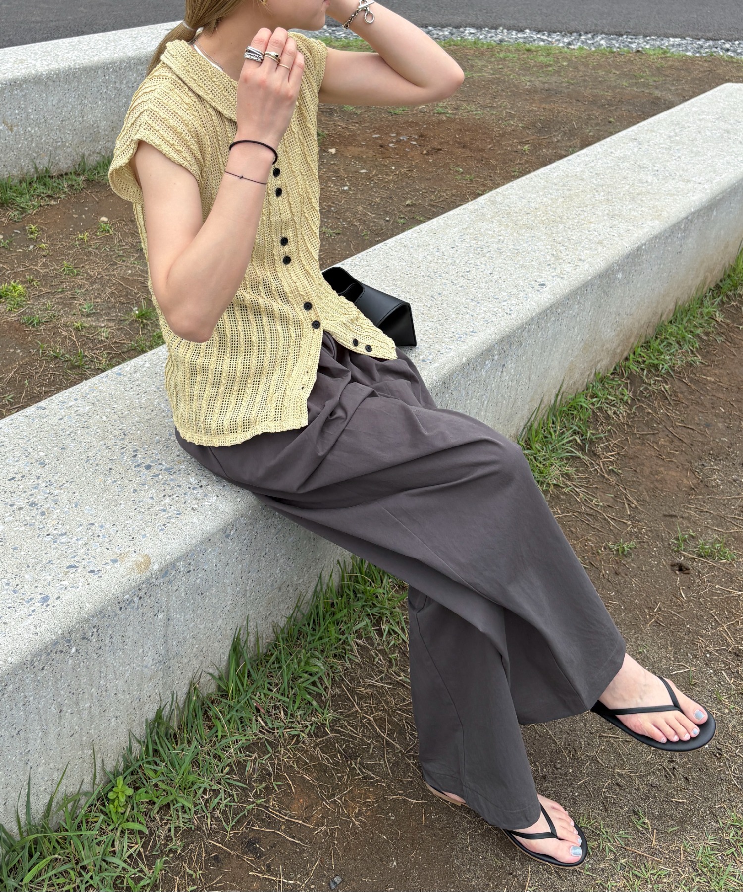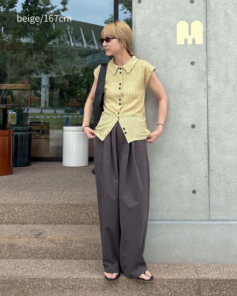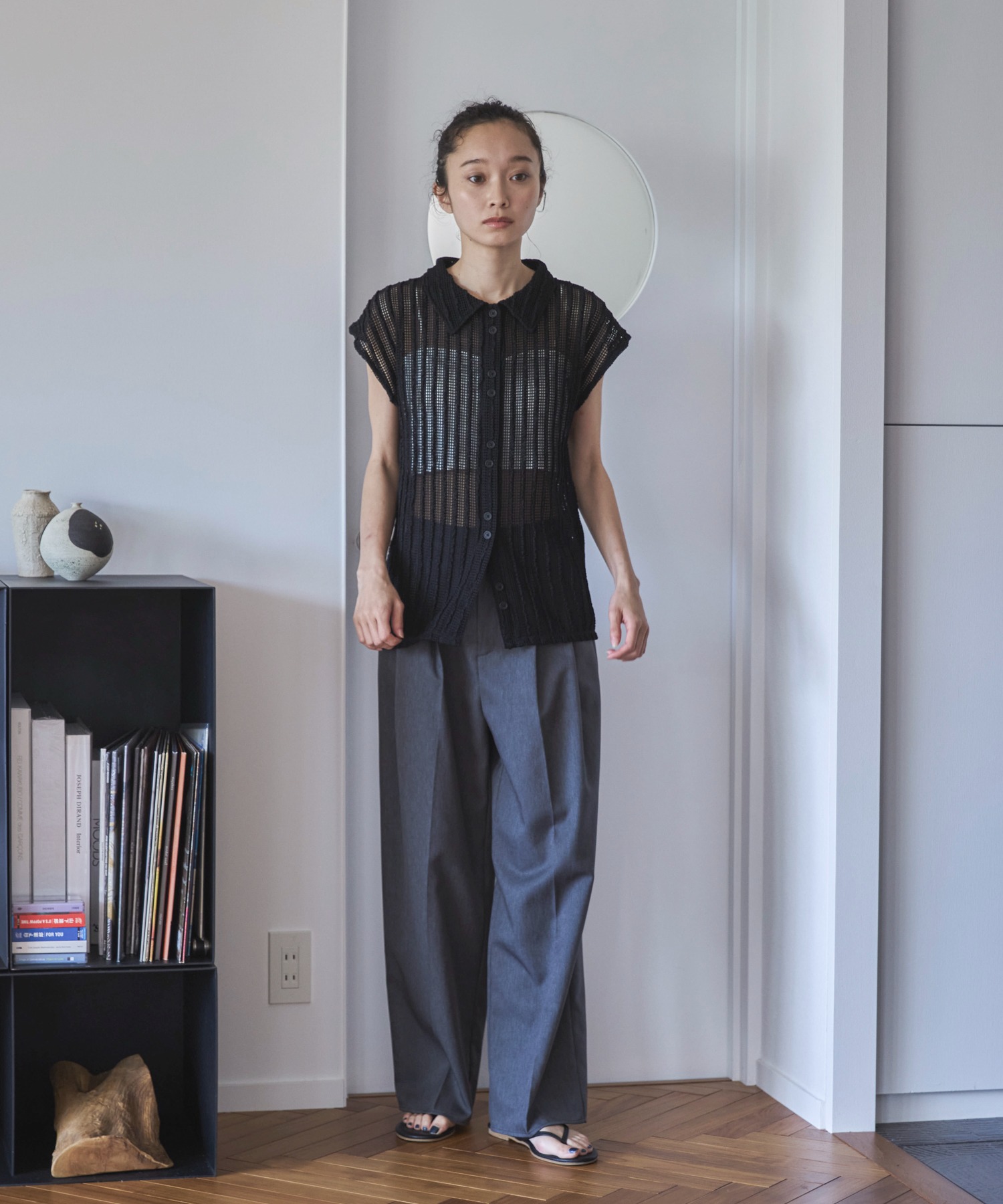 一見ニット見えするアイテムですが、サラッとしたポリエステル生地で涼しくお召しいただけます。