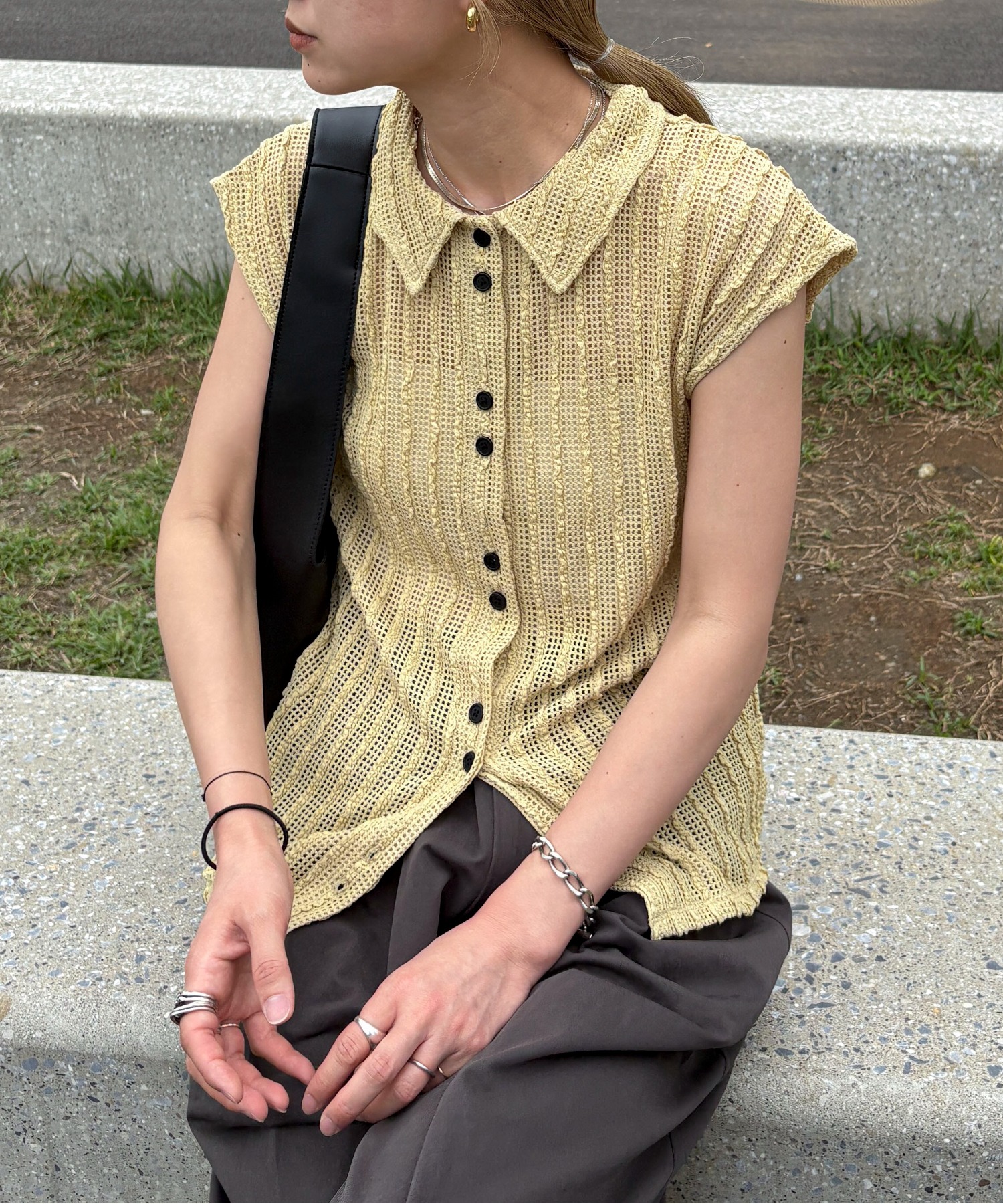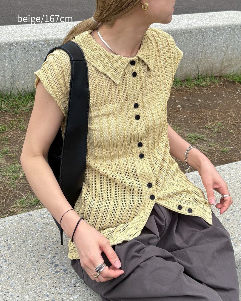 暑い夏にも快適に着られる通気性の良いメッシュカーディガン。