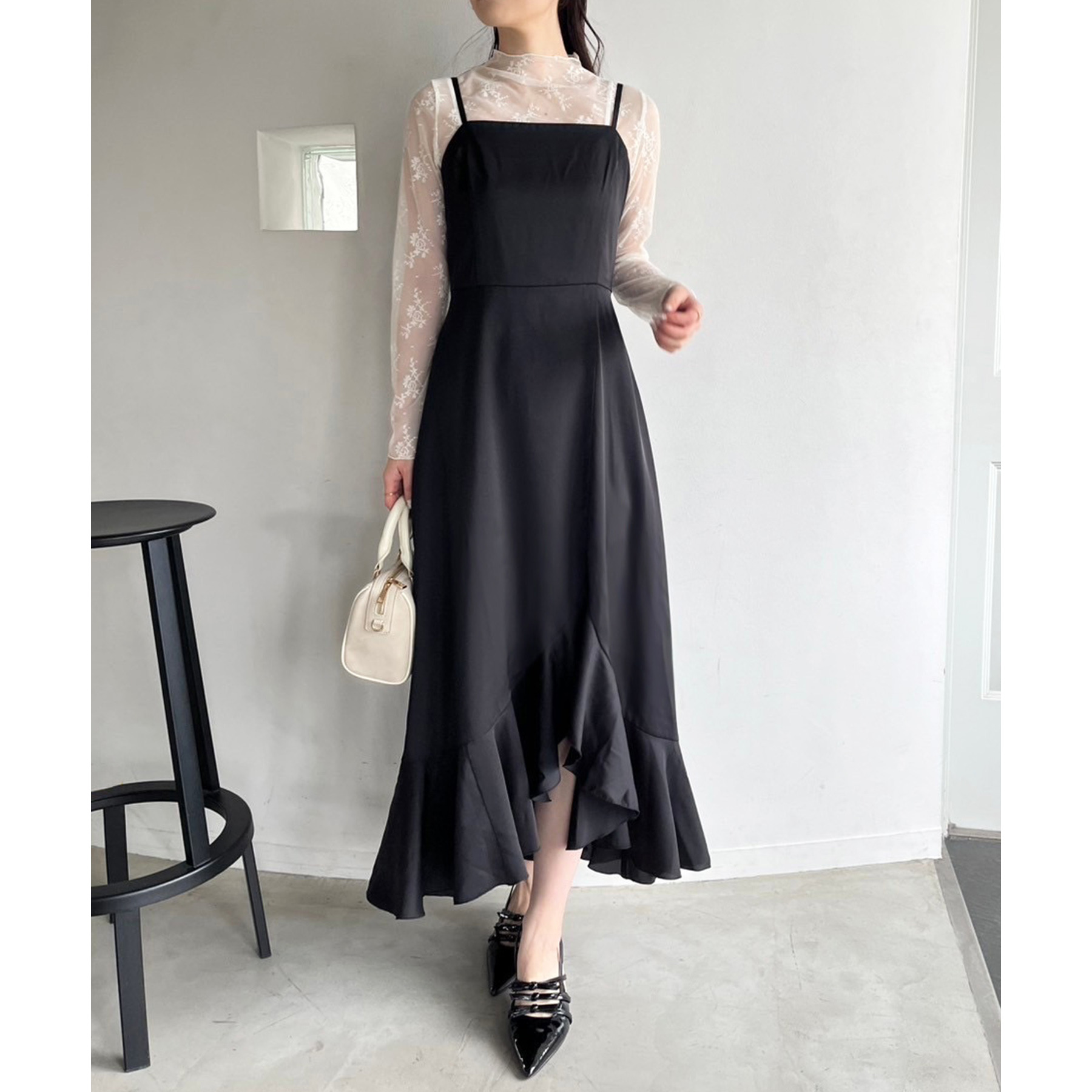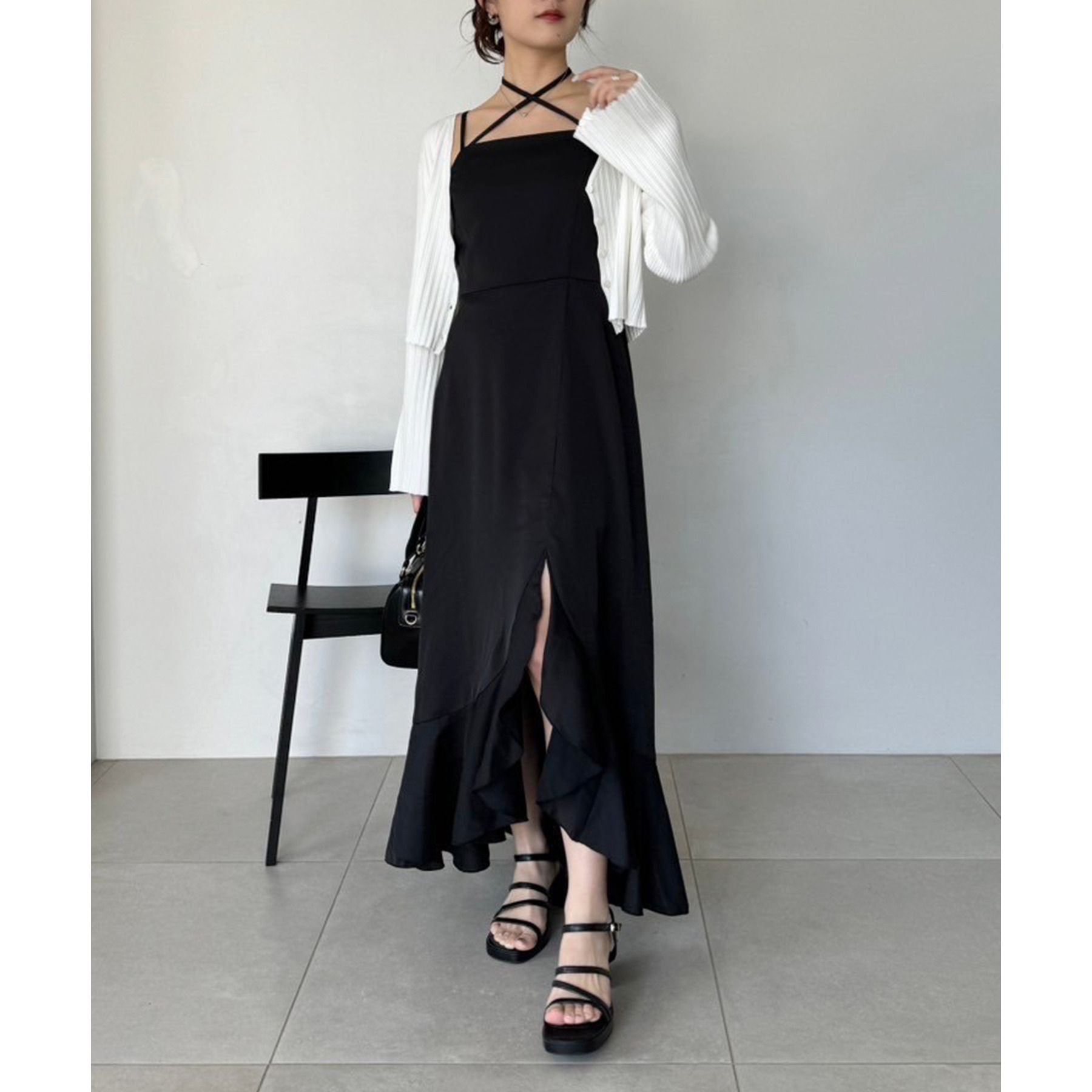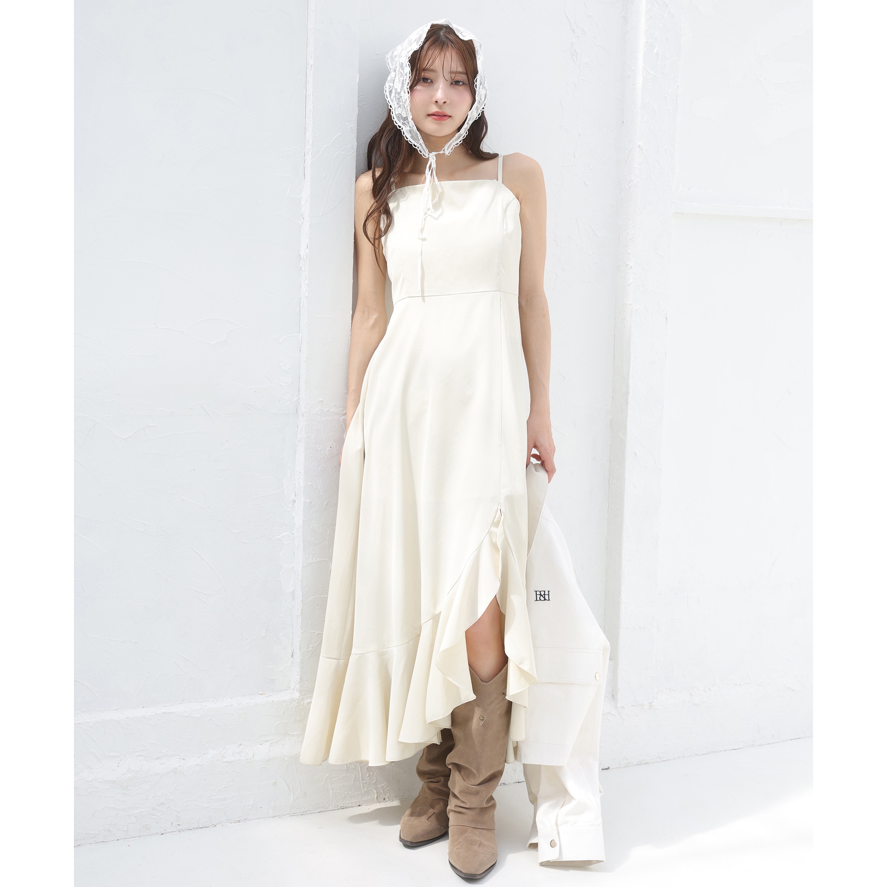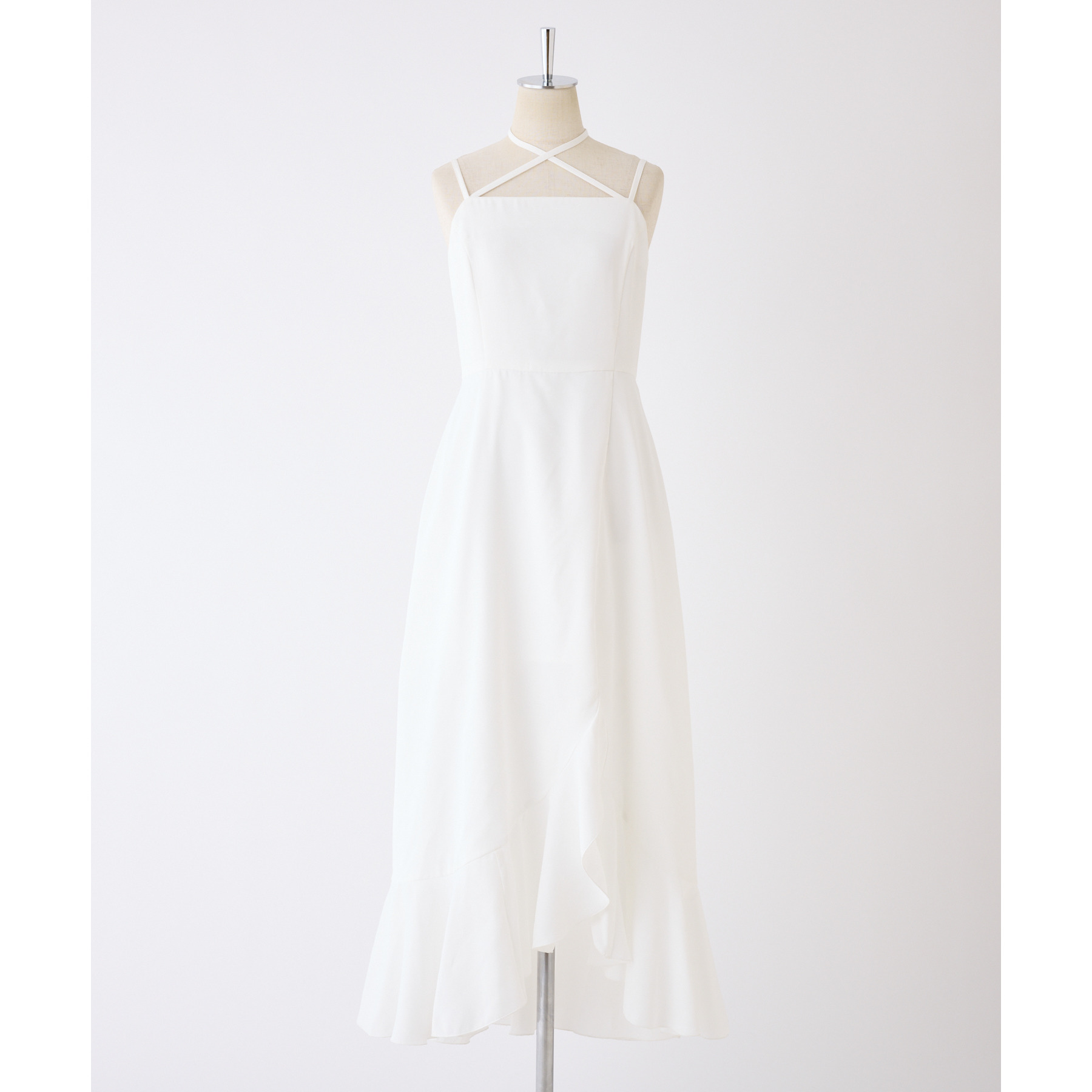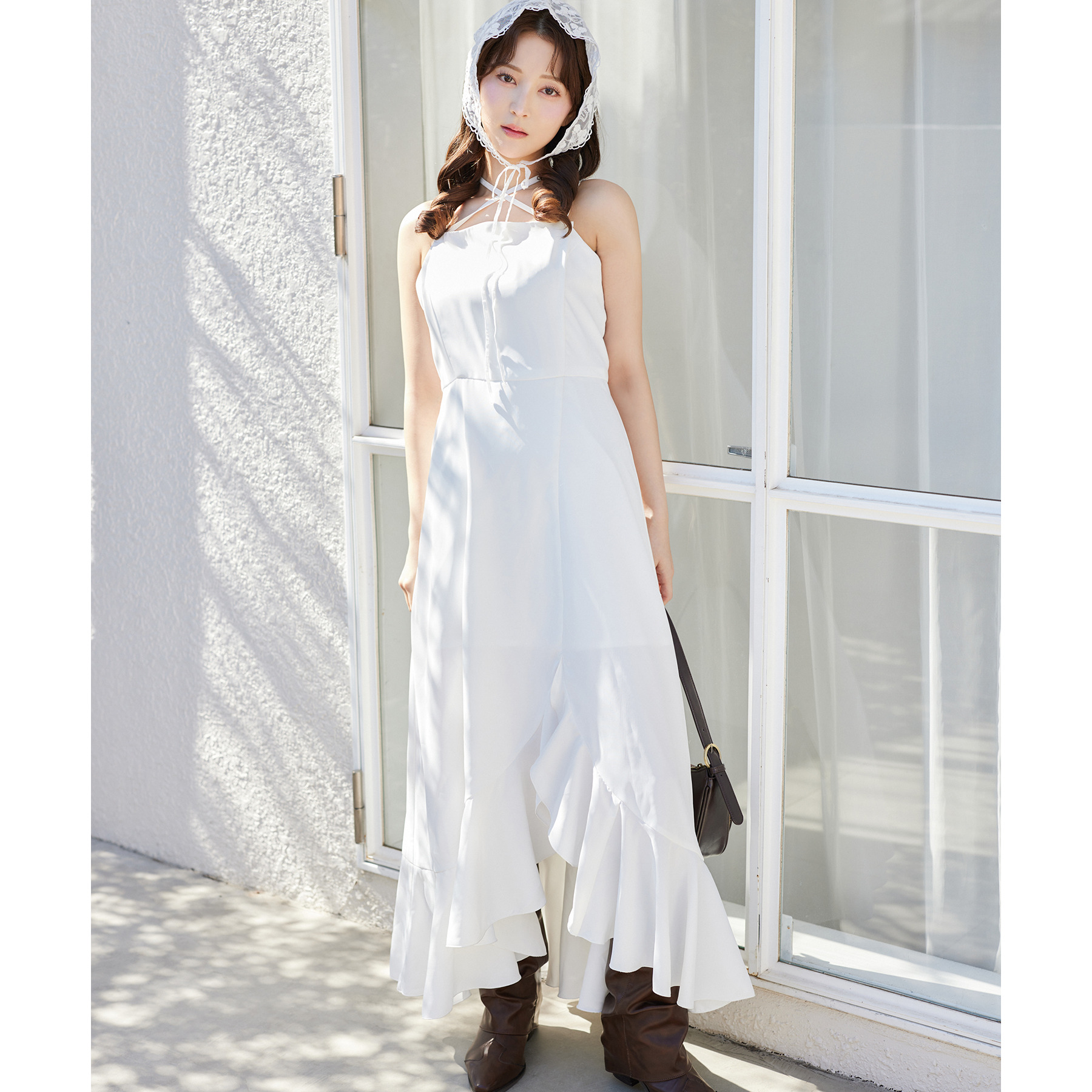 裾に変化をつけたイレギュラーヘムデザインが特徴のロングワンピース。