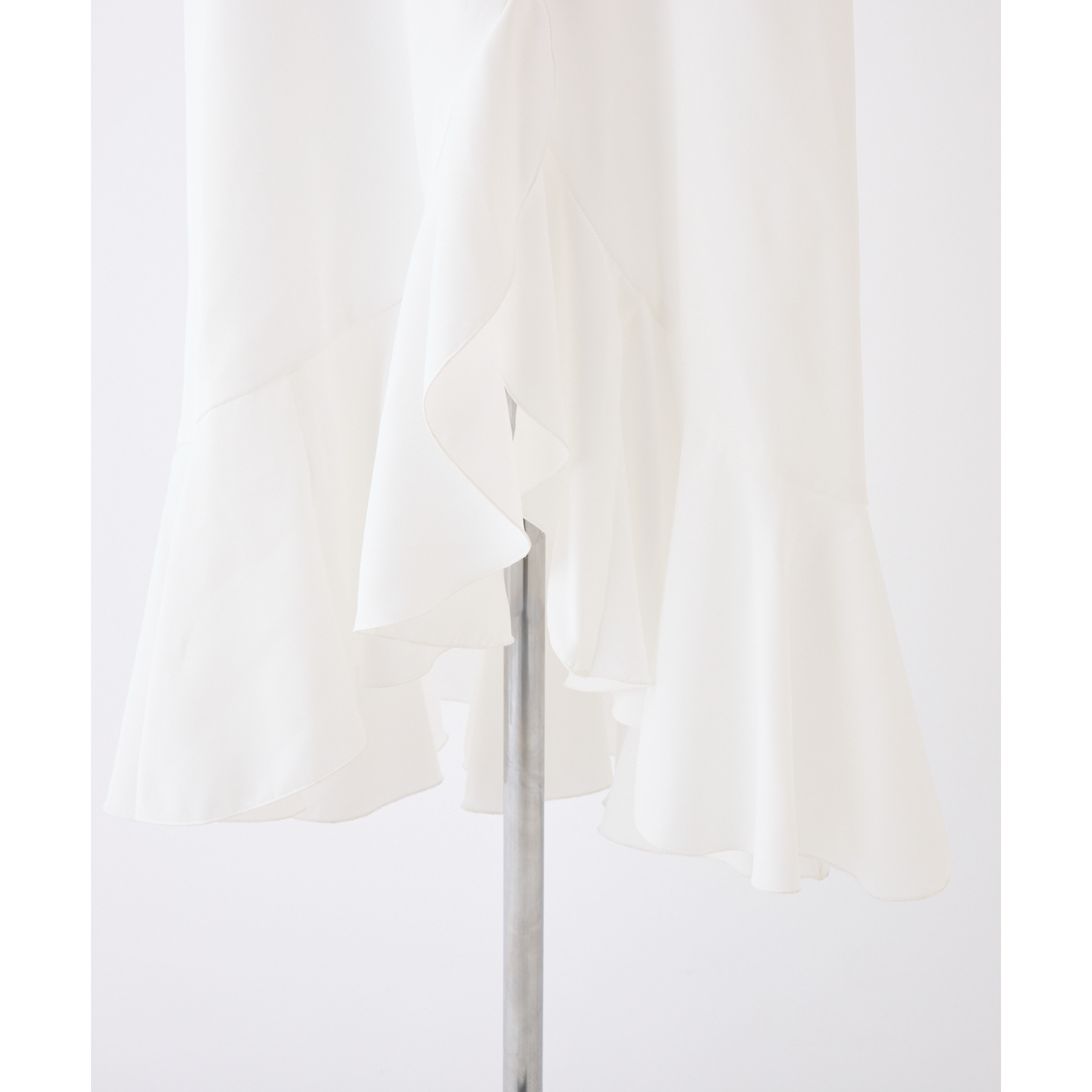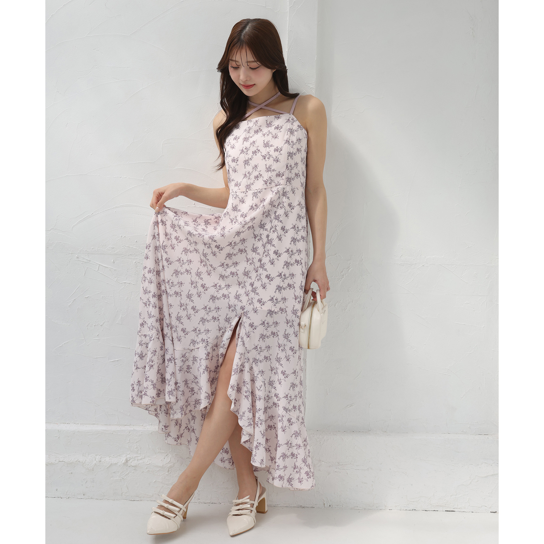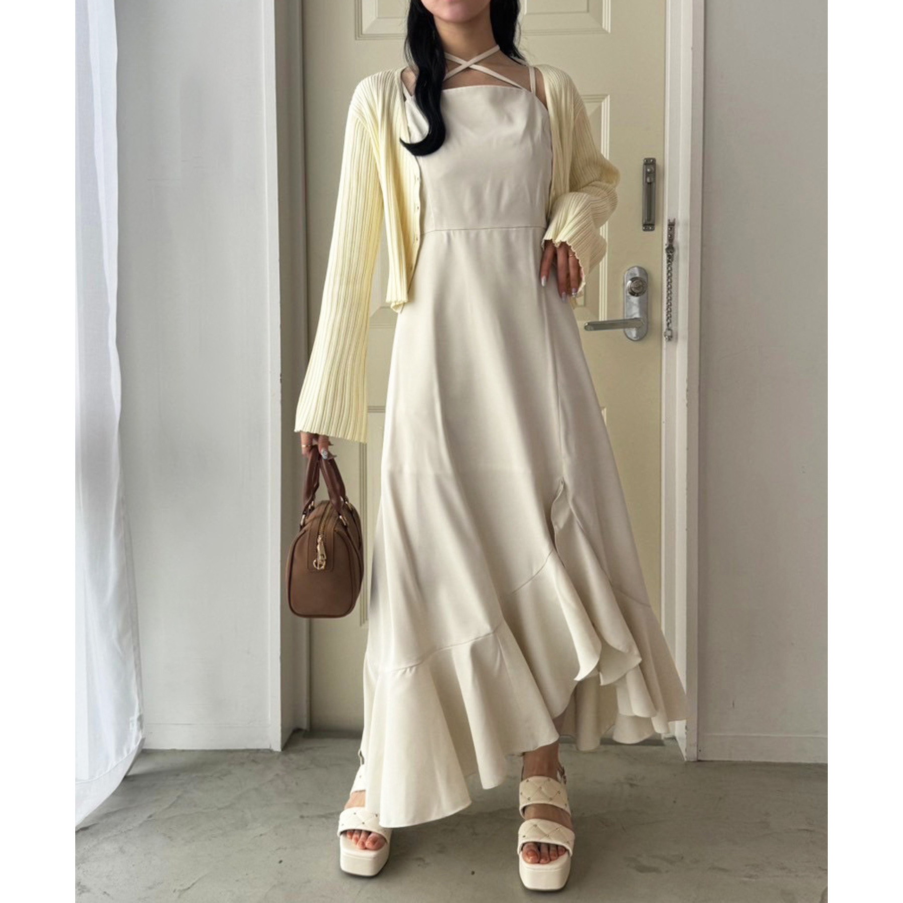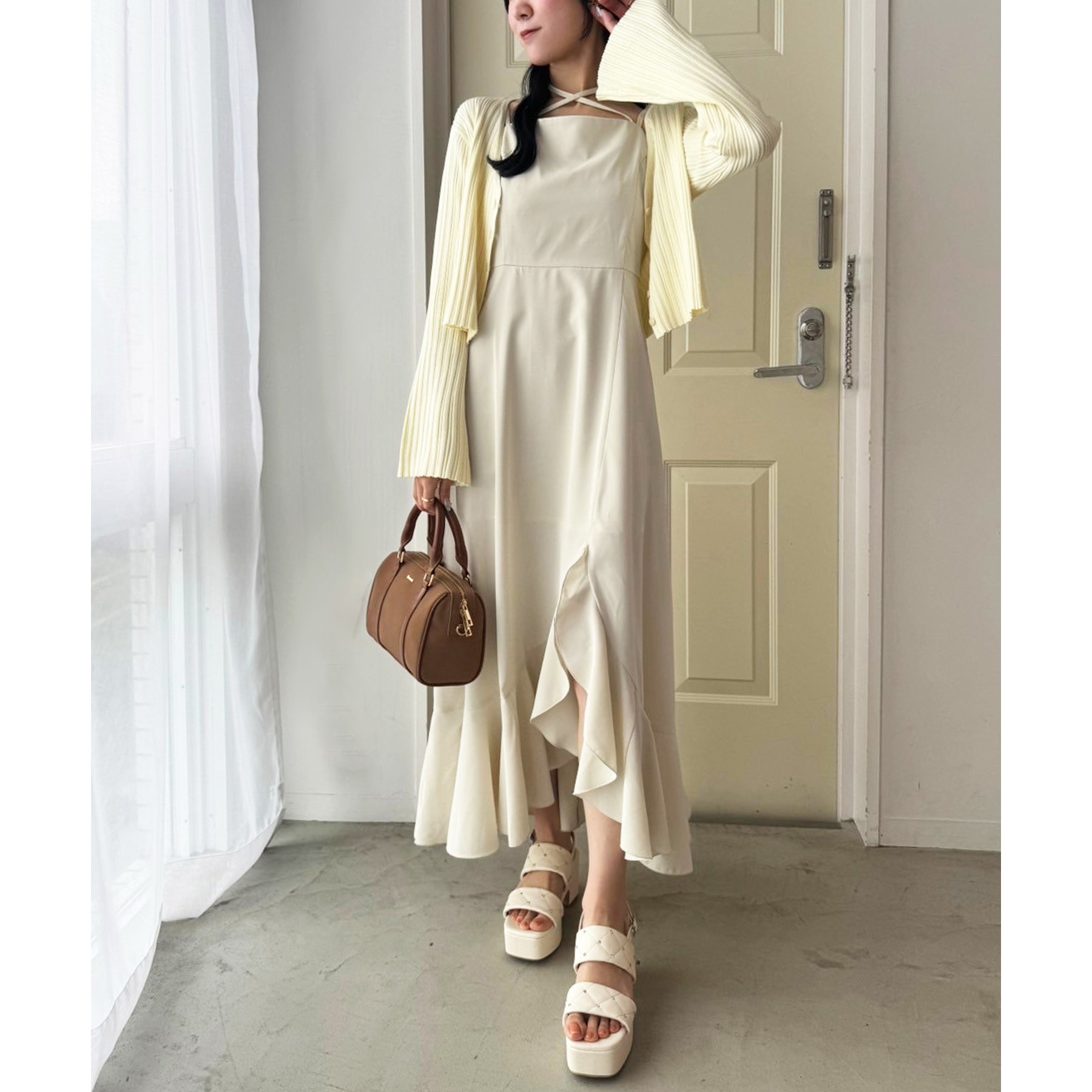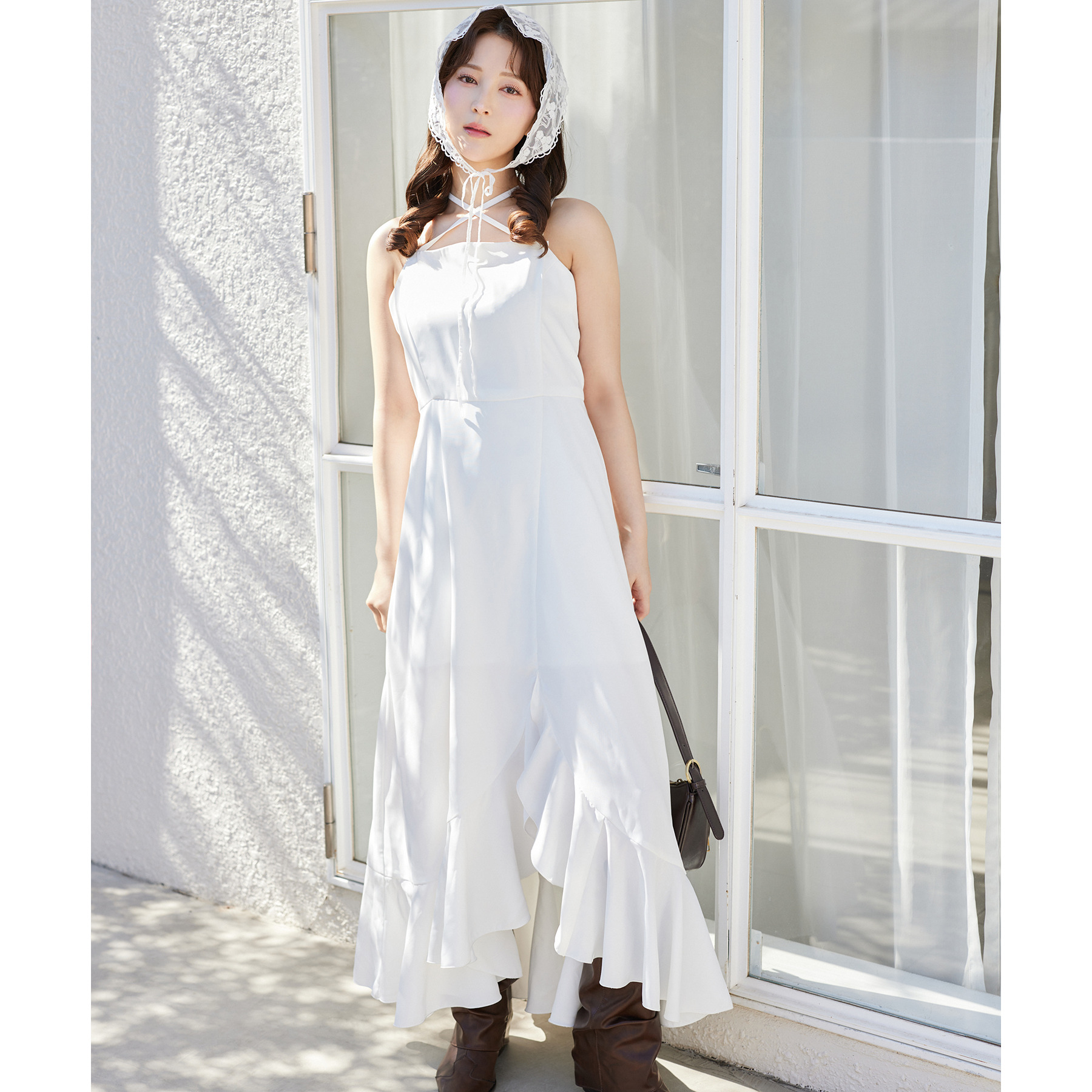 裾に変化をつけたイレギュラーヘムデザインが特徴のロングワンピース。