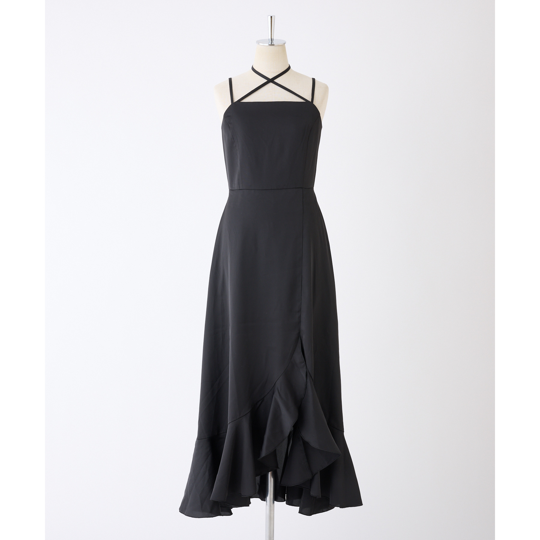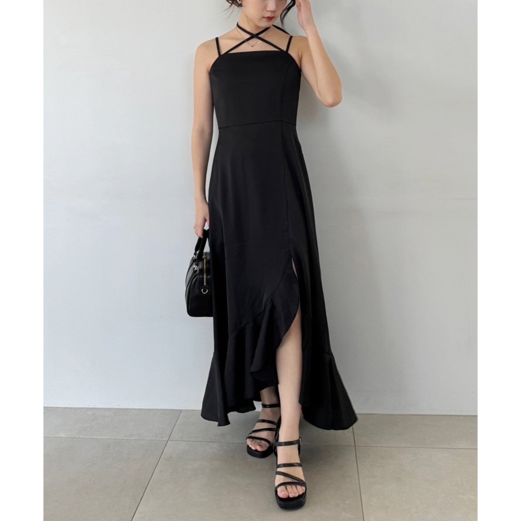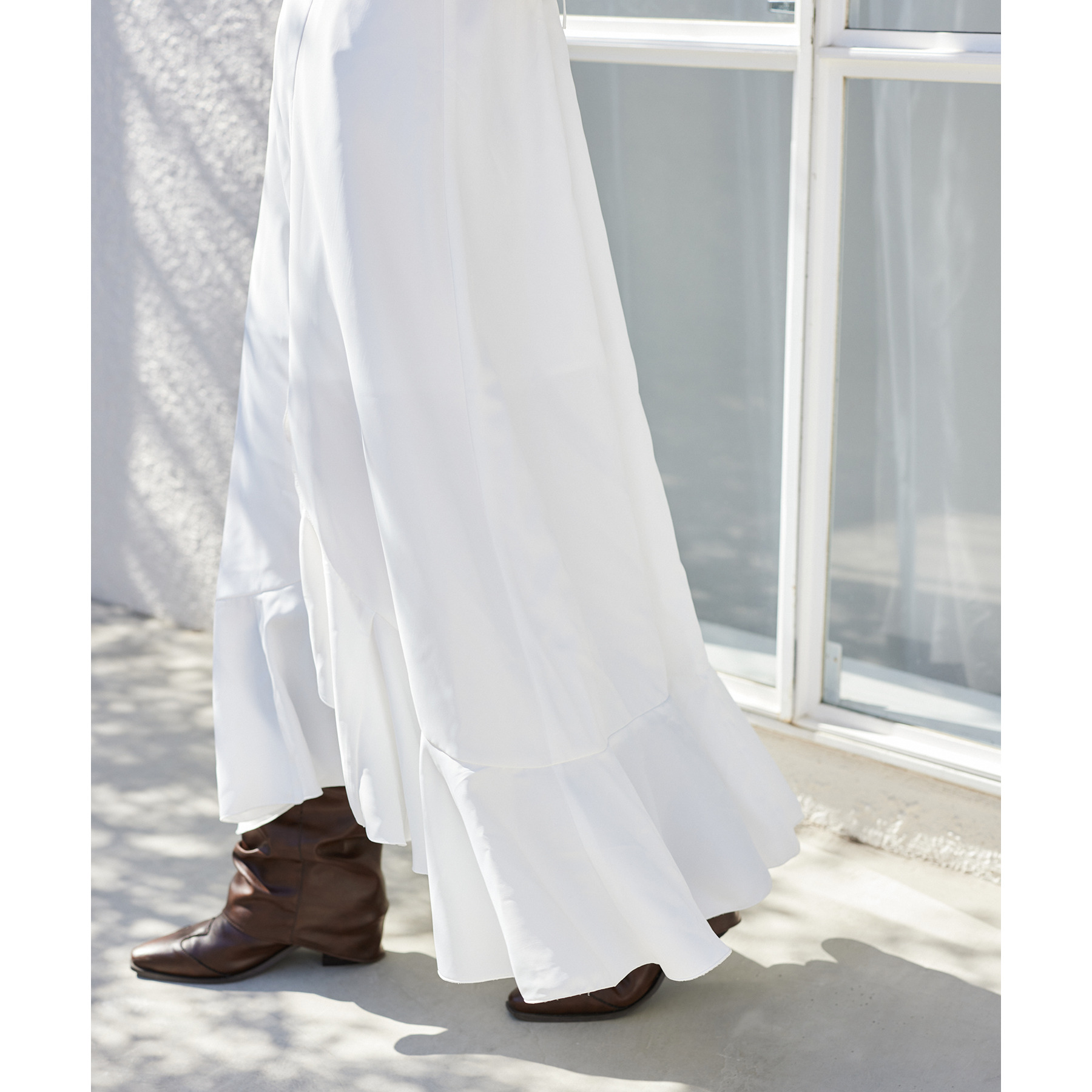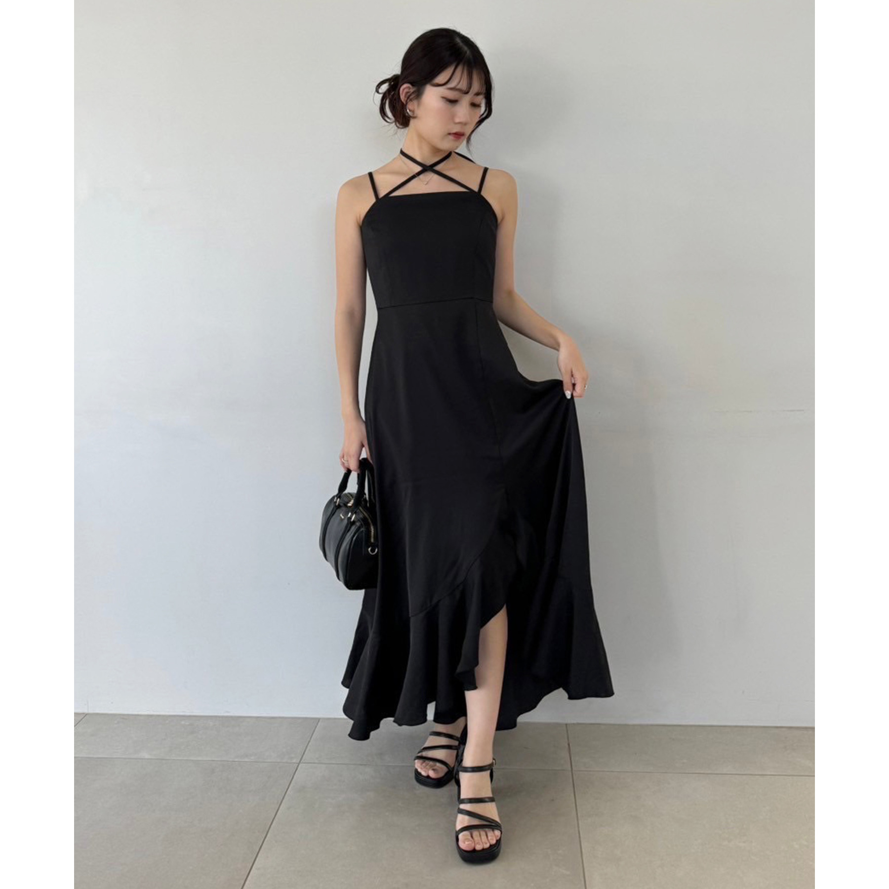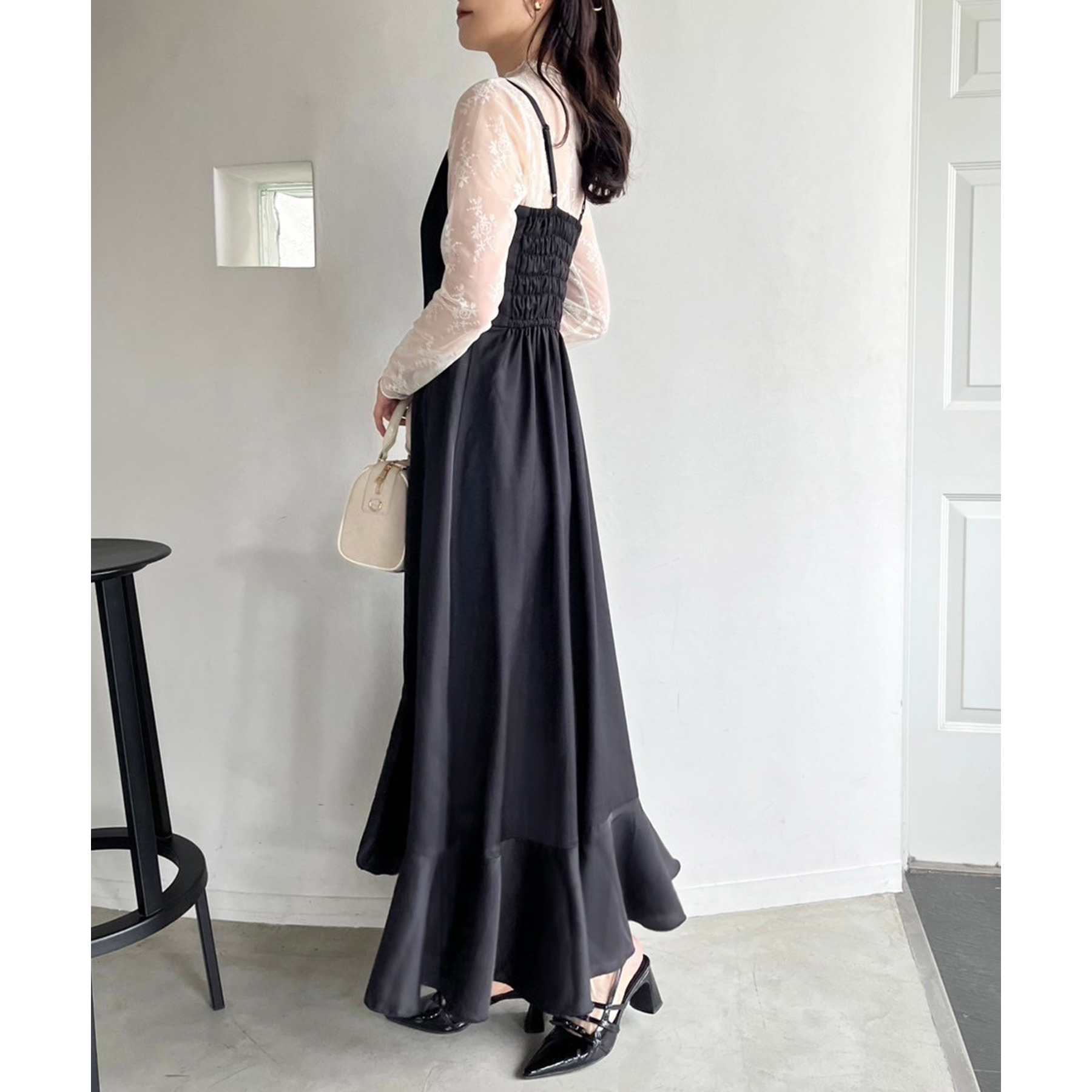 裾に変化をつけたイレギュラーヘムデザインが特徴のロングワンピース。