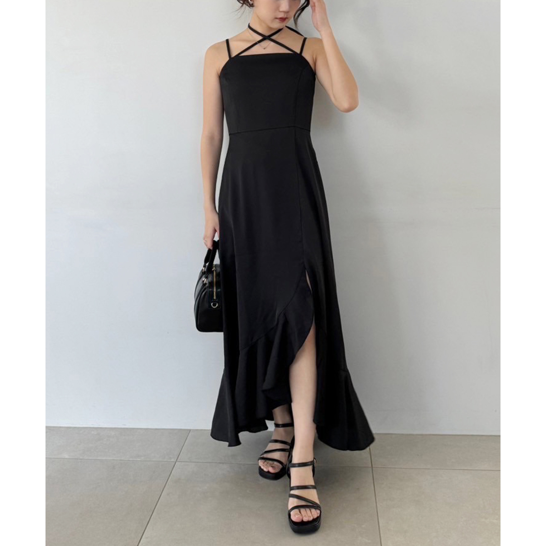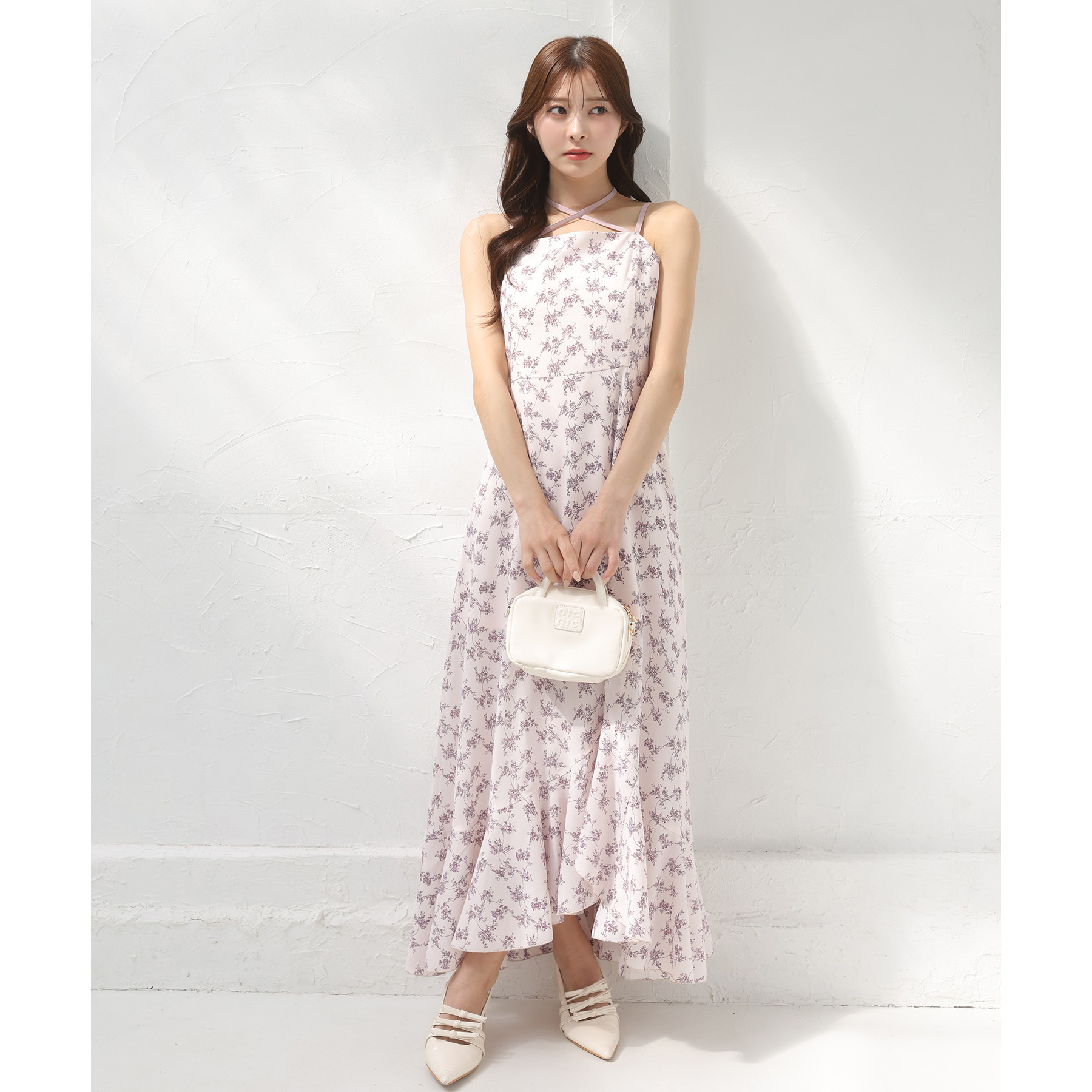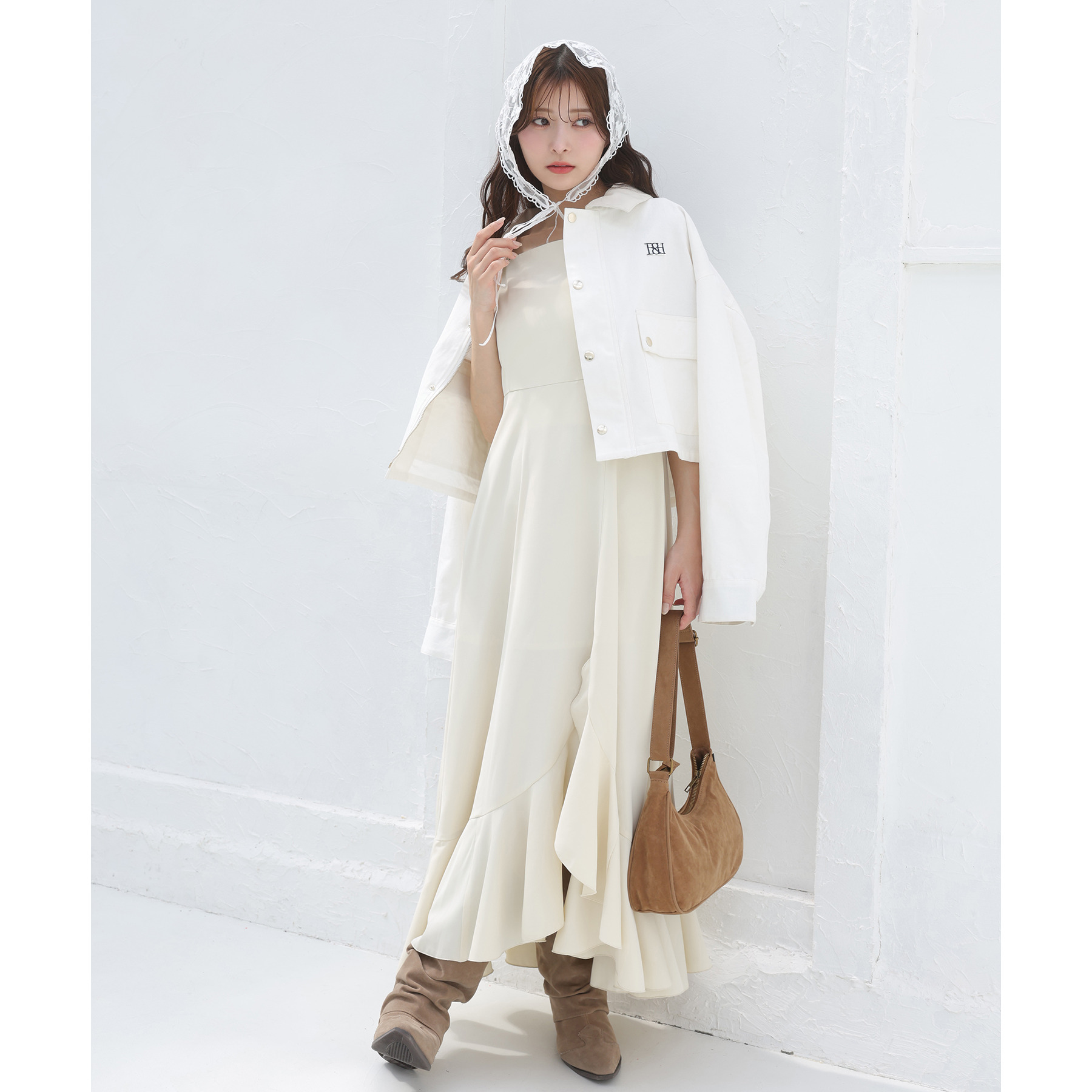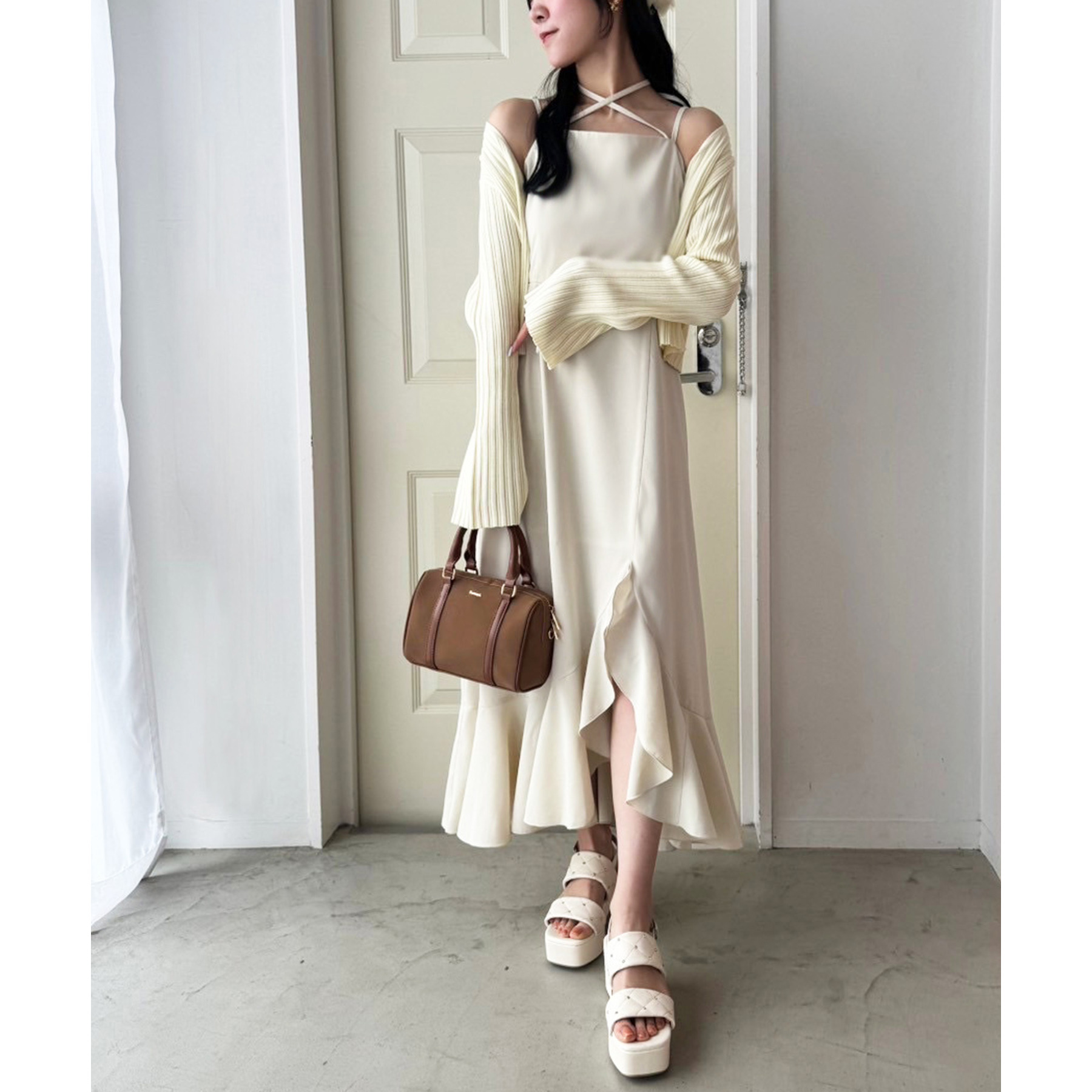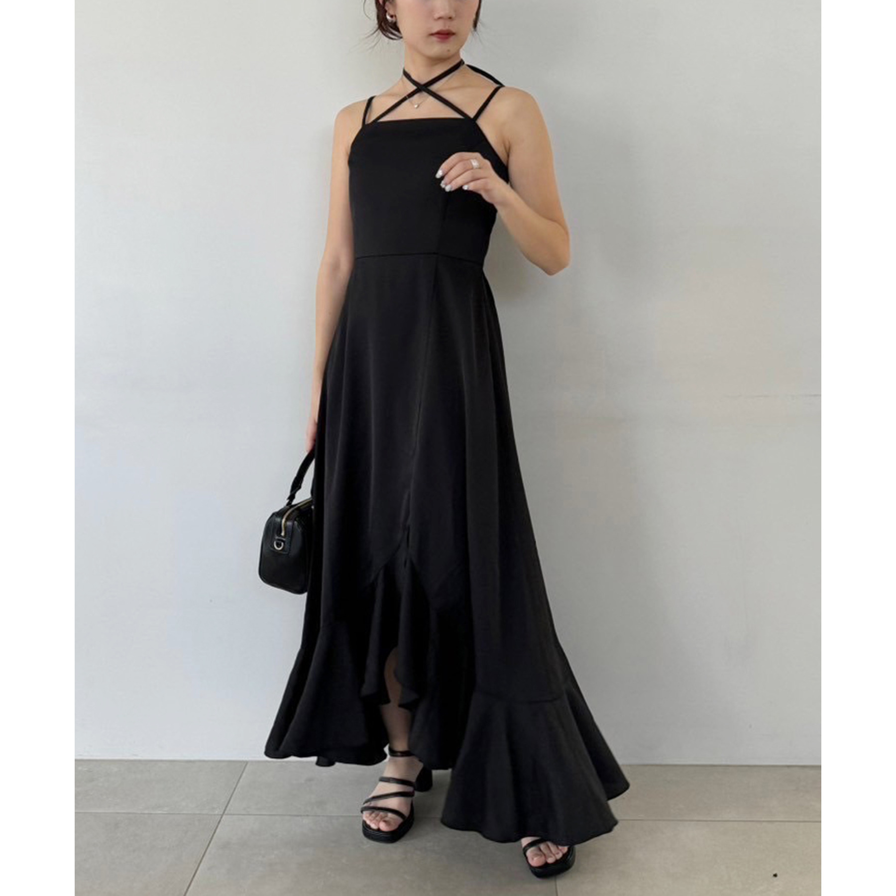 裾に変化をつけたイレギュラーヘムデザインが特徴のロングワンピース。