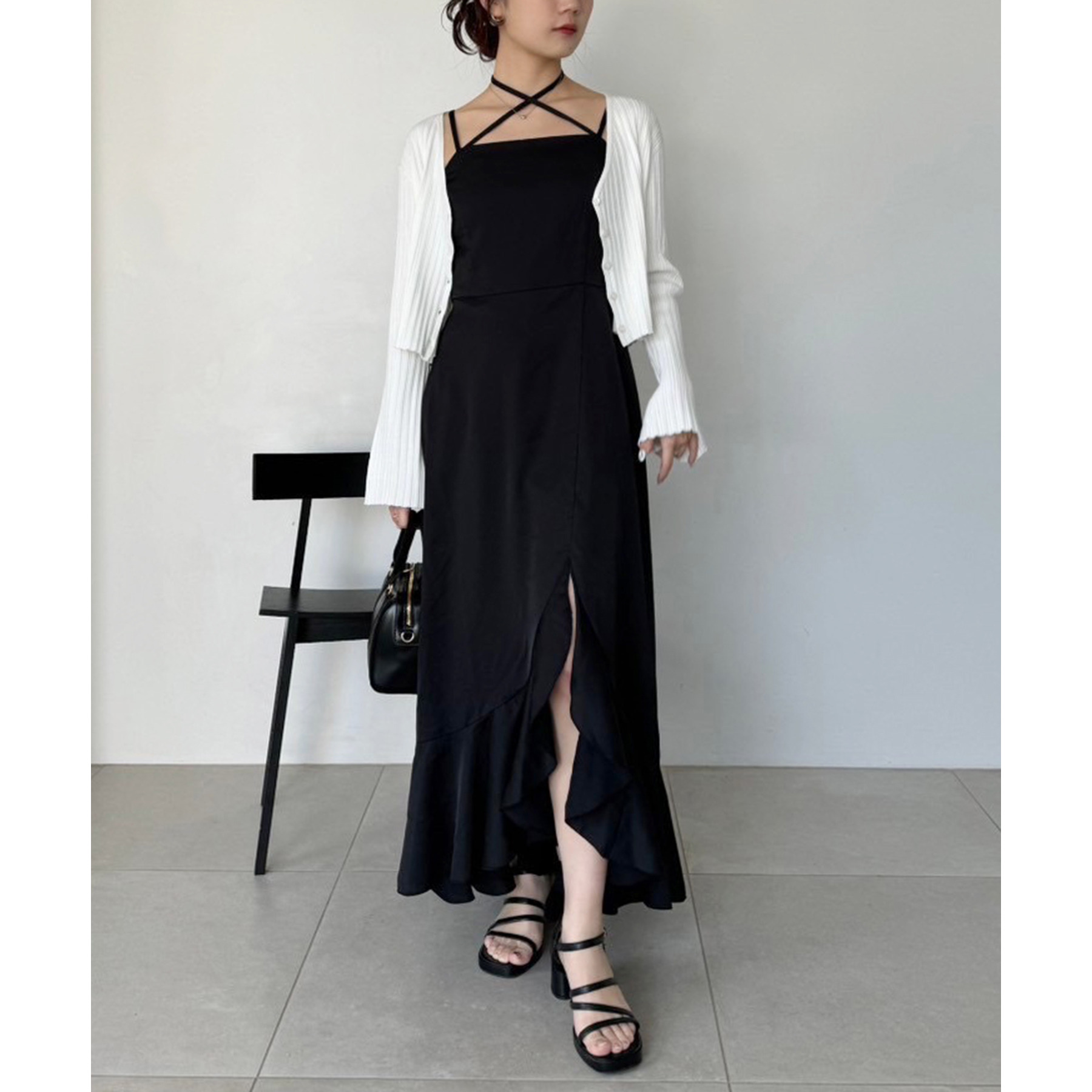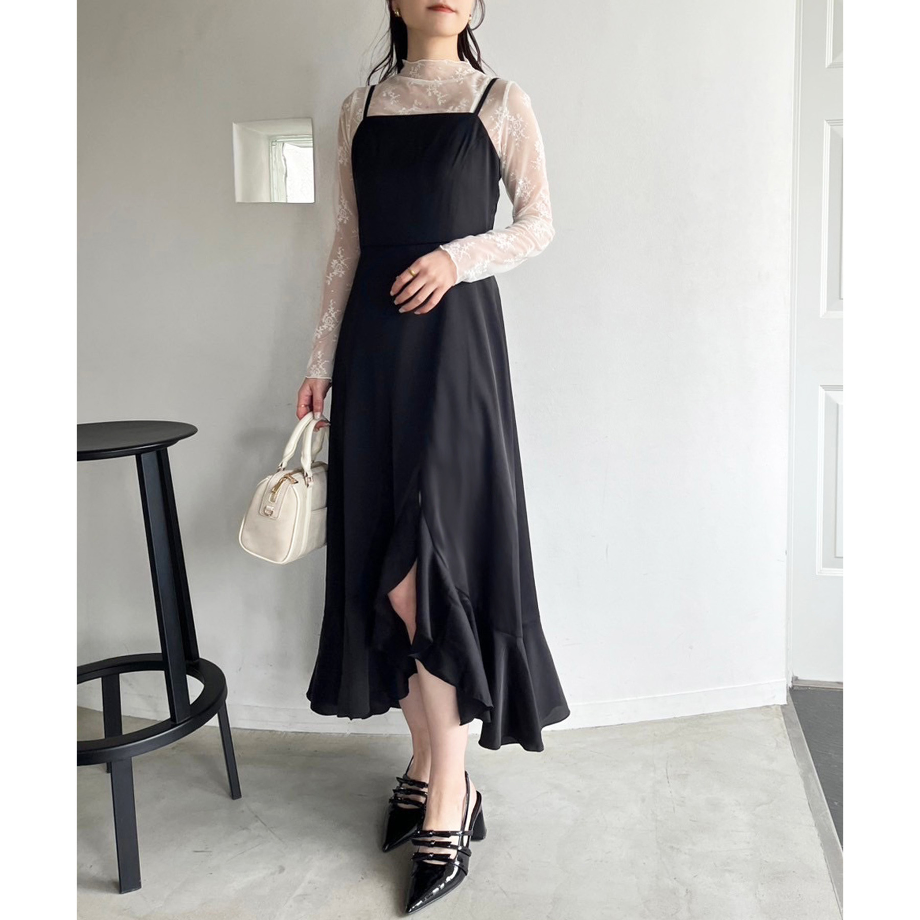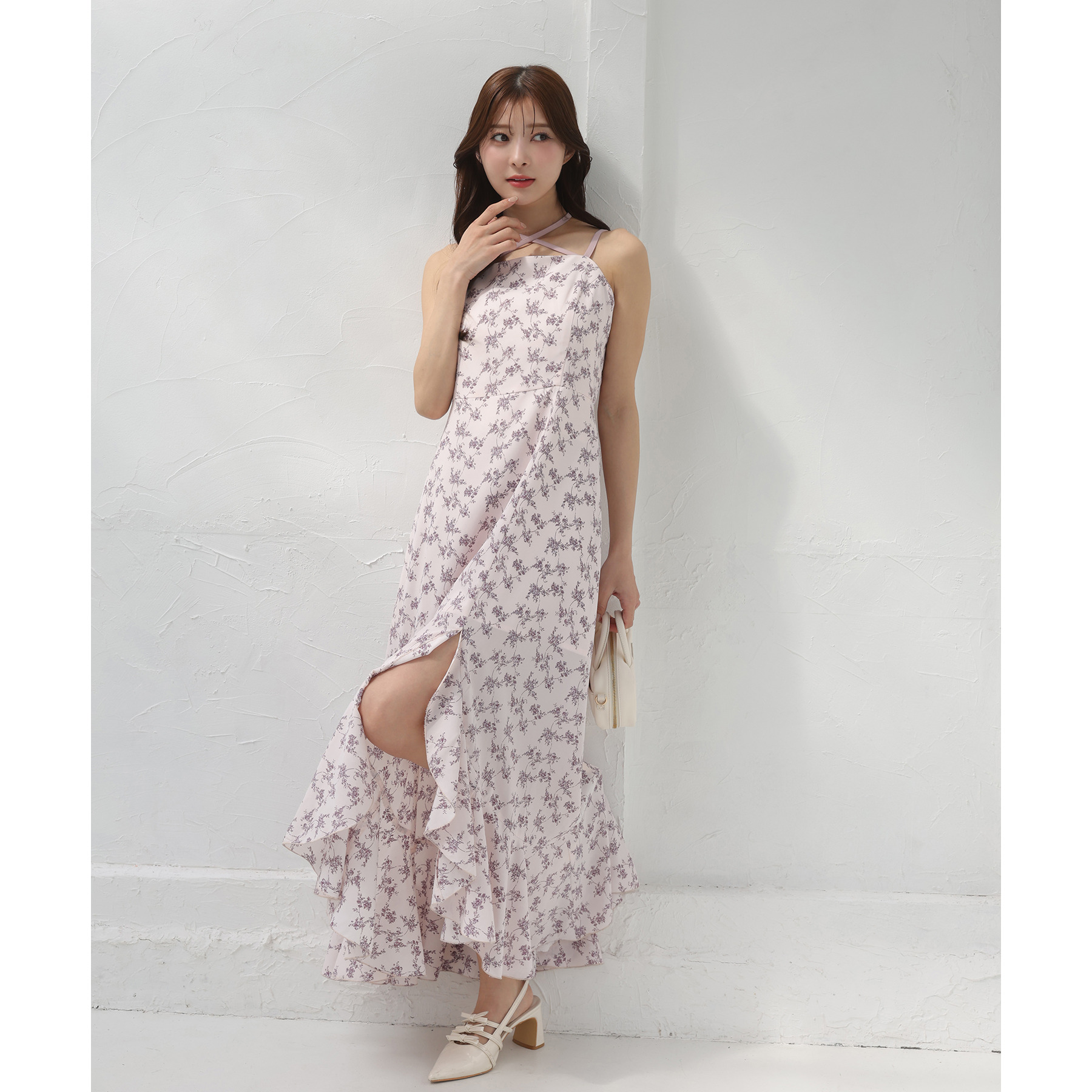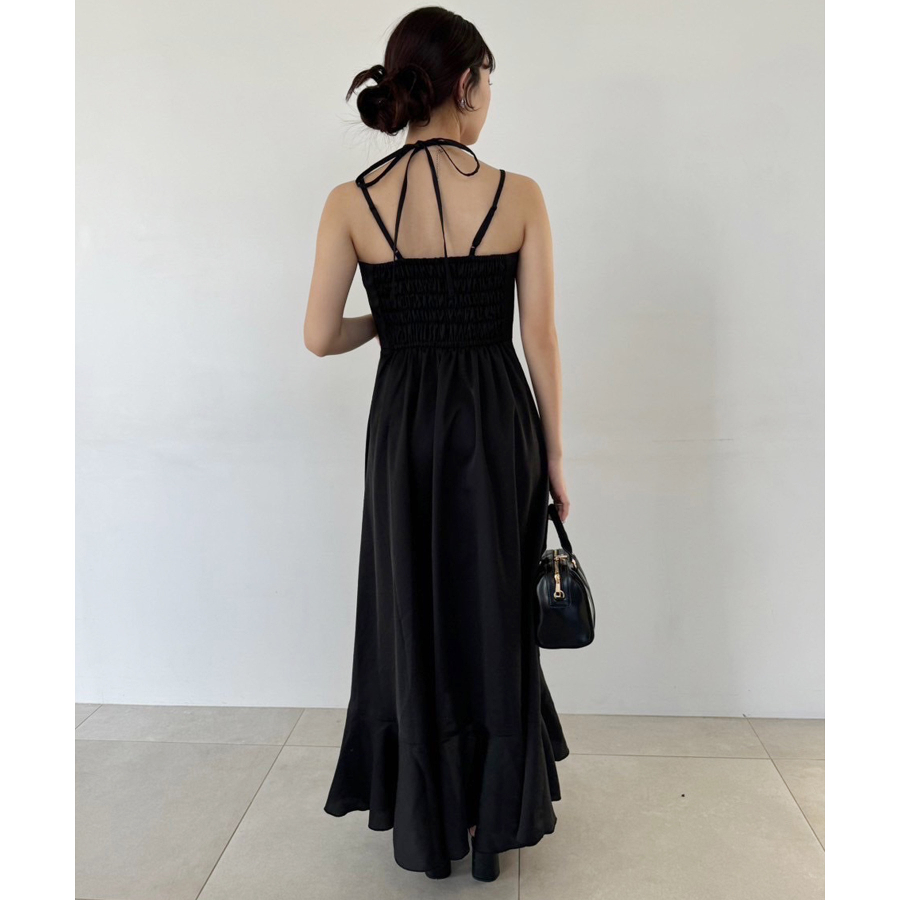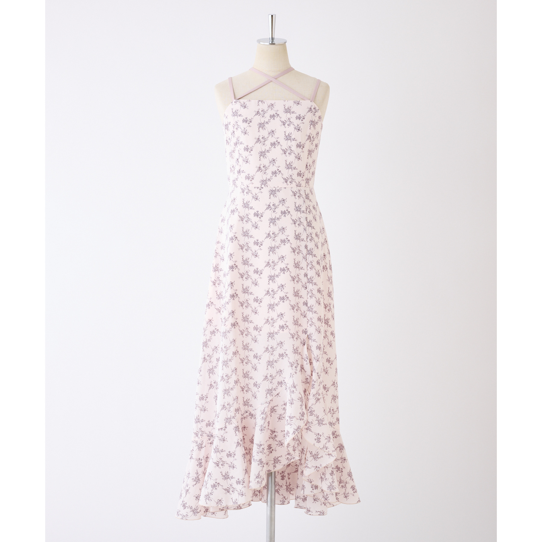 裾に変化をつけたイレギュラーヘムデザインが特徴のロングワンピース。