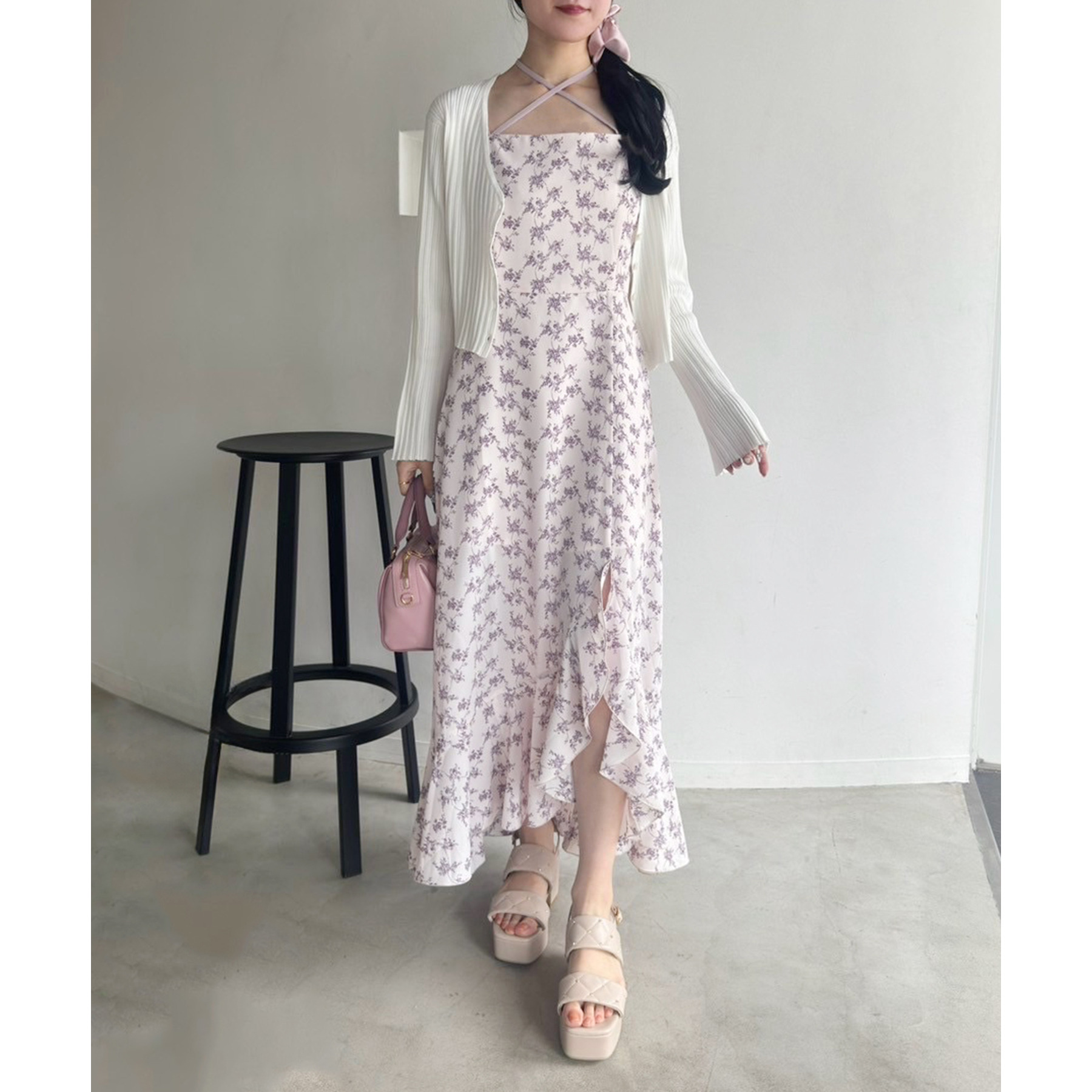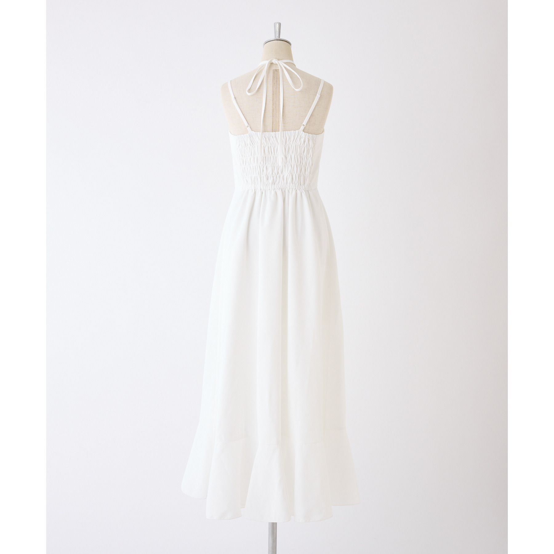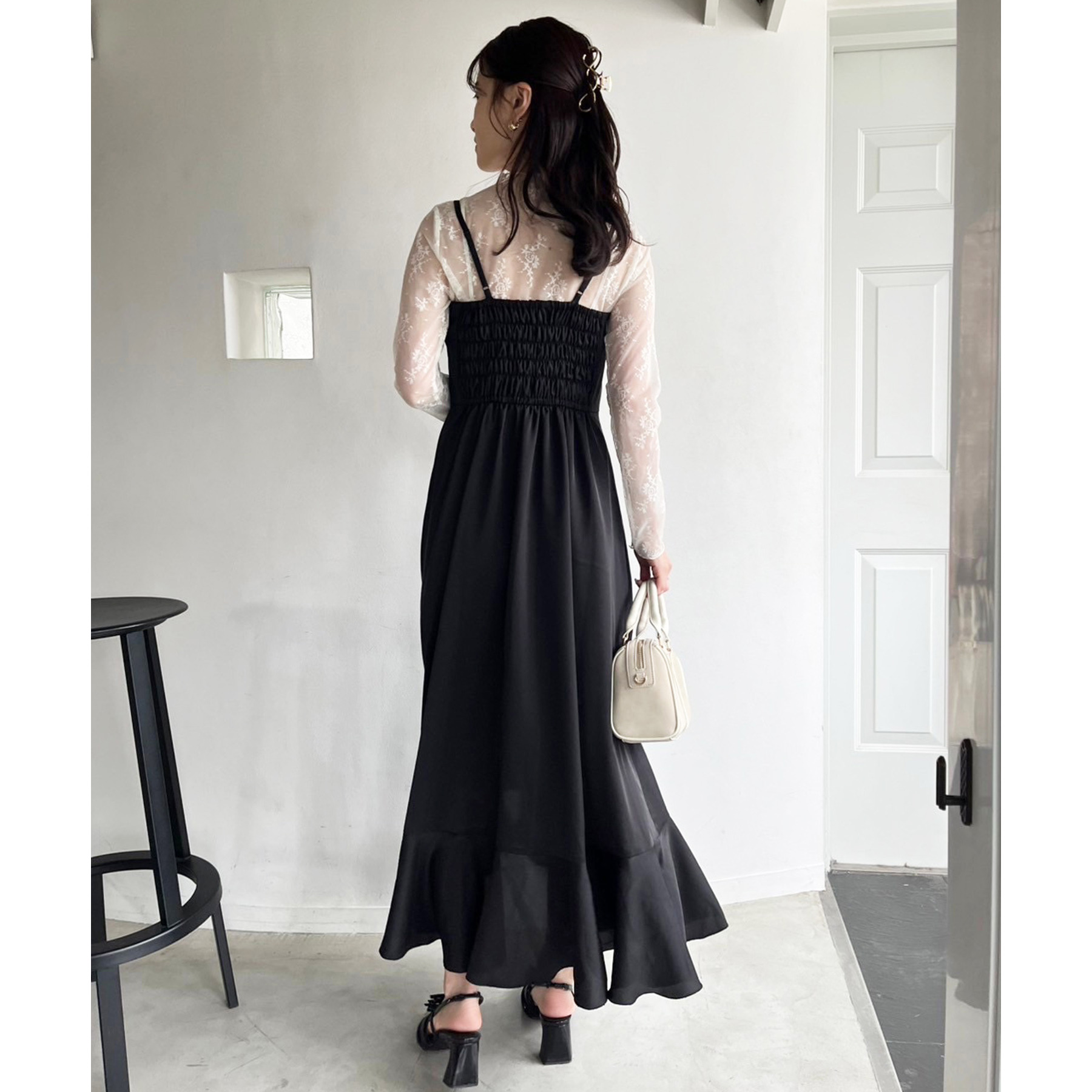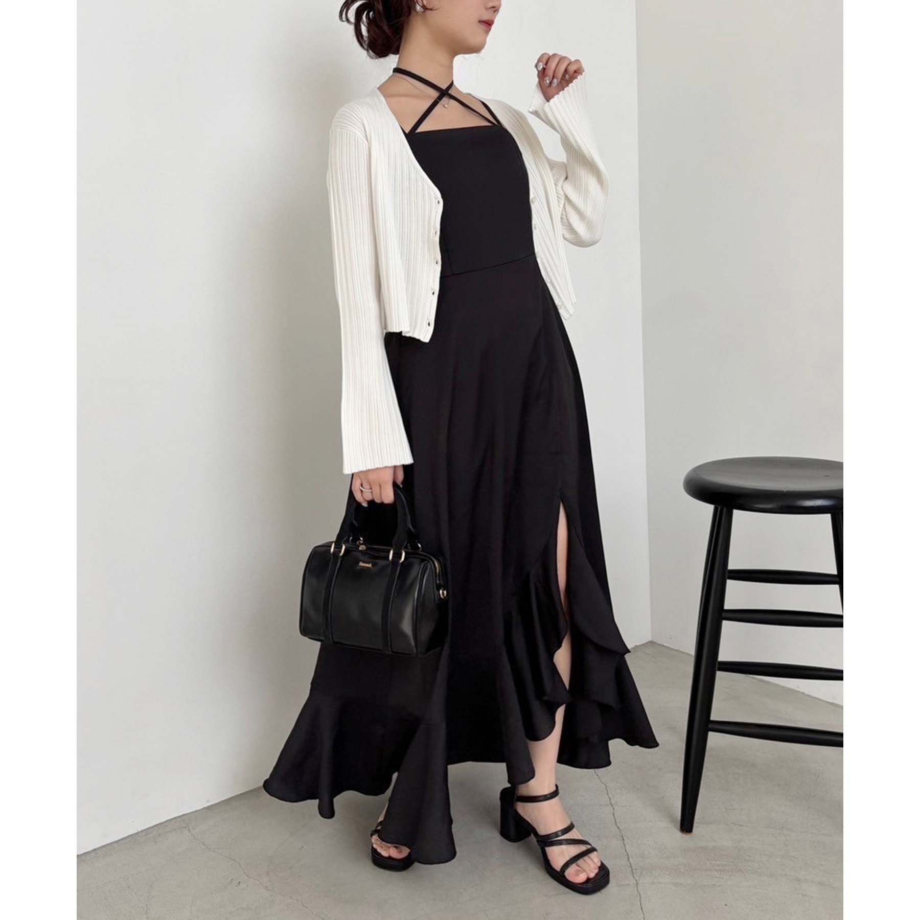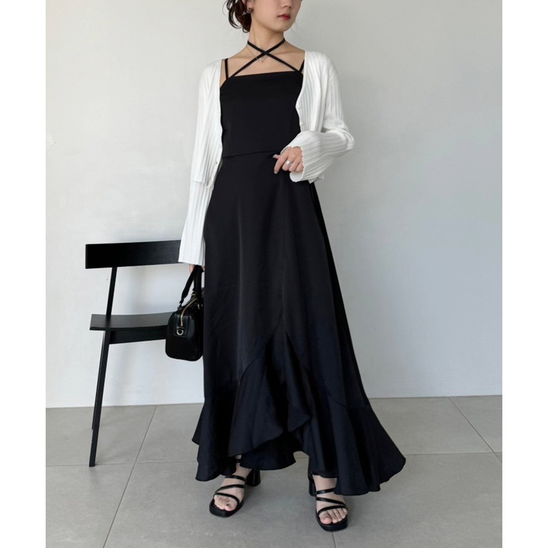 裾に変化をつけたイレギュラーヘムデザインが特徴のロングワンピース。