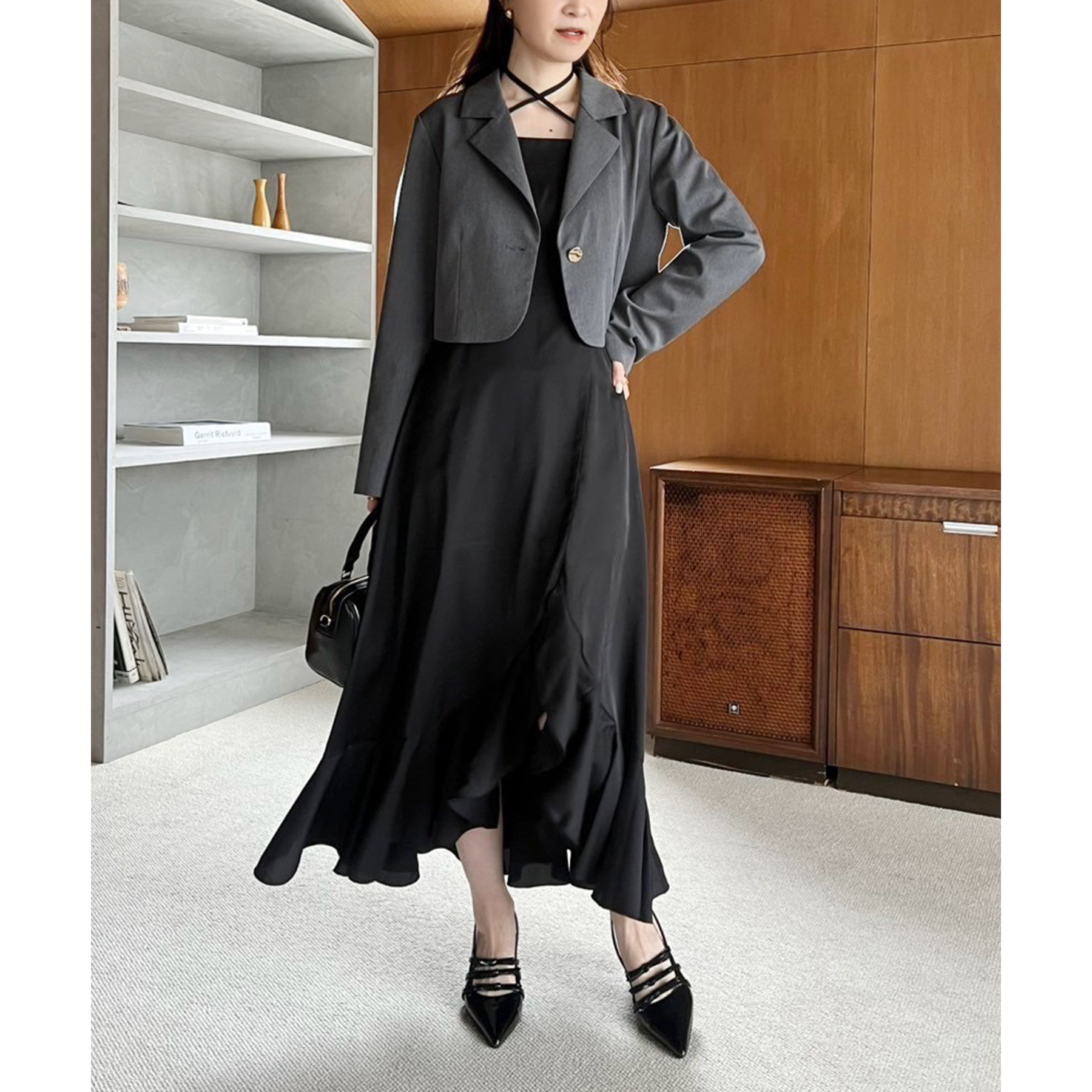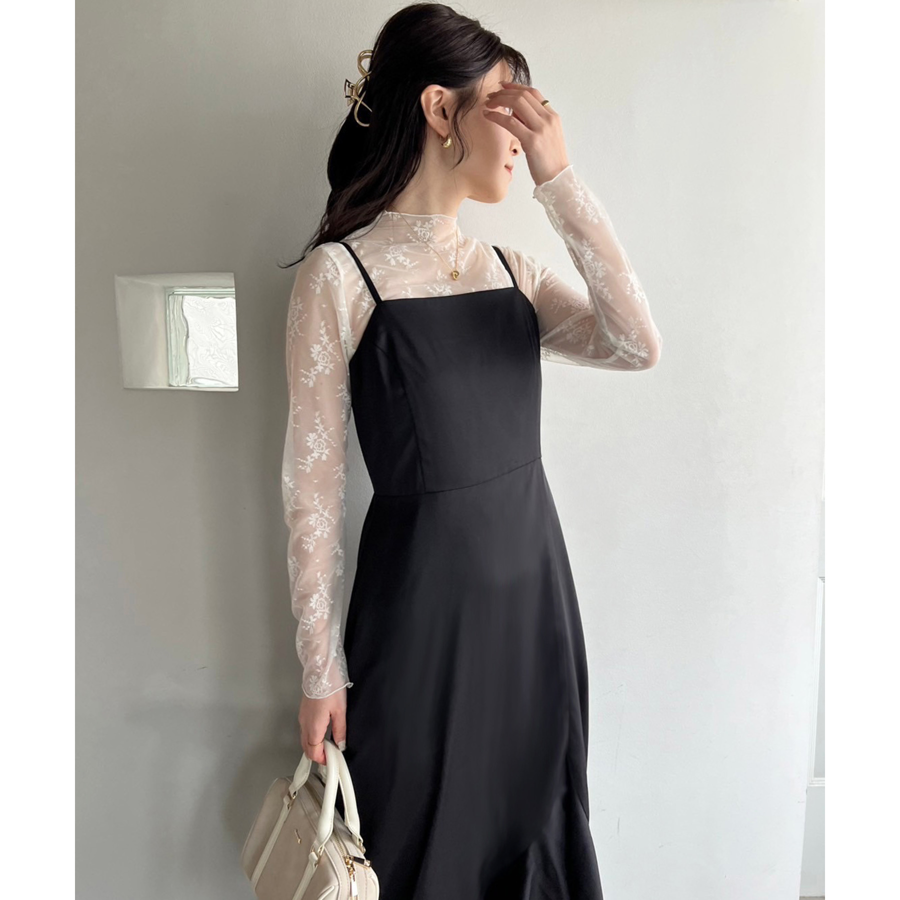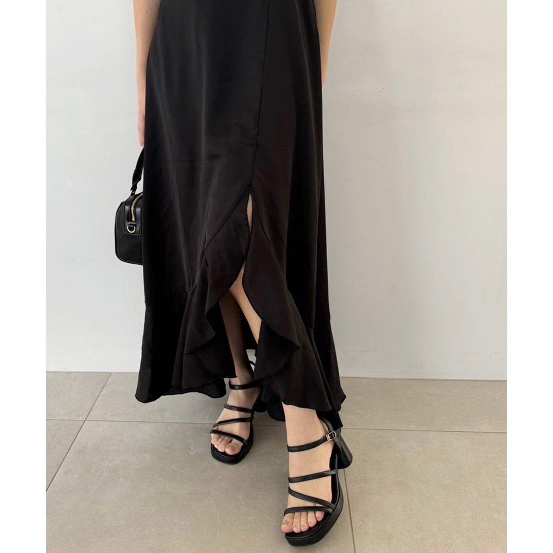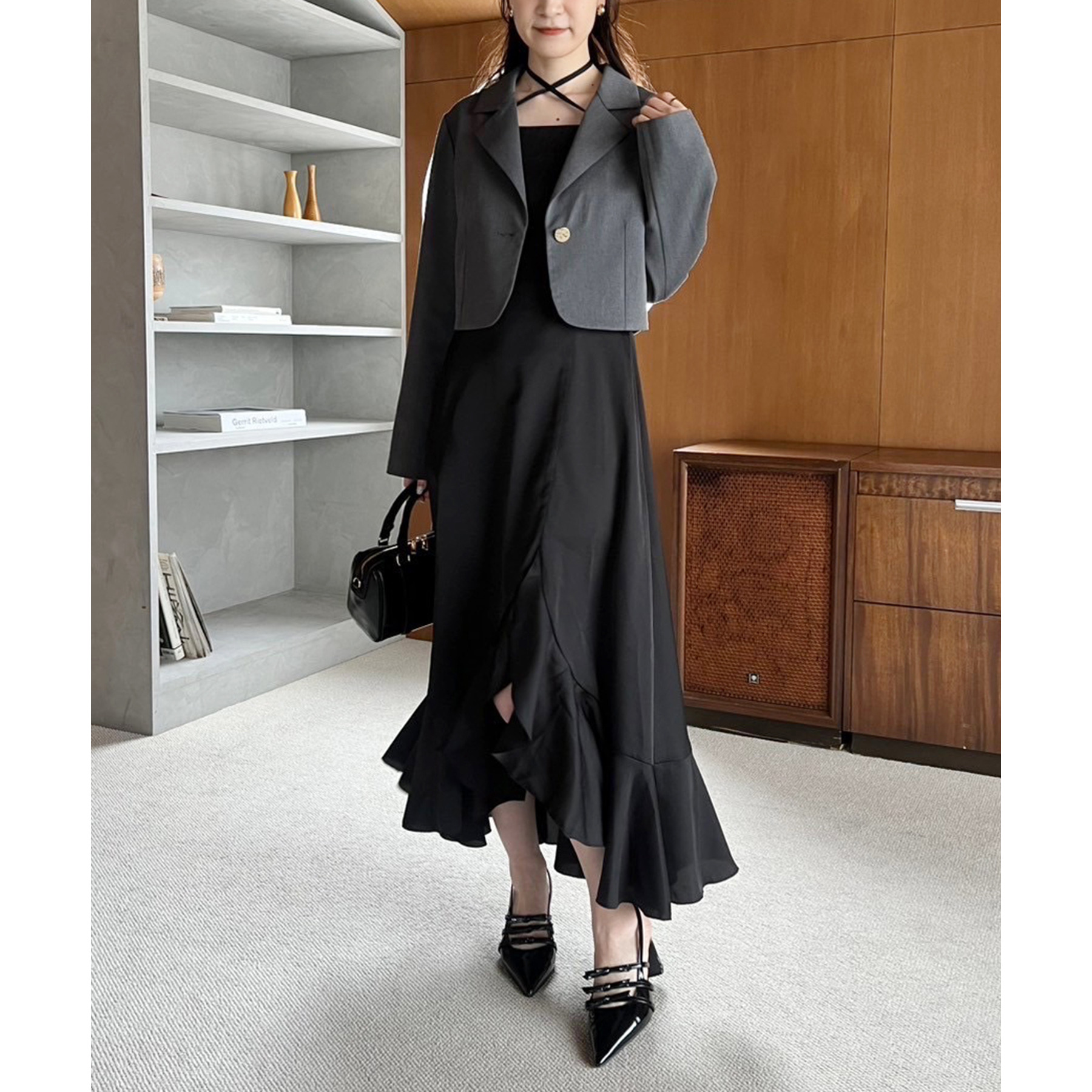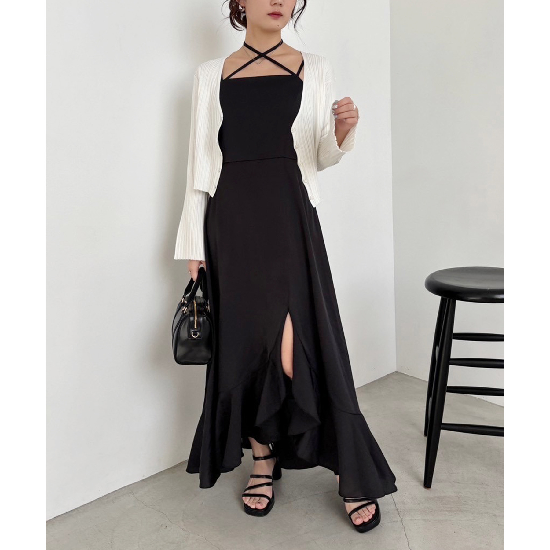 裾に変化をつけたイレギュラーヘムデザインが特徴のロングワンピース。