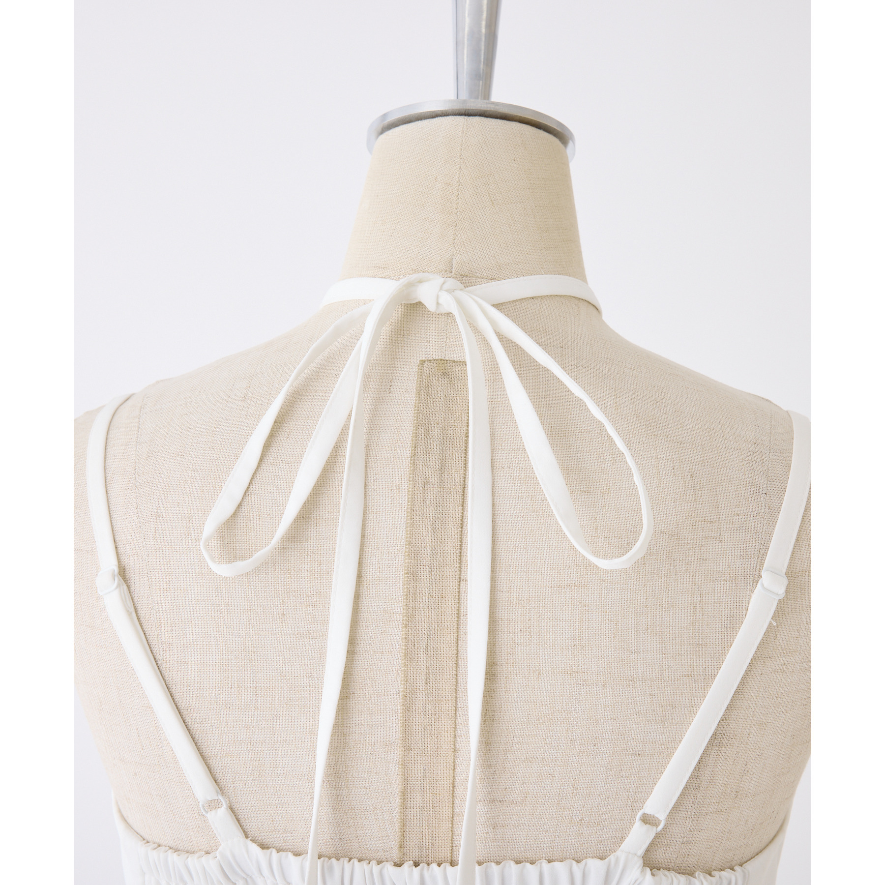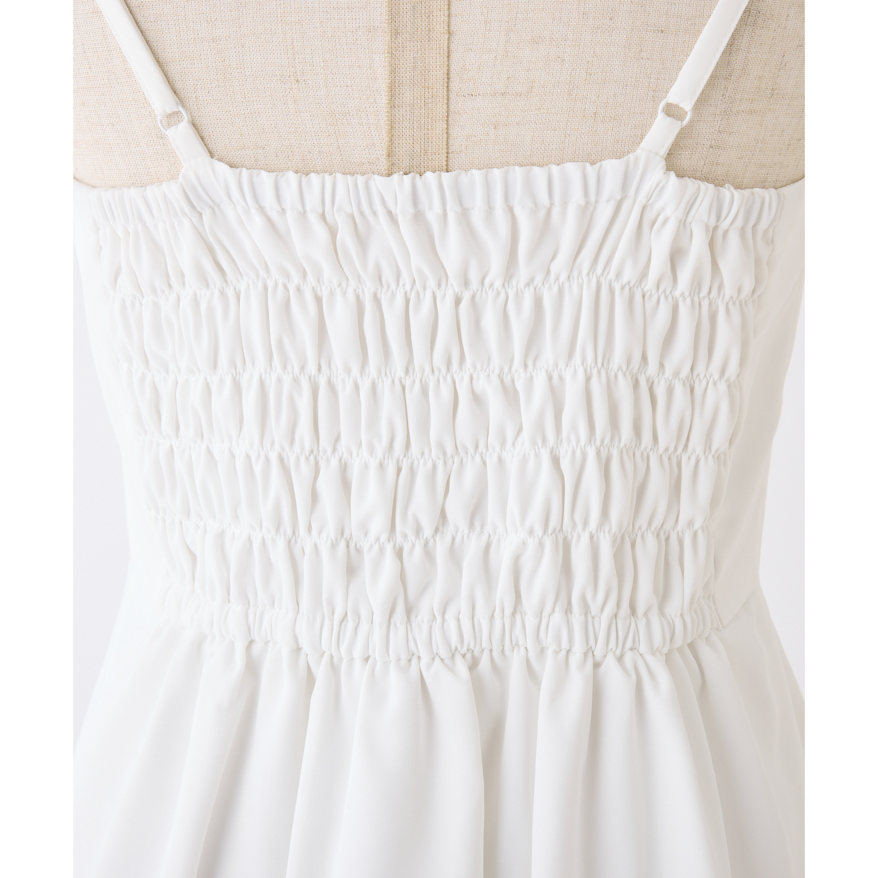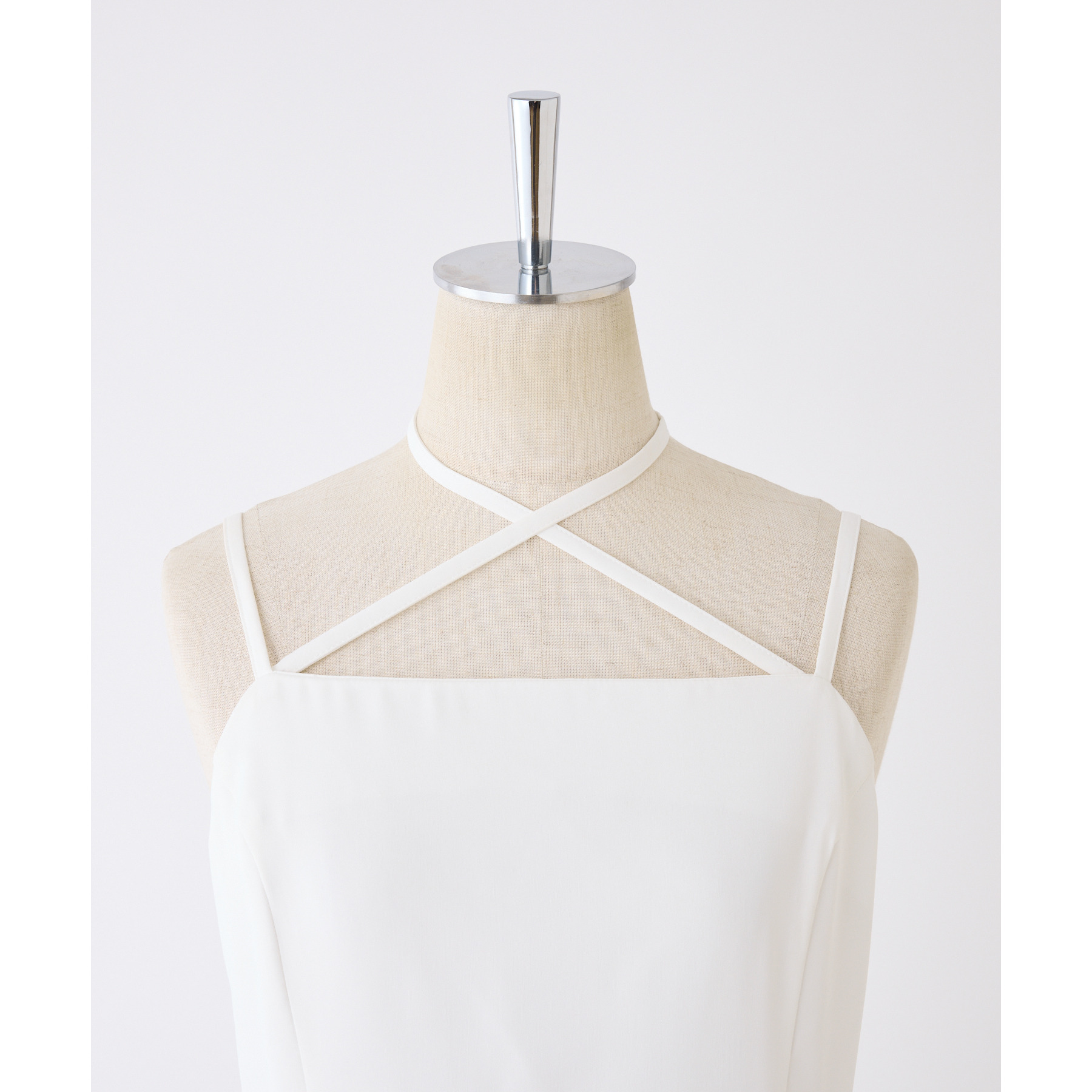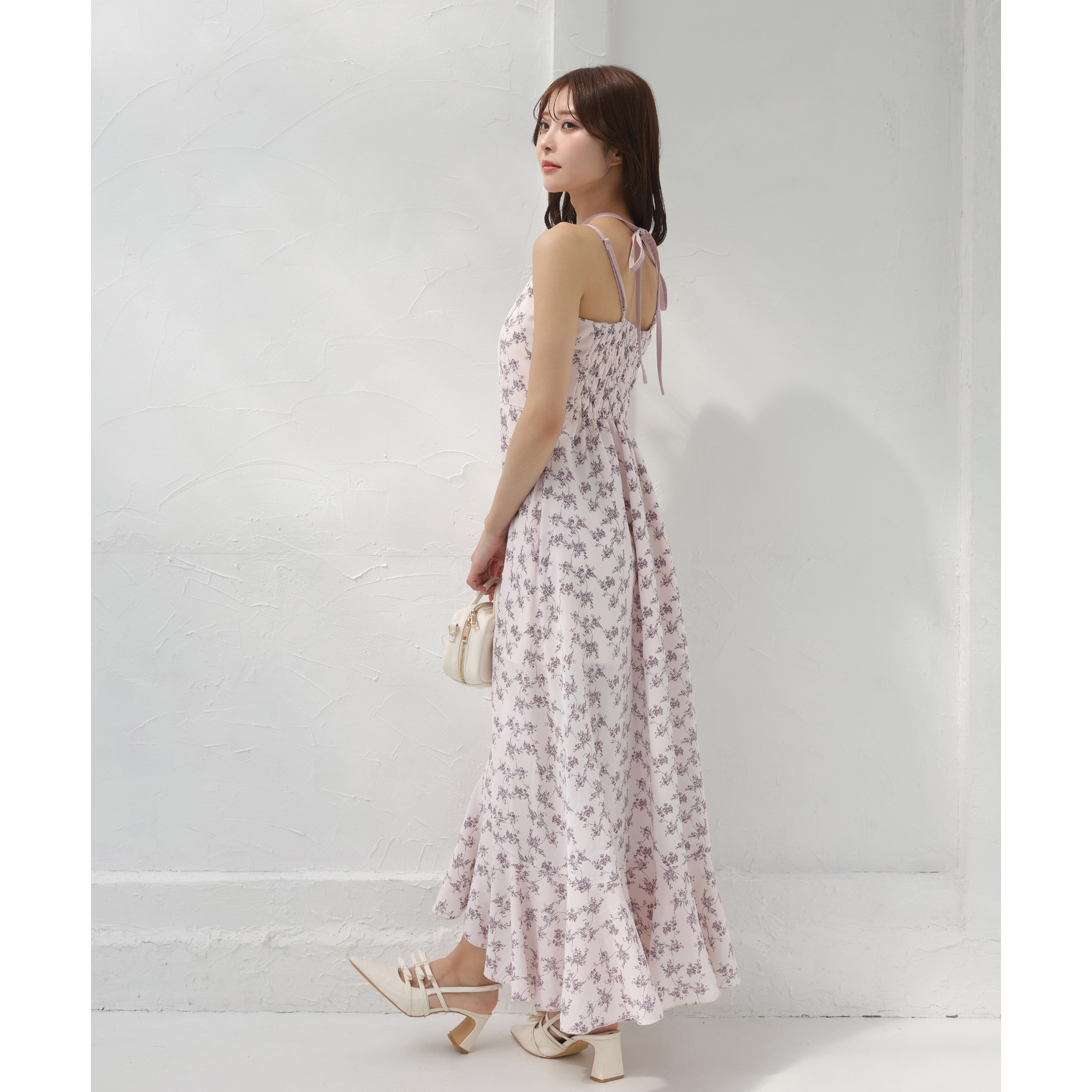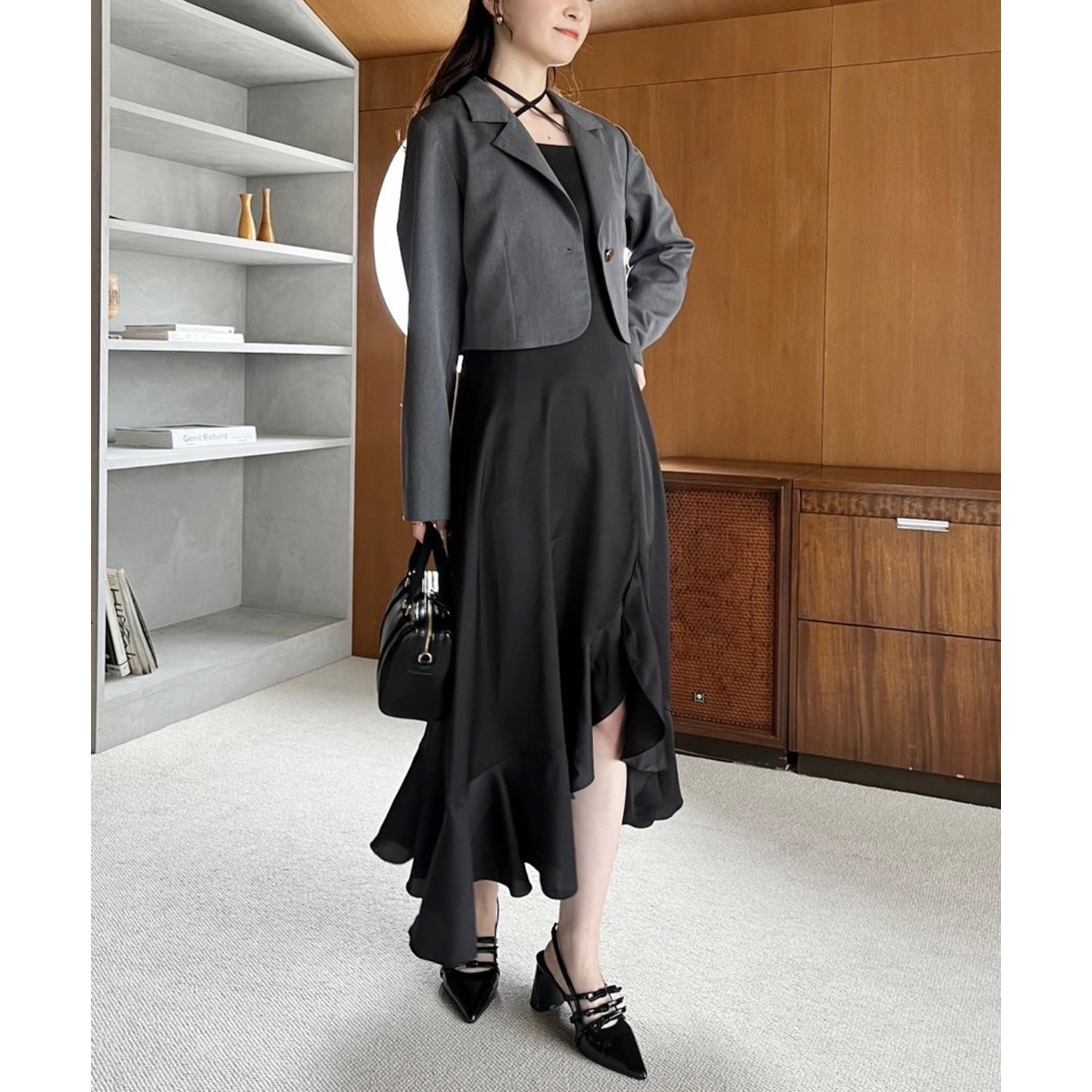 裾に変化をつけたイレギュラーヘムデザインが特徴のロングワンピース。