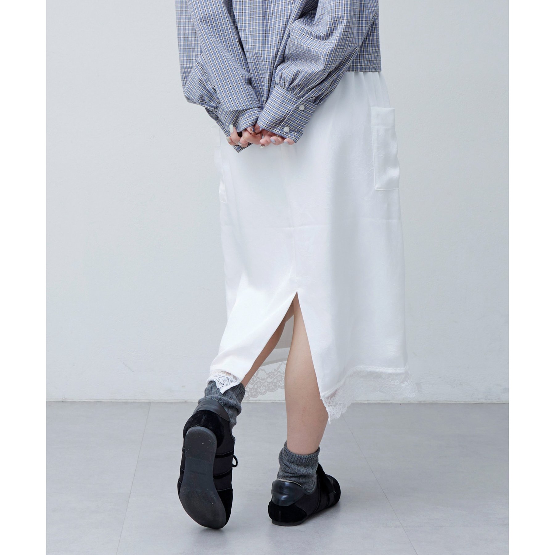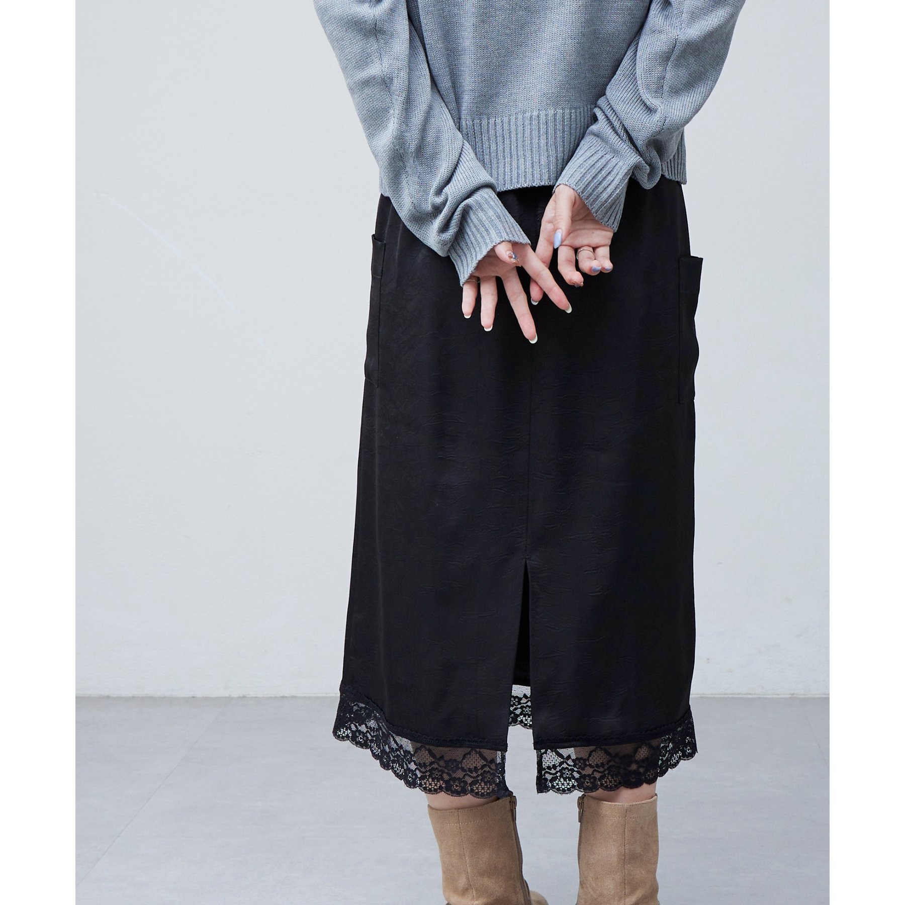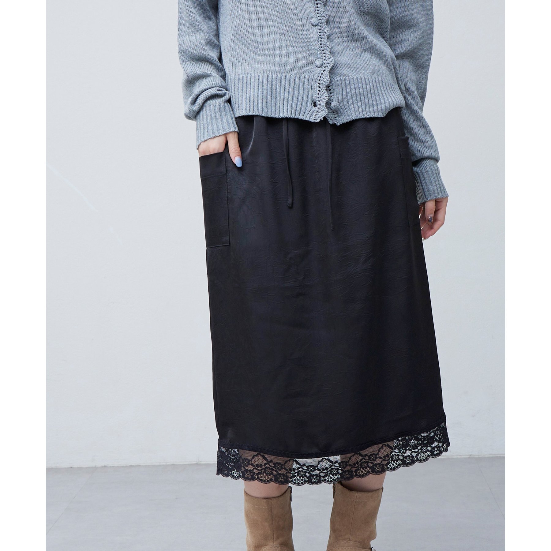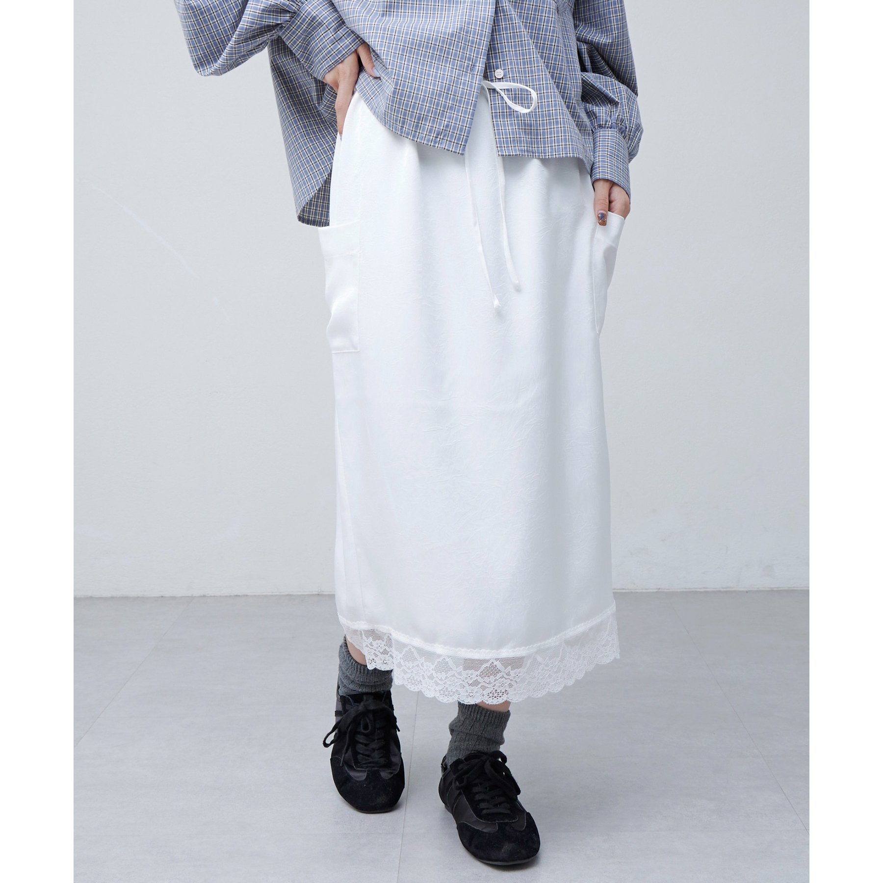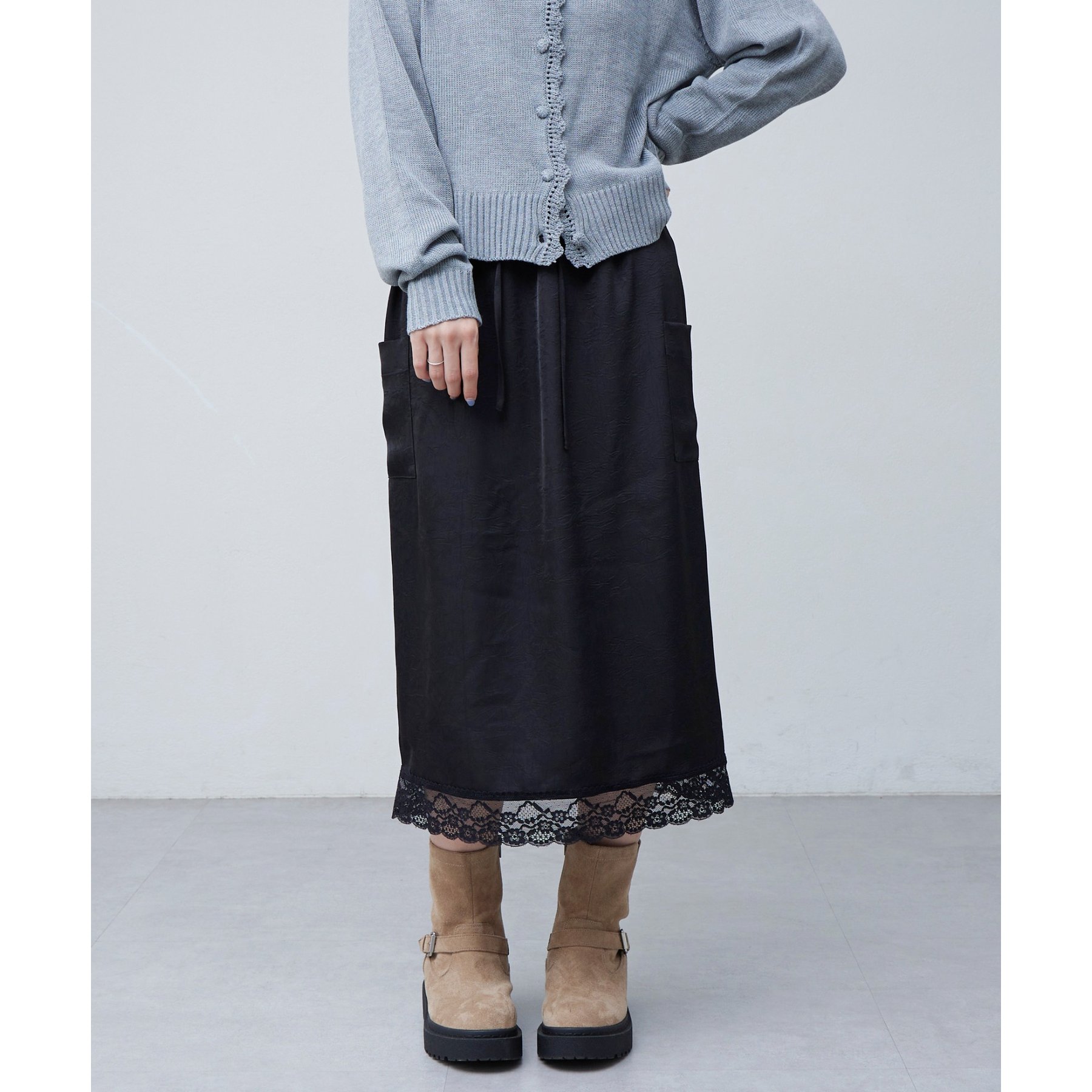【umm.】裾レースクラッシュサテンスカート